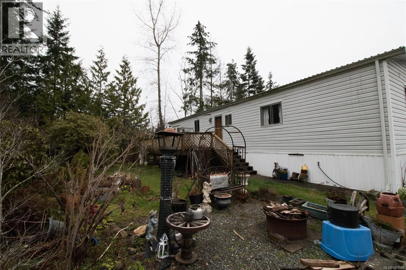 Priced to sell! Just a short walk from the beach this excellent property is located in Fanny Bay in the desired neighbourhood of Mystery Beach. This is a property with a large .54 acre lot with workshop and plenty of yard for gardens. The home on the property is a double wide manufactured home. The home features 3 bedrooms 2 baths and is ideal for a growing family. The cost of ownership would be a huge advantage over renting. The large level yard, with excellent sun exposure features endless possibilities for expansion and development. Ideal setting for gardens or constructing a second home. Ideal for handyman with a large shop or garage. (id:27476)