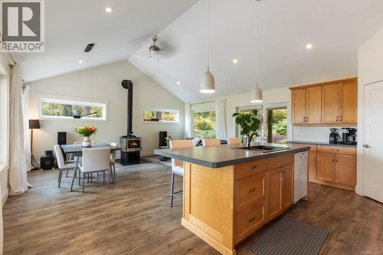 This private 5+ acre property offers a newer (2014), thoughtfully designed, 1525 sqft home and detached garage/workshop in a quintessential West Coast setting. Rustic landscaping blends seamlessly with natural forest and contemporary design, all just steps from the Buckley Bay ferry and the bountiful waters of Baynes Sound. Inside, the home features a bright open-concept kitchen and dining area with 12' ceilings, two bedrooms on the main level, and a versatile upstairs space perfect for an additional bedroom, office, or family room. The garage (built in 2018) is well powered (100 amp) with ample space for woodworking tools, sports gear and storage, plus a generous carport, perfect for boat parking. The CR-1 zoning provides for flexible expansion opportunities including the potential for a secondary dwelling and a carriage house. Enjoy the trails and natural beauty right on your own land, while still being within easy reach of Courtenay, Comox, and Cumberland. Book your showing today! (id:27476)