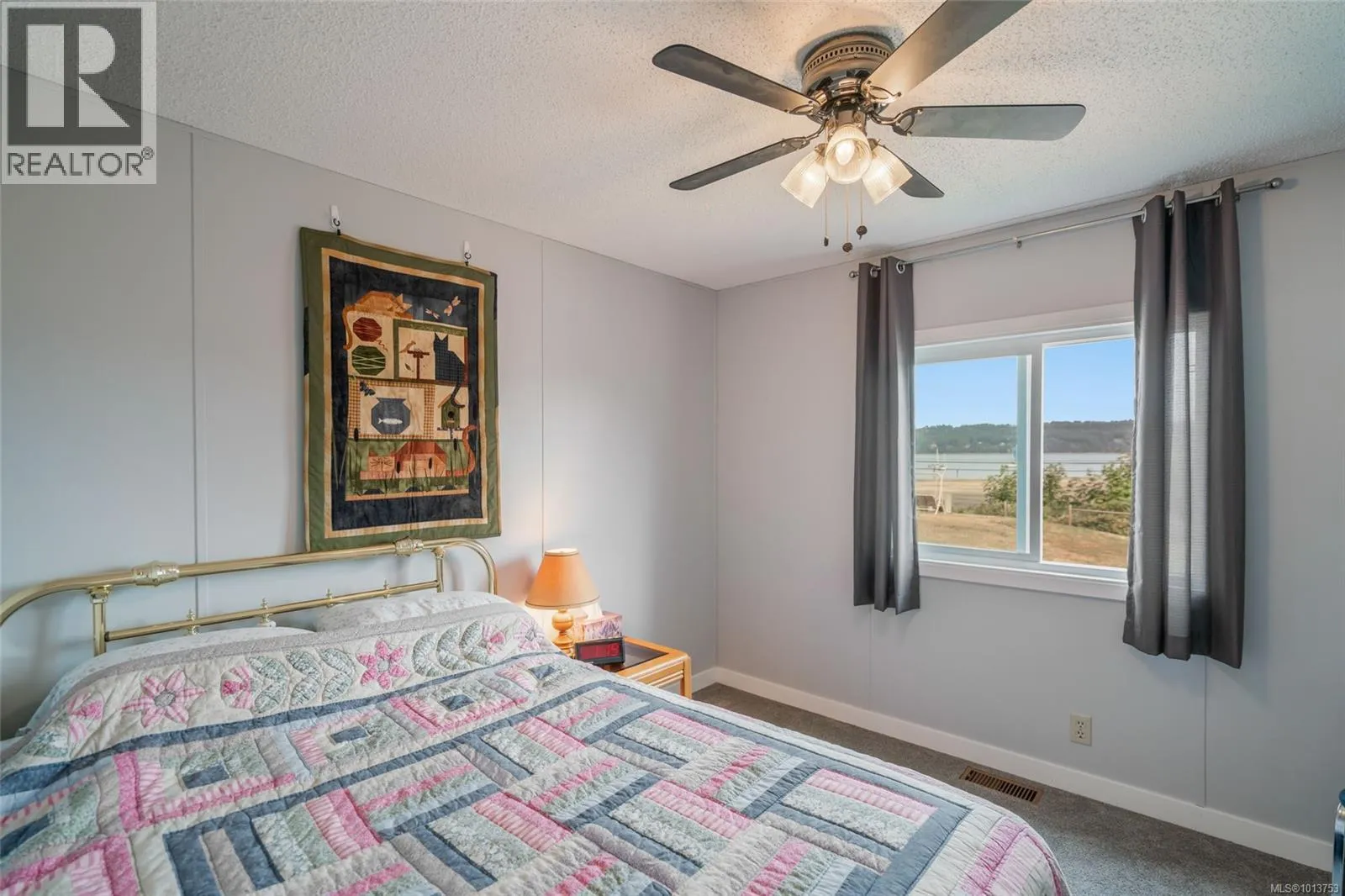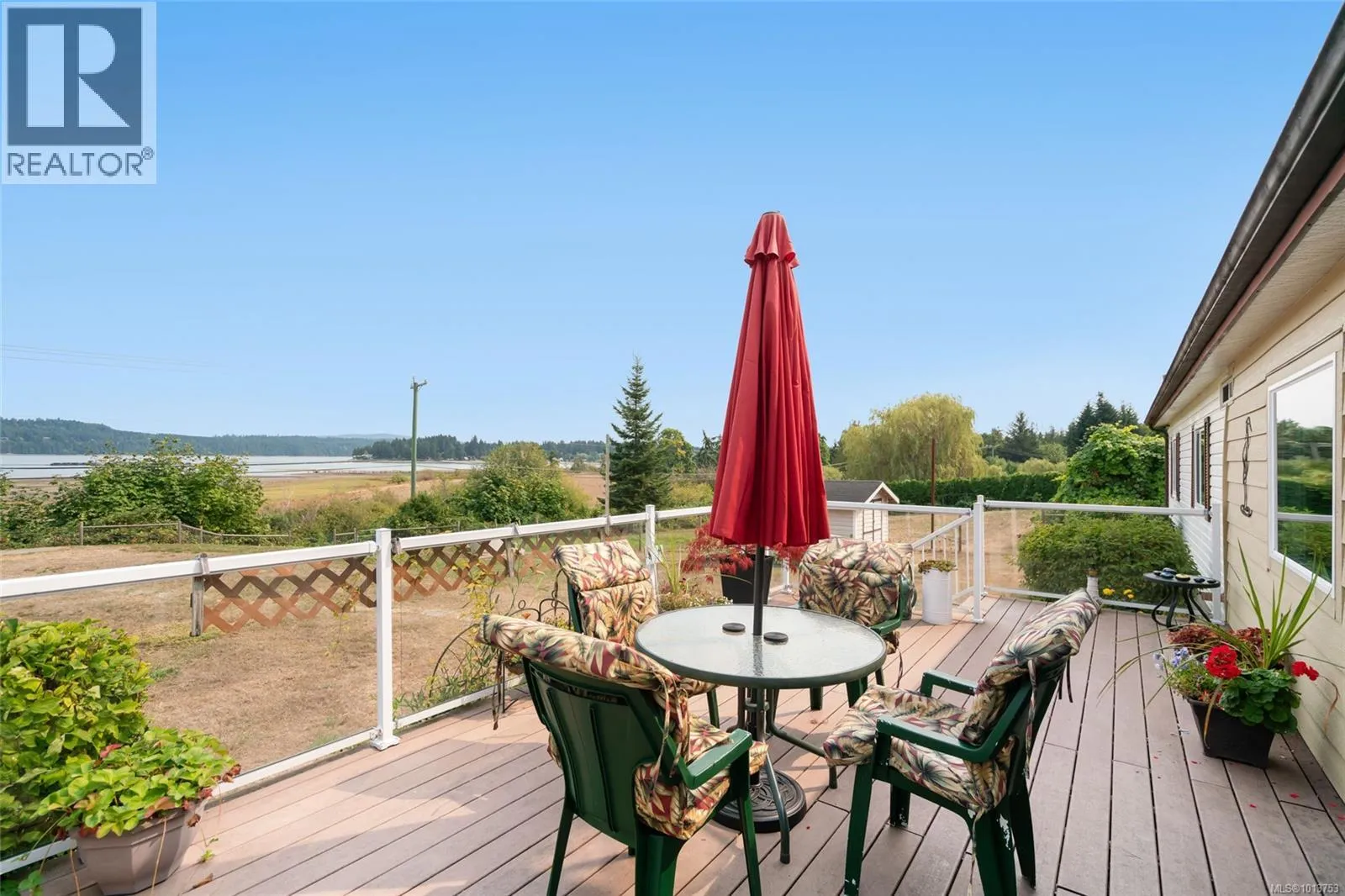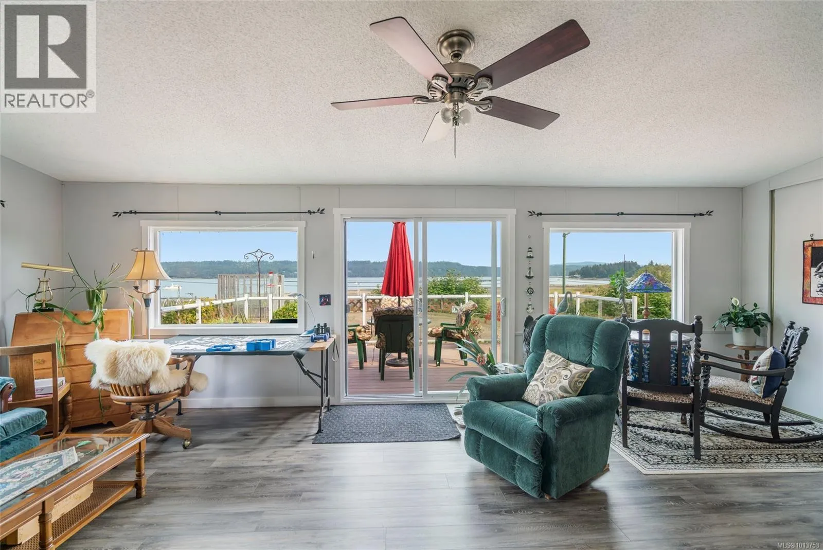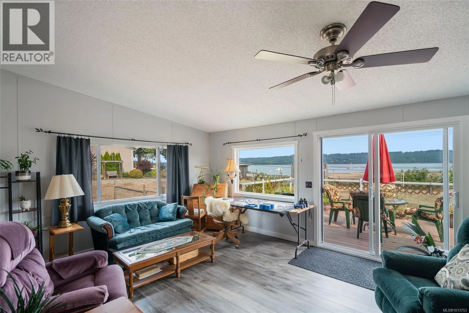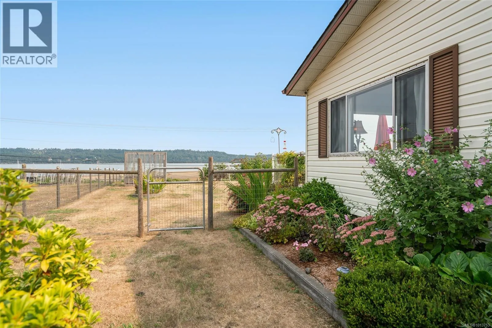 Nestled in the heart of the charming seaside community of Fanny Bay, this remarkable .46-acre property captures the essence of West Coast living with sweeping ocean views across Baynes Sound toward Denman Island. The setting is nothing short of idyllicâquiet, private, and surrounded by natural beauty, yet within easy reach of amenities in both Courtenay and Qualicum Beach. The home itself is a beautifully maintained 2-bedroom, 2-bathroom manufactured residence that feels every bit like a detached single-family home. Inside, youâll find an inviting layout designed with comfort and functionality in mind. Vaulted ceilings in the living room, family room, dining area, and kitchen create an open, airy atmosphere that enhances the generous scale of the rooms. Large windows and two skylights in the bright kitchen allow natural light to pour in, making every space feel warm and welcoming. The primary bedroom is a true retreat, featuring a spacious 4-piece ensuite that adds privacy and convenience. Step outside to the ocean-side deck and experience the tranquility of coastal living firsthand. Whether youâre enjoying your morning coffee while the sun rises over the water, entertaining friends on a summer evening, or simply taking in the ever-changing marine activity of Baynes Sound, this outdoor space will quickly become a favourite part of your home. Adding to the appeal is a substantial 24x30 double garage/workshop, fully wired with both 110V and 220V powerâperfect for hobbyists, craftspeople, or those needing additional storage. A cozy propane fireplace ensures year-round comfort indoors, while the propertyâs quiet no-through road location provides peace and privacy. This home presents a rare opportunity to embrace the laid-back coastal lifestyle that Fanny Bay is known for. With its combination of scenic ocean views, well-designed living spaces, and practical features, it offers an exceptional blend of relaxation and functionality. Truly a special place to call home. (id:27476)