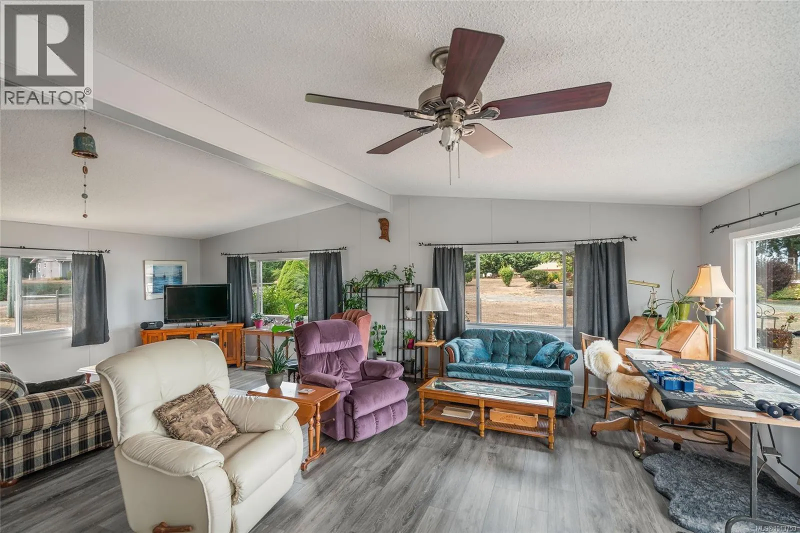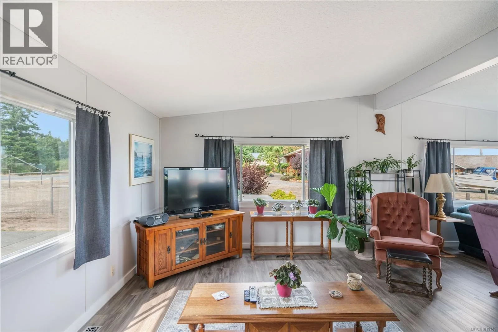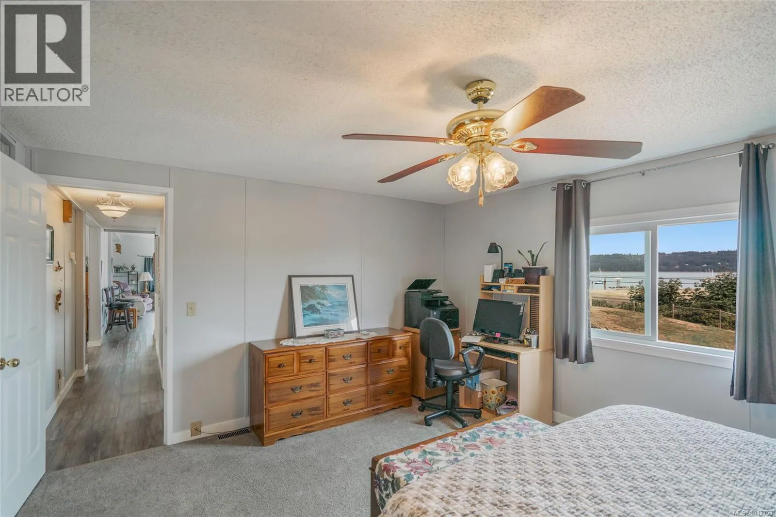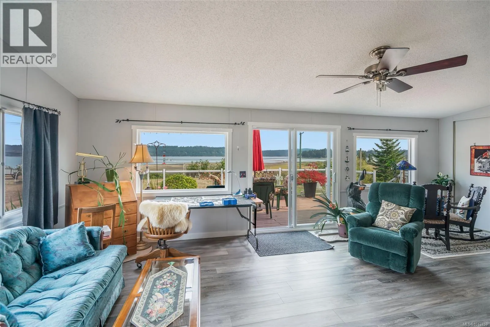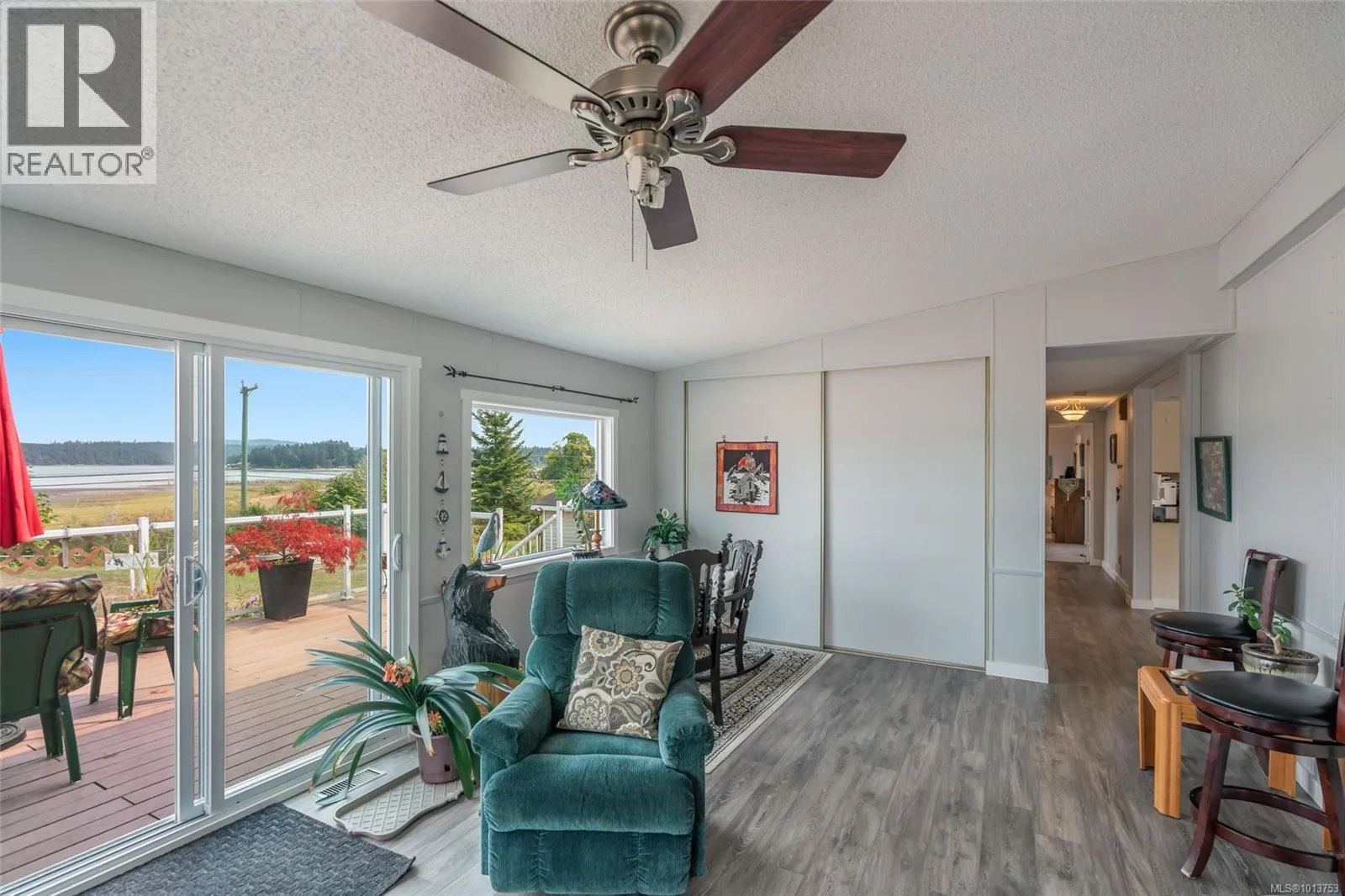 Nestled in the heart of the charming seaside community of Fanny Bay, this remarkable .46-acre property captures the essence of West Coast living with sweeping ocean views across Baynes Sound toward Denman Island. The setting is nothing short of idyllicâquiet, private, and surrounded by natural beauty, yet within easy reach of amenities in both Courtenay and Qualicum Beach. The home itself is a beautifully maintained 2-bedroom, 2-bathroom manufactured residence that feels every bit like a detached single-family home. Inside, youâll find an inviting layout designed with comfort and functionality in mind. Vaulted ceilings in the living room, family room, dining area, and kitchen create an open, airy atmosphere that enhances the generous scale of the rooms. Large windows and two skylights in the bright kitchen allow natural light to pour in, making every space feel warm and welcoming. The primary bedroom is a true retreat, featuring a spacious 4-piece ensuite that adds privacy and convenience. Step outside to the ocean-side deck and experience the tranquility of coastal living firsthand. Whether youâre enjoying your morning coffee while the sun rises over the water, entertaining friends on a summer evening, or simply taking in the ever-changing marine activity of Baynes Sound, this outdoor space will quickly become a favourite part of your home. Adding to the appeal is a substantial 24x30 double garage/workshop, fully wired with both 110V and 220V powerâperfect for hobbyists, craftspeople, or those needing additional storage. A cozy propane fireplace ensures year-round comfort indoors, while the propertyâs quiet no-through road location provides peace and privacy. This home presents a rare opportunity to embrace the laid-back coastal lifestyle that Fanny Bay is known for. With its combination of scenic ocean views, well-designed living spaces, and practical features, it offers an exceptional blend of relaxation and functionality. Truly a special place to call home. (id:27476)