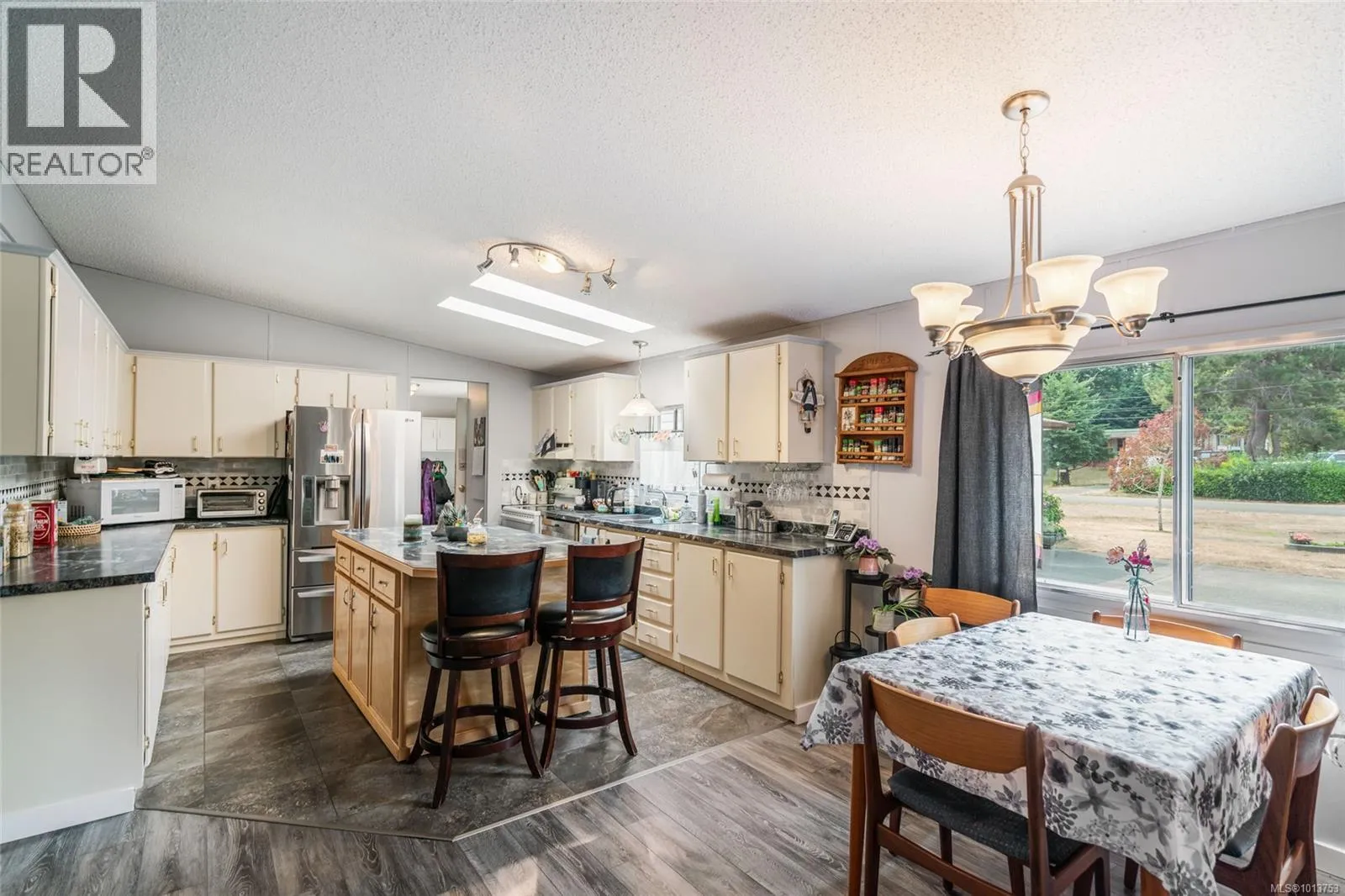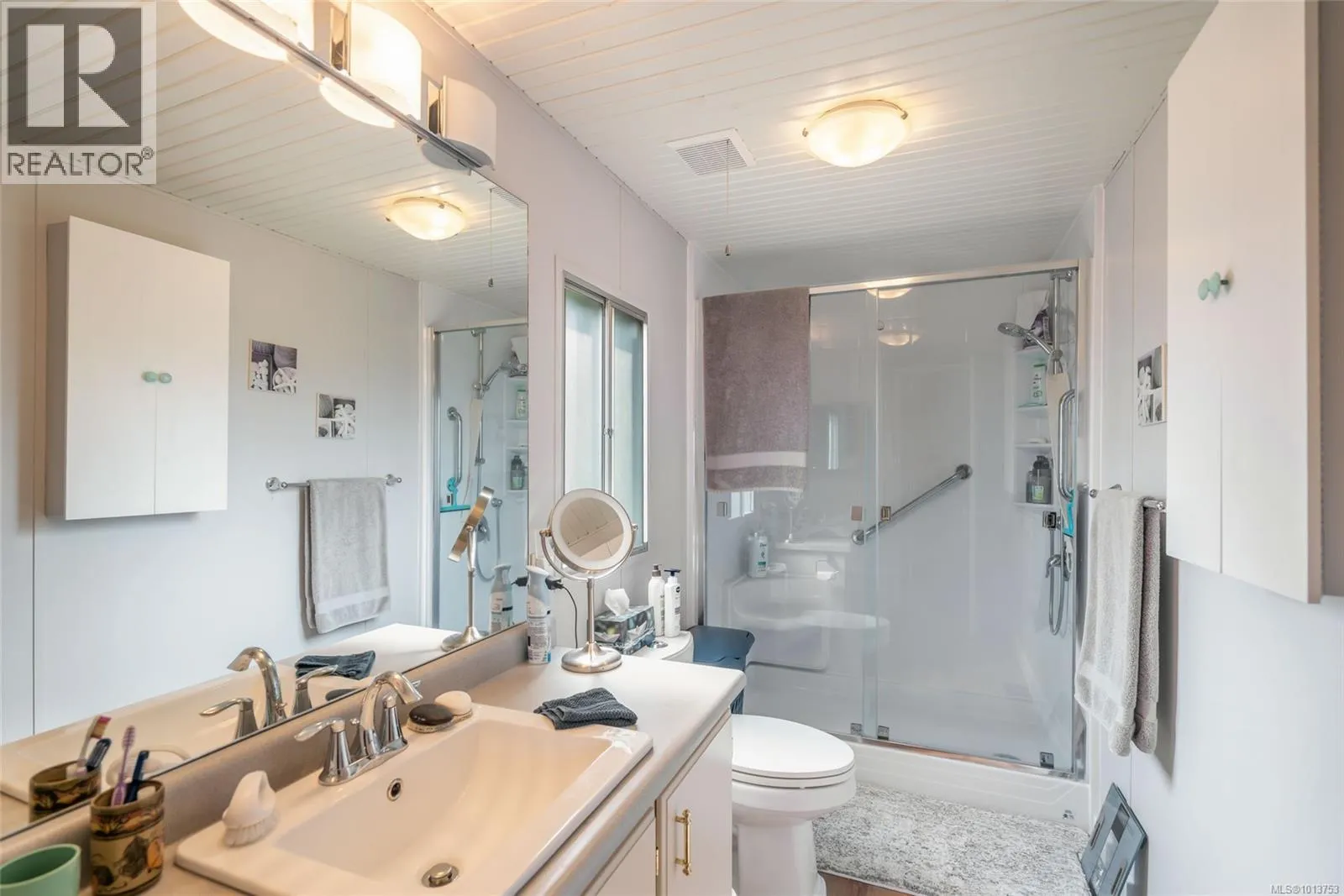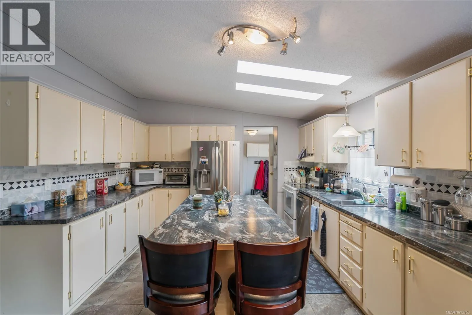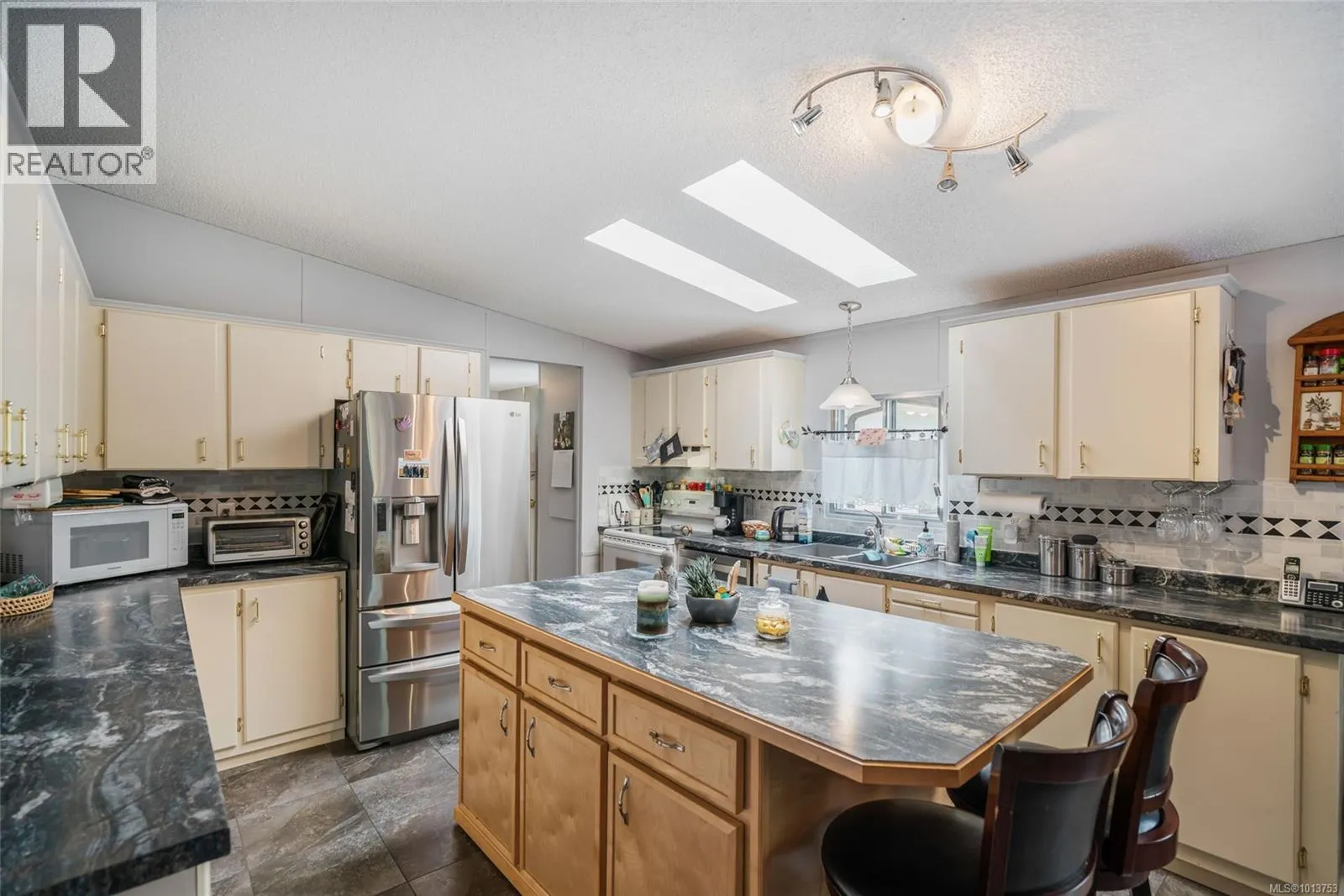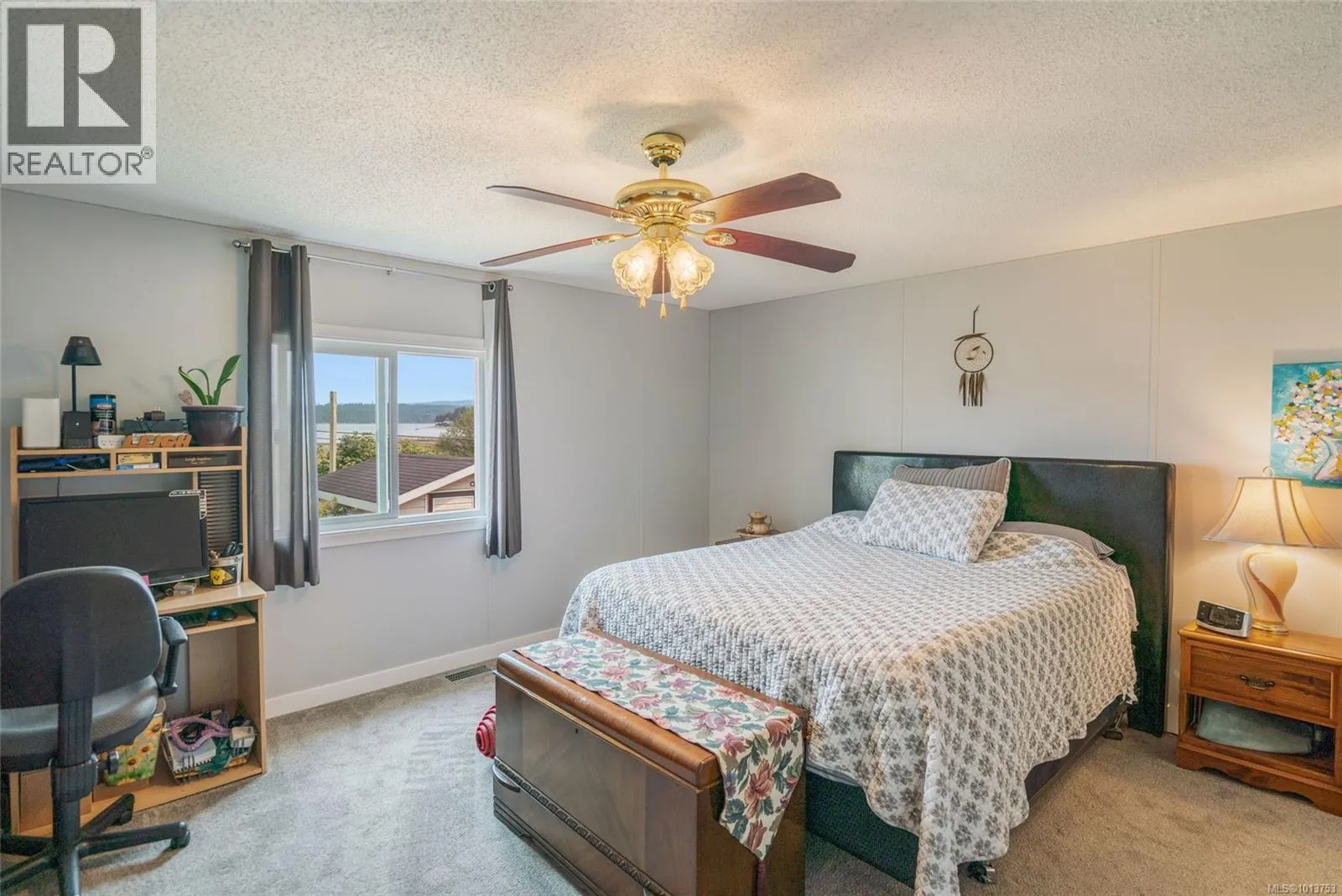 Nestled in the heart of the charming seaside community of Fanny Bay, this remarkable .46-acre property captures the essence of West Coast living with sweeping ocean views across Baynes Sound toward Denman Island. The setting is nothing short of idyllicâquiet, private, and surrounded by natural beauty, yet within easy reach of amenities in both Courtenay and Qualicum Beach. The home itself is a beautifully maintained 2-bedroom, 2-bathroom manufactured residence that feels every bit like a detached single-family home. Inside, youâll find an inviting layout designed with comfort and functionality in mind. Vaulted ceilings in the living room, family room, dining area, and kitchen create an open, airy atmosphere that enhances the generous scale of the rooms. Large windows and two skylights in the bright kitchen allow natural light to pour in, making every space feel warm and welcoming. The primary bedroom is a true retreat, featuring a spacious 4-piece ensuite that adds privacy and convenience. Step outside to the ocean-side deck and experience the tranquility of coastal living firsthand. Whether youâre enjoying your morning coffee while the sun rises over the water, entertaining friends on a summer evening, or simply taking in the ever-changing marine activity of Baynes Sound, this outdoor space will quickly become a favourite part of your home. Adding to the appeal is a substantial 24x30 double garage/workshop, fully wired with both 110V and 220V powerâperfect for hobbyists, craftspeople, or those needing additional storage. A cozy propane fireplace ensures year-round comfort indoors, while the propertyâs quiet no-through road location provides peace and privacy. This home presents a rare opportunity to embrace the laid-back coastal lifestyle that Fanny Bay is known for. With its combination of scenic ocean views, well-designed living spaces, and practical features, it offers an exceptional blend of relaxation and functionality. Truly a special place to call home. (id:27476)