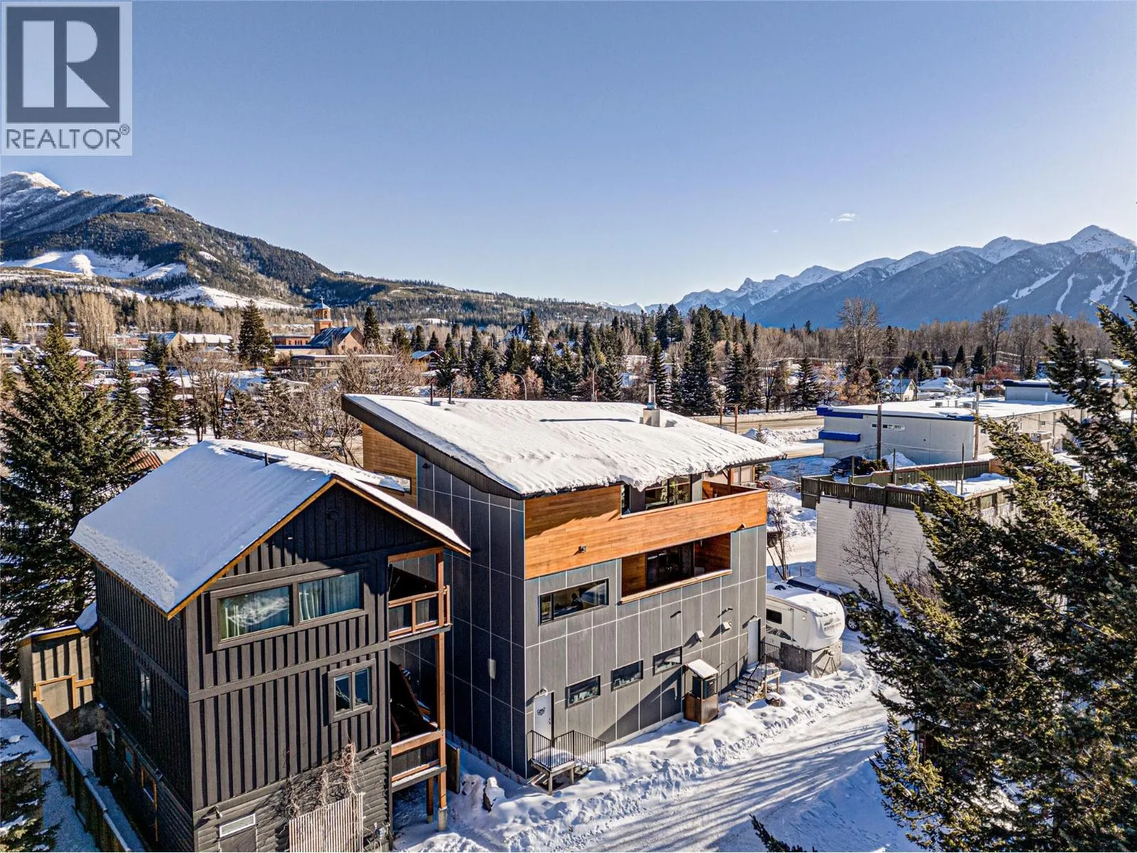 Opportunity knocks! Located in the heart of Fernie BC, this unique property, built in 2017 showcases inspired modern design.This property is zoned Commercial Highway offering a long list of uses: run your own business or earn revenue providing highly sort after commercial rental space. The commercial occupants will be vacating upon possession providing a blank slate for what you envision for this space! Let's explore top down. The topmost floor offers penthouse feels with unobstructed 180-degree views over the town through the expansive windows from an open plan living space bathed in natural light day long. Youâll spend all your time up here, enjoying your time beside the wood-burning fireplace or on the huge hot-tub-ready deck that wraps around 3 sides of this level. Youâll appreciate the dedicated dining space, well-appointed kitchen with walk-in pantry and conveniently located laundry and powder room on this level. Below, on the middle floor youâll discover 3 bedrooms, all with their own full ensuite bathroom. The primary bedroom offers views of Mt Fernie through double doors or from itâs own private balcony. The lower level of this home comprises of the entry to the residence and a fully self-contained 1125 sqft commercial space. Other features include: air conditioning, large side yard for off-street parking or other, full footprint crawl space = storage++, exceptional highway exposure for business potential and MORE!. Book a tour! (id:27476)