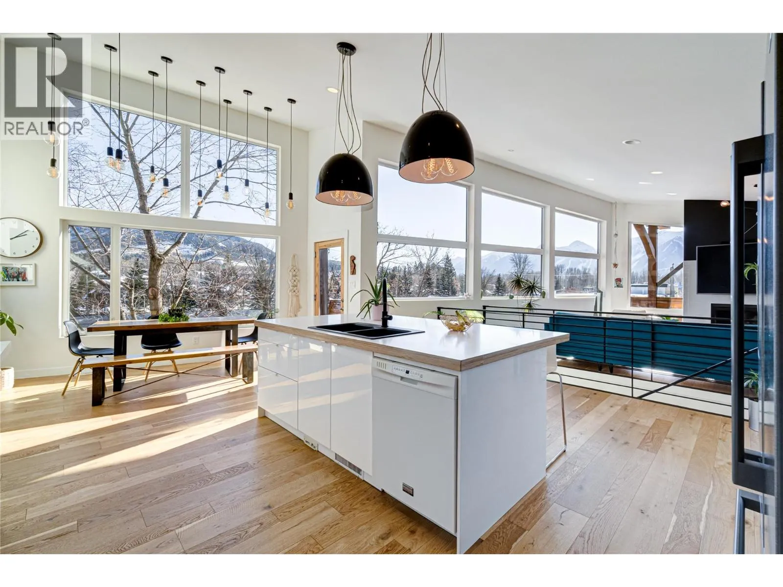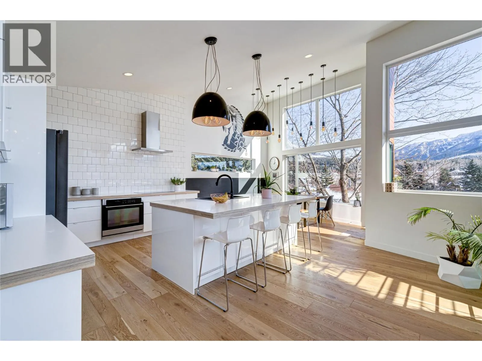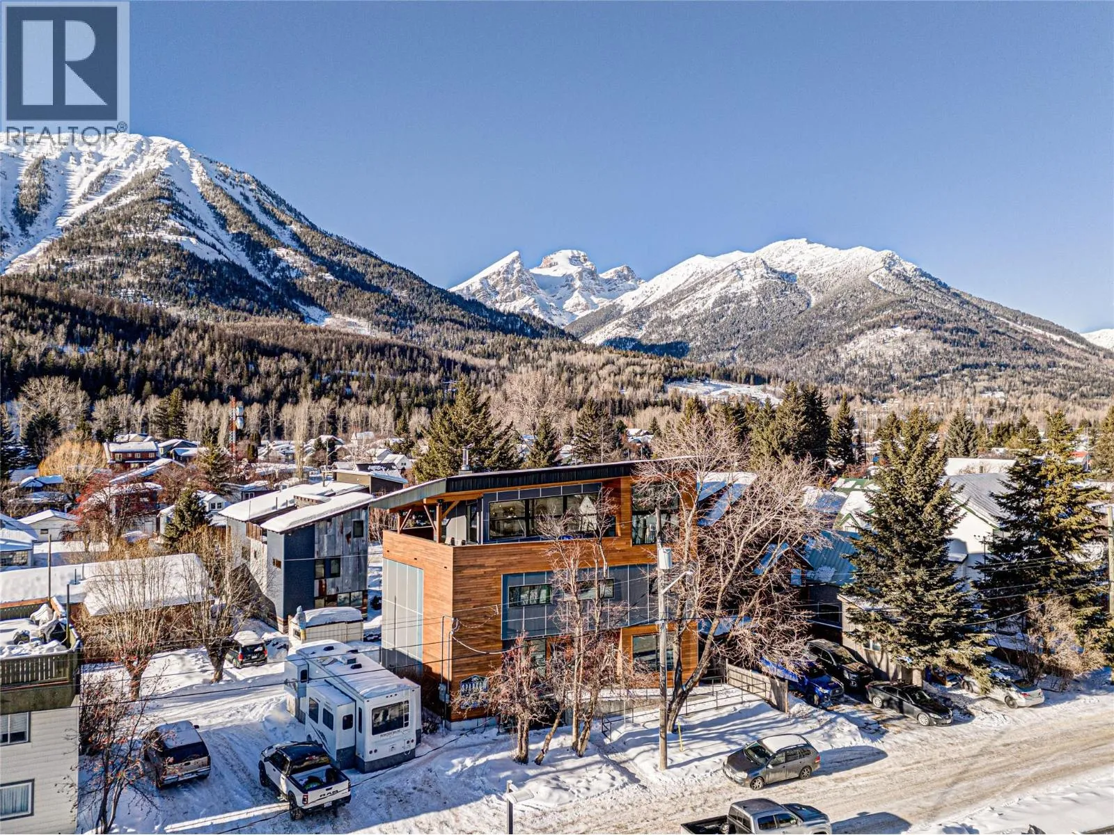 Opportunity knocks! Located in the heart of Fernie BC, this unique property, built in 2017 showcases inspired modern design. Let's explore top down. The topmost floor offers penthouse feels with unobstructed 180-degree views over the town through the expansive windows from an open plan living space bathed in natural light day long. Youâll spend all your time up here, enjoying your time beside the wood-burning fireplace or on the huge hot-tub-ready deck that wraps around 3 sides of this level. Youâll appreciate the dedicated dining space, well-appointed kitchen with walk-in pantry and conveniently located laundry and powder room on this level. Below, on the middle floor youâll discover 3 bedrooms, all with their own full ensuite bathroom. The primary bedroom offers views of Mt Fernie through double doors or from itâs own private balcony. The lower level of this home comprises of the entry to the residence and a fully self-contained 1125 sqft commercial space. This property is zoned Commercial Highway offering a long list of uses: run your own business or earn revenue providing highly sort after commercial rental space. The commercial occupants will be vacating upon possession providing a blank slate for what YOU envision for this space! Other features include: air conditioning, large side yard for off-street parking or other, full footprint crawl space = storage++, exceptional highway exposure for business potential and MORE!. Book a tour! Cross posted with MLS#10335227 (id:27476)