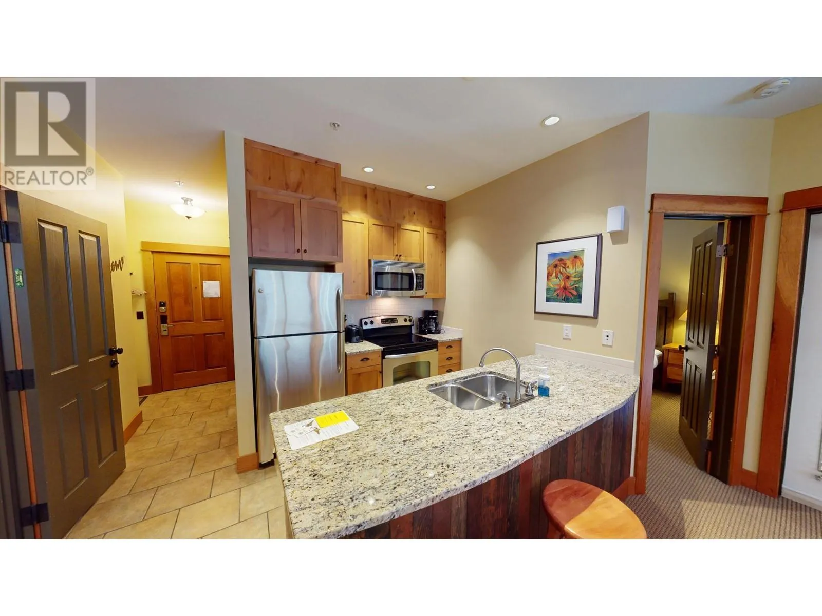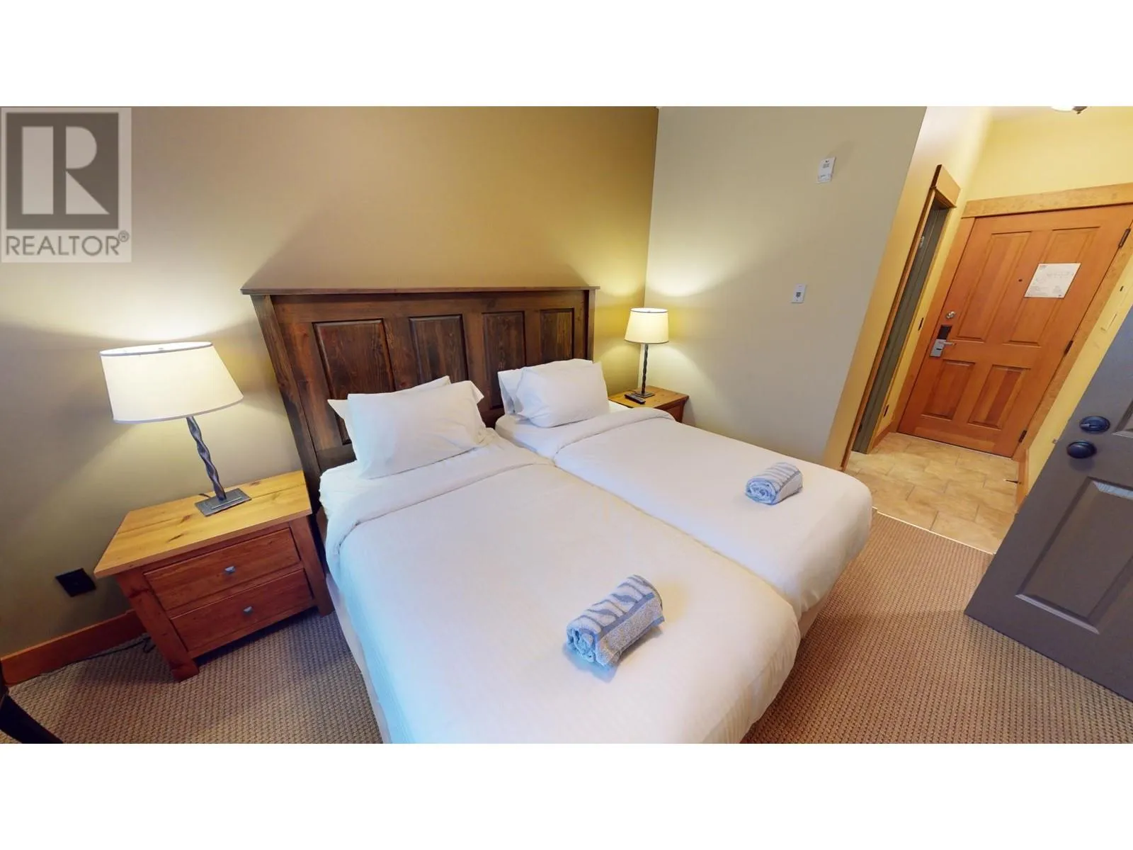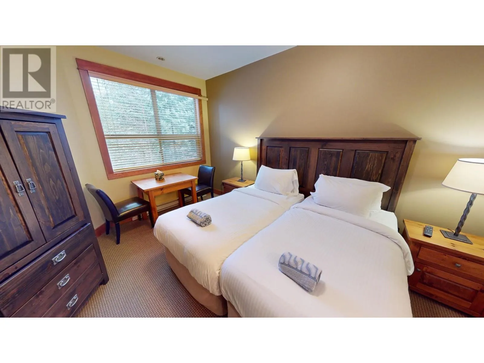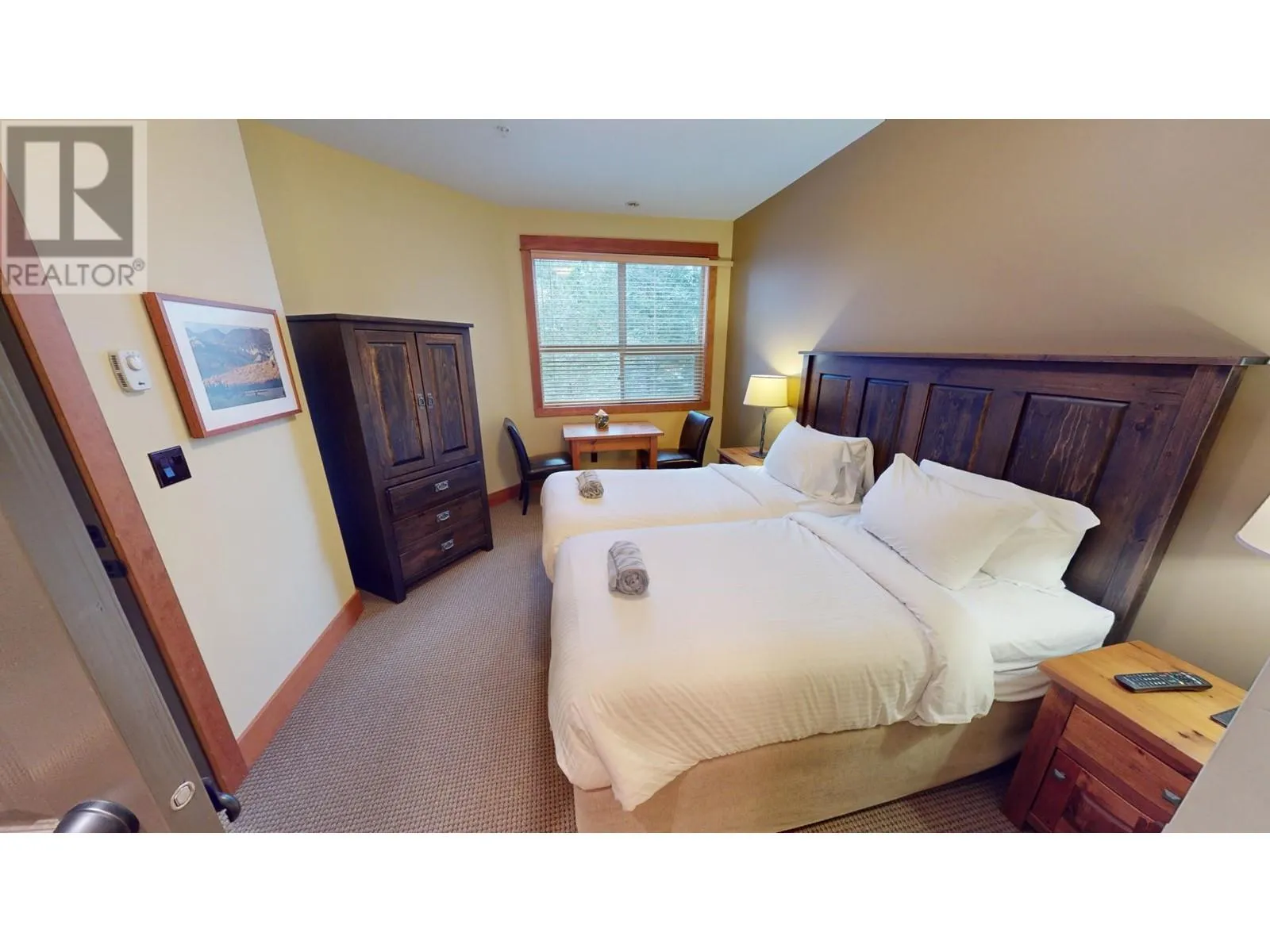 This stunning two-bedroom condo is situated on the second floor of Juniper Lodge, located on Timberline Crescent. Enter the building via a covered walkway that leads you into a welcoming lobby, complete with a spacious elevator for easy access to your unit. Start your day by sipping coffee while enjoying the morning sunlight streaming through every corner of this beautiful home. The dining area features built-in bench seating, while the cozy living room is centered around a charming fireplace, perfect for gathering. The condo offers two bedrooms and two bathrooms, both with heated tile flooring, as well as in-unit laundry. Step out onto the covered, all-season balcony, which boasts serene forest views. The unit's clever lock-off design allows it to be rented as either a one or two-bedroom suite, offering incredible flexibility. On-site amenities include a heated outdoor pool (open year-round), fitness room, spa, hot tubs, games rooms, and much more, ensuring an exceptional and affordable vacation experience. Additionally, you have the option to rent through the on-site property manager or exchange with other resorts worldwide. (id:27476)