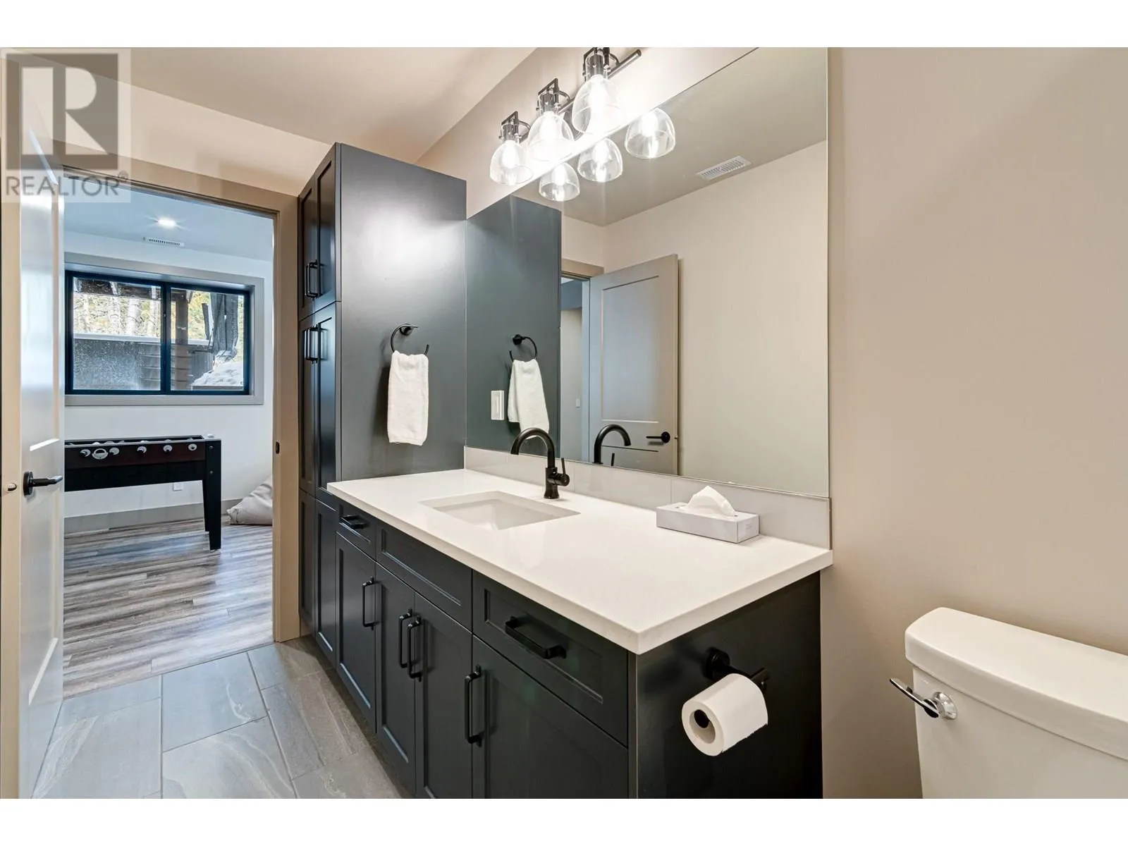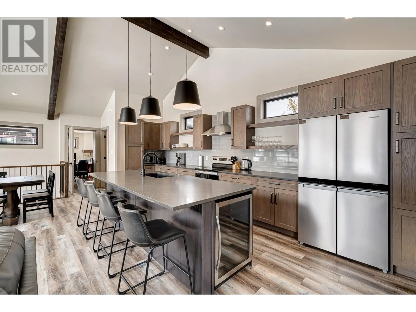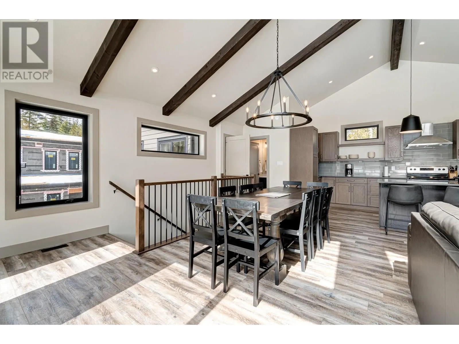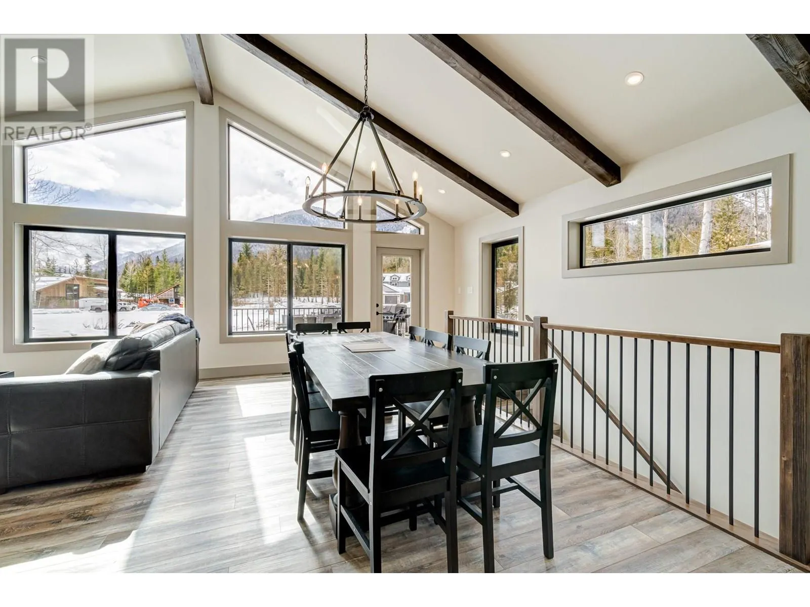 Step inside this 2024 built home in Timber Landing, ideally located on a quiet cul-de-sac and backing onto the ski out trail at the world famous Fernie Alpine Resort. This 5-bedroom, 4.5-bathroom home is tastefully designed and offers everything you need from a vacation getaway. The large driveway can play host to many vehicles or escape the snow in the spacious double garage. A large storage room located within the garage is the perfect place to store gear, valuables or supplies. The main floor offers a bright and functional entryway and a large rear mudroom with access to a back deck and hot tub, the master bedroom & ensuite and a guest bedroom and bathroom. The upper level features a grand, open concept main living room featuring warm neutral tones in the wood cabinets and stone fireplace surround. The gourmet kitchen, vaulted ceilings and large windows create a bright an inviting space to eat, relax and entertain. This level also features a 2-bedroom lock-off suite with a separate entrance, laundry, kitchen and living room with stone fireplace. Use it for revenue or as an extension of your main home! The basement level features a game and entertainment room, large bunk room, full bathroom and laundry & utility space. Don't miss your opportunity to tour this mountain retreat; call your Realtor today! (id:27476)