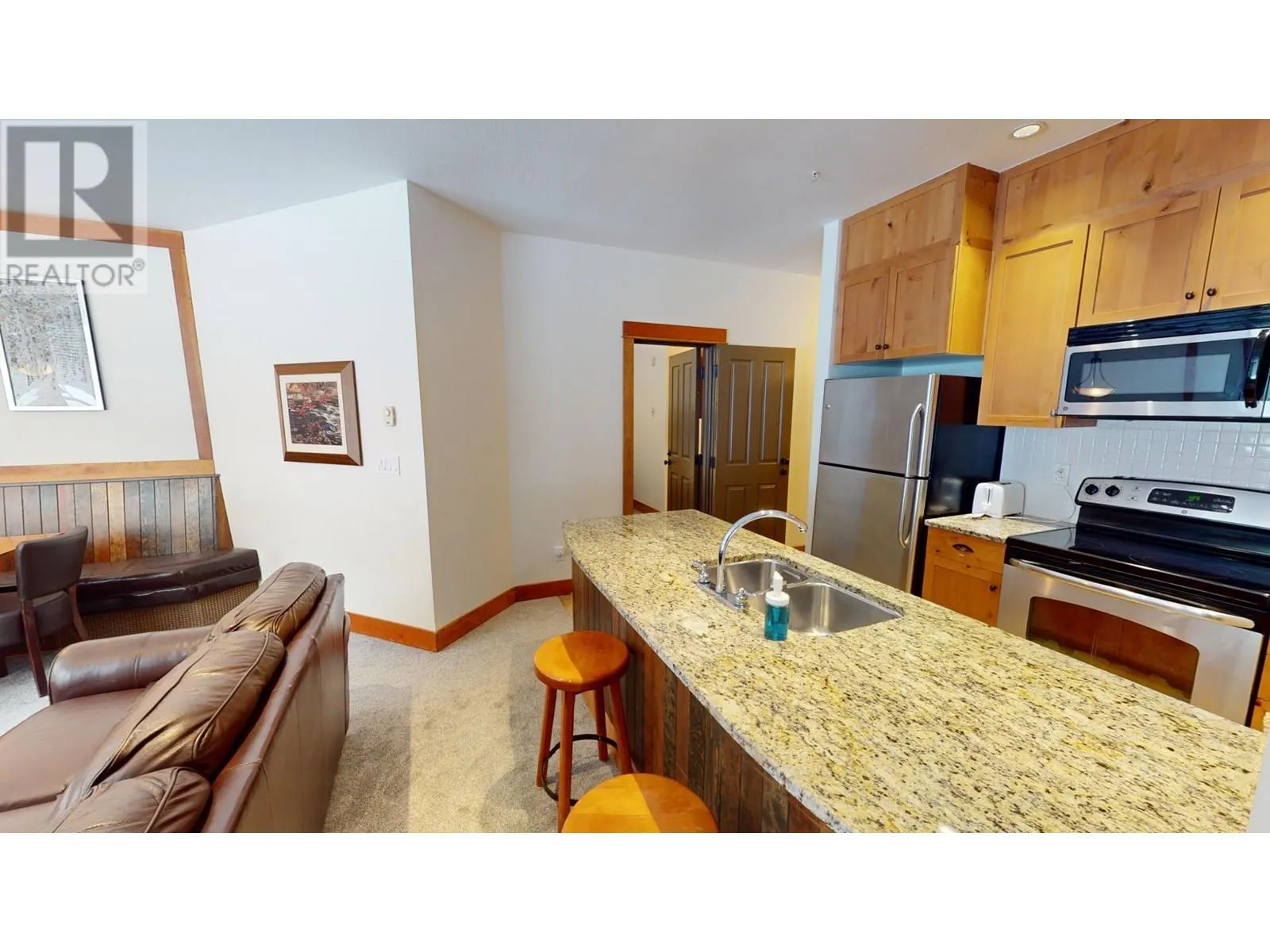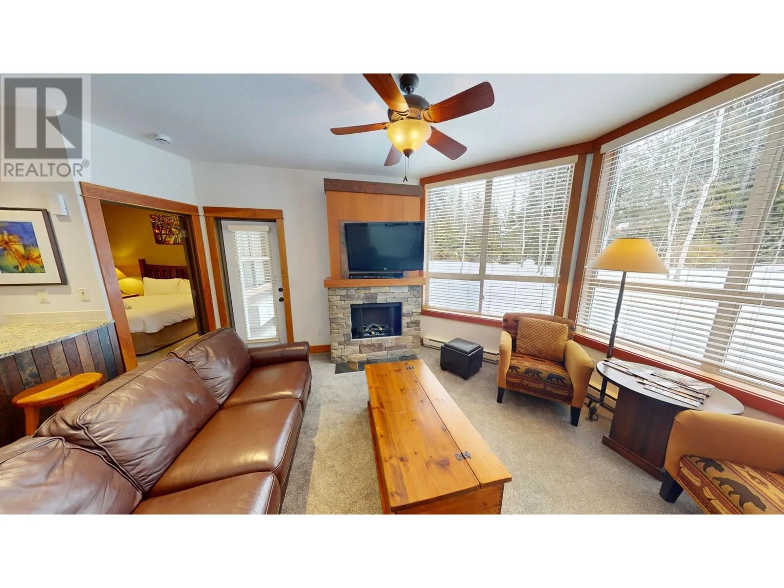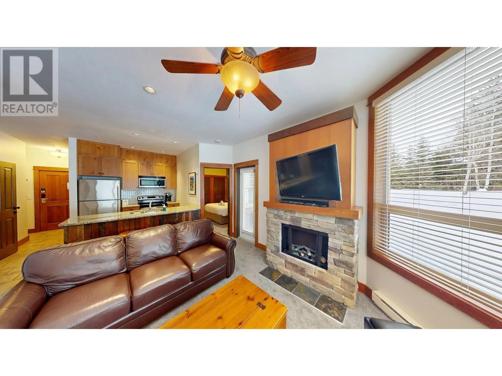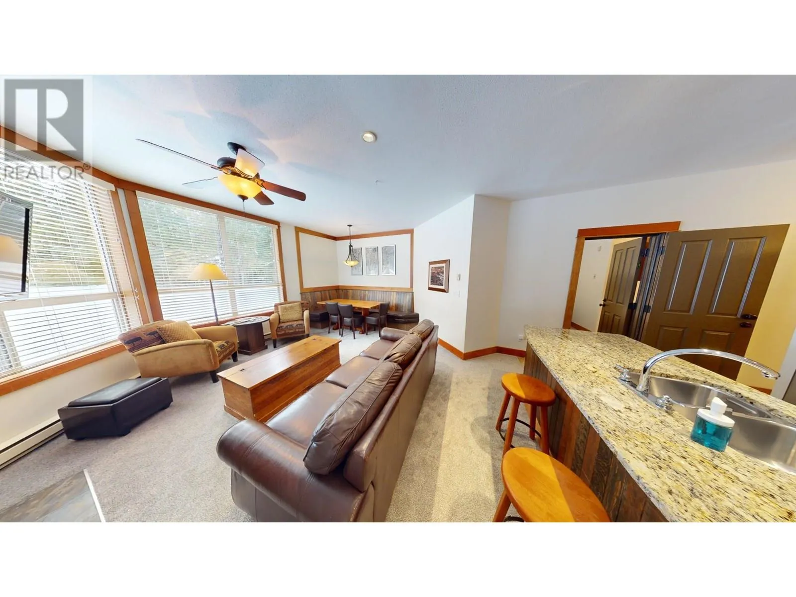 Your Winter Getaway Awaits at Juniper Lodge! Step into the comfort & luxury this summer season with this newly carpeted 1/4 Share Ownership 'C' suite, located on the ground floor of Juniper Lodge at Timberline Lodges. Imagine waking up in your 2-bed, 2-bath suite, opening the patio door, and letting your furry friend or kids to explore the snow-dusted surroundings. With a king-sized bed in the lock-off room & a queen-sized bed in the 2nd bedroom, this suite is ready to host your family for unforgettable mountain getaways. The convenience of a walk-out patio is also perfect for easy access to the hot tub & BBQ area, making relaxation & entertaining seamless. Inside, youâll find elegant features like granite kitchen counters & stainless-steel appliances. The Juniper Lodge isnât just a place to stayâitâs an experience. Dive into the heated outdoor pool, open year-round, or work up a sweat in the fitness room. Challenge the kids in the games room, or soak your cares away in one of the hot tubs. When youâre not using your suite, take advantage of the on-site property management rental program or exchange it for stays at resorts around the world. This suite offers everything your family needs to make memories that last a lifetime. Owners only pay the association fee of $389.69 monthly (the strata fee is included in this fee). 'Fernie - Where your next Adventure Begins!' (id:27476)