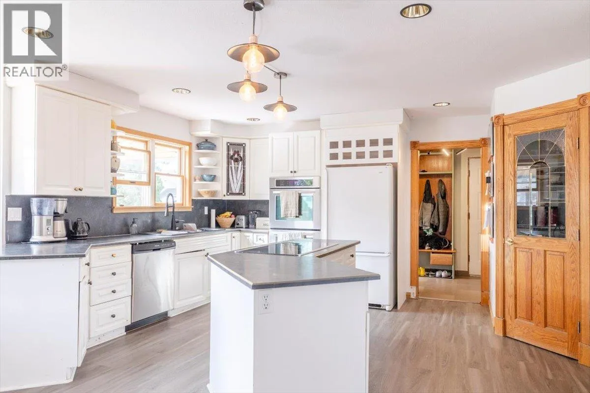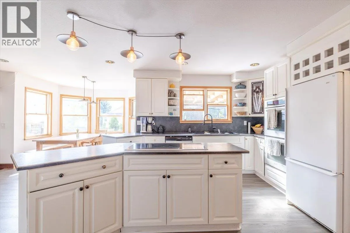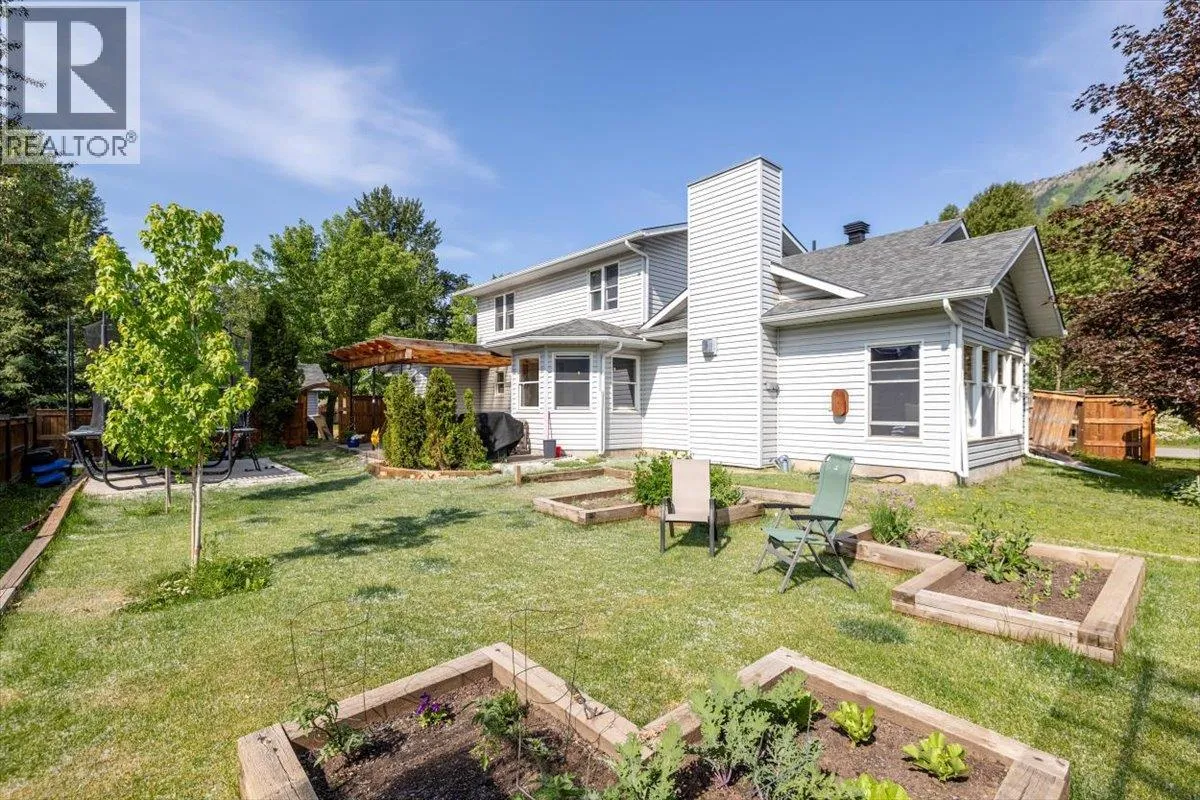 Situated just steps from the Elk River in one of Fernieâs most desirable neighbourhoods, this 5 bedroom, 4 bathroom home offers exceptional lifestyle and location. Set on two separately titled lots, the property boasts expansive front and rear yards with ample space for entertaining, future home expansion, or the addition of a detached garage or suite. At the front of the home, a covered patio provides breathtaking views of the surrounding mountainsâperfect for relaxing and enjoying the afternoon sun. Inside, the main floor welcomes you with a generous entry hallway leading to a spacious primary bedroom with en-suite bath. At the rear of the home lies a bright, functional kitchen with abundant cabinet and counter space, a walk-in pantry, and an adjacent dining area. The great room is warm and inviting with vaulted ceilings, hardwood floors, and a custom fireplace surround. Upstairs, youâll find three additional bedrooms, a full guest bathroom, and a versatile common area ideal for a home office or childrenâs playroom. The oversized, heated, and insulated two-bay garage is wired for 240V serviceâan excellent setup for a workshop or gear storage. Located within easy walking distance to local schools, downtown Fernie, and just a 7-minute drive to world-class skiing at Fernie Alpine Resort, this property is a rare opportunity to own a well-appointed home in an unbeatable location. (id:27476)