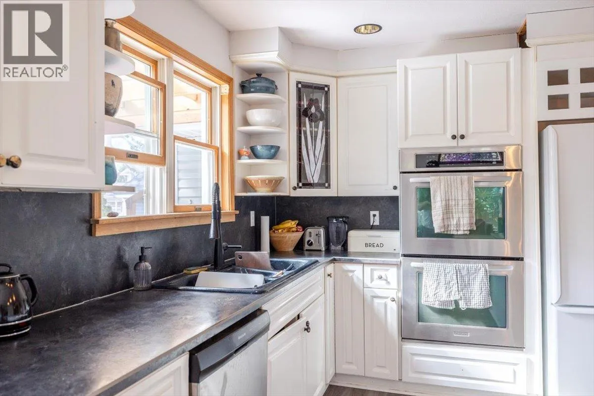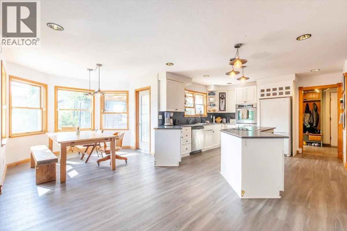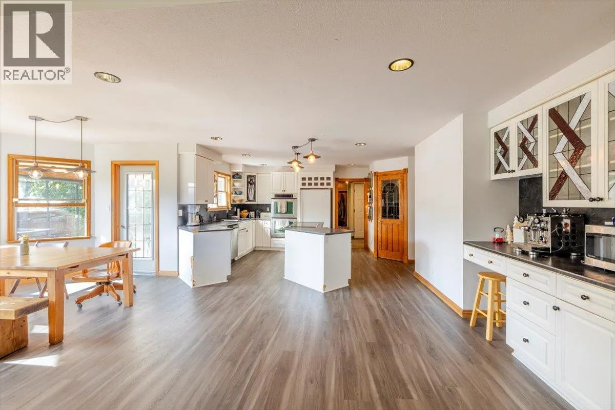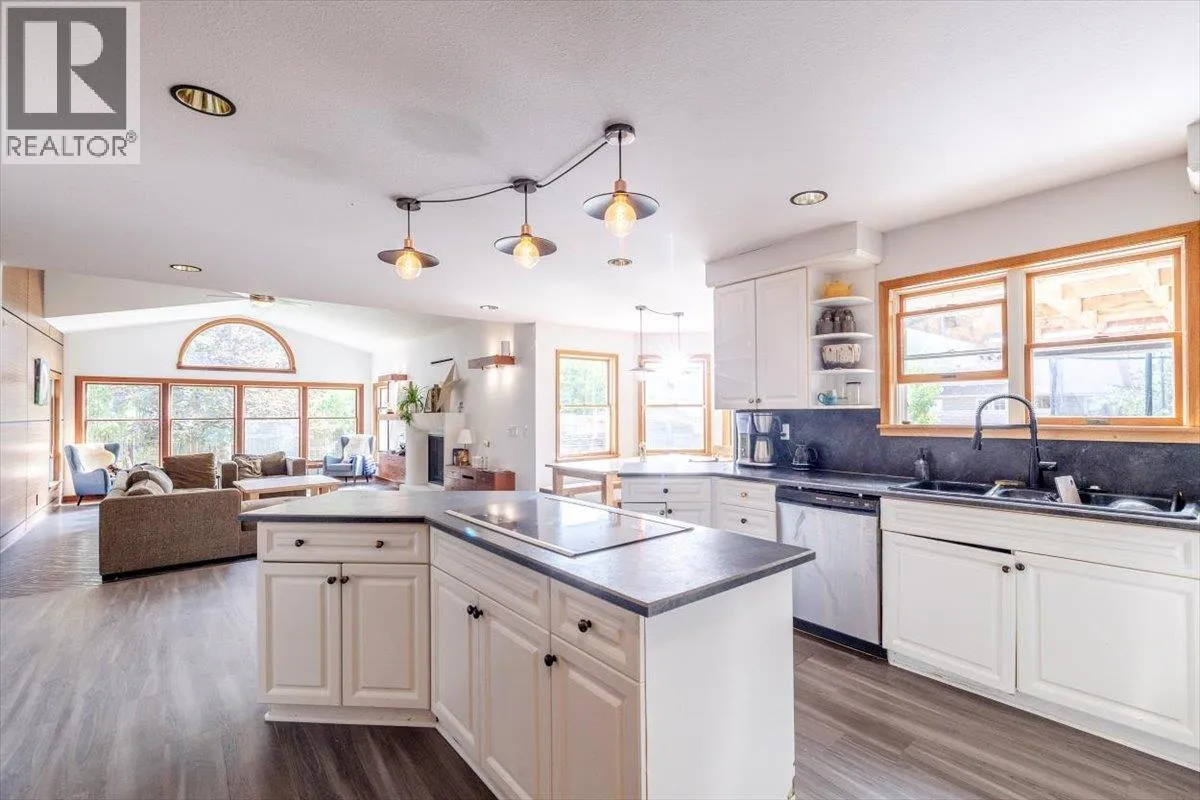 Situated just steps from the Elk River in one of Fernieâs most desirable neighbourhoods, this 5 bedroom, 4 bathroom home offers exceptional lifestyle and location. Set on two separately titled lots, the property boasts expansive front and rear yards with ample space for entertaining, future home expansion, or the addition of a detached garage or suite. At the front of the home, a covered patio provides breathtaking views of the surrounding mountainsâperfect for relaxing and enjoying the afternoon sun. Inside, the main floor welcomes you with a generous entry hallway leading to a spacious primary bedroom with en-suite bath. At the rear of the home lies a bright, functional kitchen with abundant cabinet and counter space, a walk-in pantry, and an adjacent dining area. The great room is warm and inviting with vaulted ceilings, hardwood floors, and a custom fireplace surround. Upstairs, youâll find three additional bedrooms, a full guest bathroom, and a versatile common area ideal for a home office or childrenâs playroom. The oversized, heated, and insulated two-bay garage is wired for 240V serviceâan excellent setup for a workshop or gear storage. Located within easy walking distance to local schools, downtown Fernie, and just a 7-minute drive to world-class skiing at Fernie Alpine Resort, this property is a rare opportunity to own a well-appointed home in an unbeatable location. (id:27476)