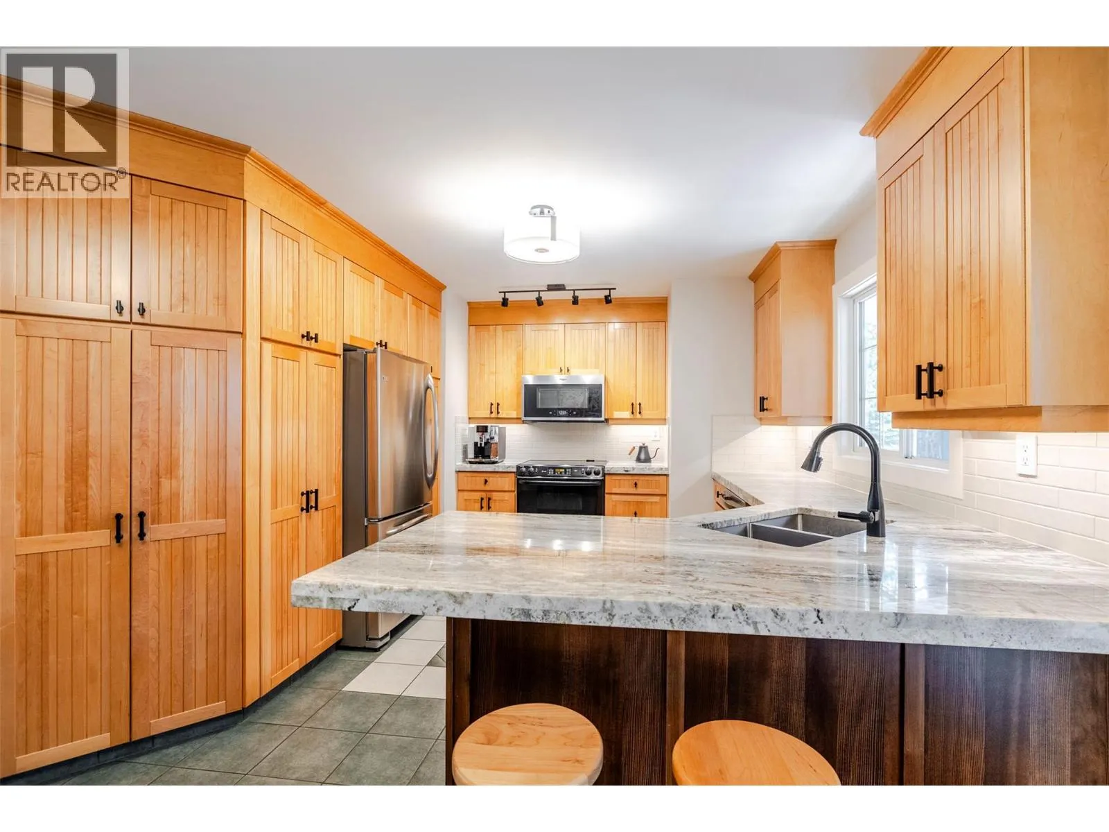Welcome to 3 Elkview Cr, located on one of Fernie's most desirable streets within easy walking distance to Fernie's historic downtown. Situated on just under 1/3 acre, this four bedroom/three bathroom home has been tastefully renovated with thoughtful touches throughout. Pride of ownership shows with solid maple kitchen cabinetry, stone counters and stainless appliances, built in shelving in both living areas with stylish fireplaces, large custom walk in closet by California Closets and beautiful laundry room, to name a few. Living, kitchen, and dining spaces connect for family living and entertaining and two bedrooms, including primary with ensuite, on the main floor combined with the two bedrooms on the lower level, offer room and comfort for all. Both floors feature brand new bathrooms. Very cozy media room with fireplace is the perfect place to snuggle up and watch the game or movie night. Ready for more? With the double size lot, you'll find everything you could want outside. Large yard transitions to the outdoor living area with large patio, covered area, built in stone planter box, hot tub and outdoor kitchen. A spectacular entertaining area rarely seen. The oversize shop can stay as luxury home for all your gear or become a coach house, with it's separate plumbing and electrical. Covered doubled carport with large parking area means you'll never want for space. Homes on this private street rarely become available, take advantage of this opportunity to find your forever home! (id:27476)