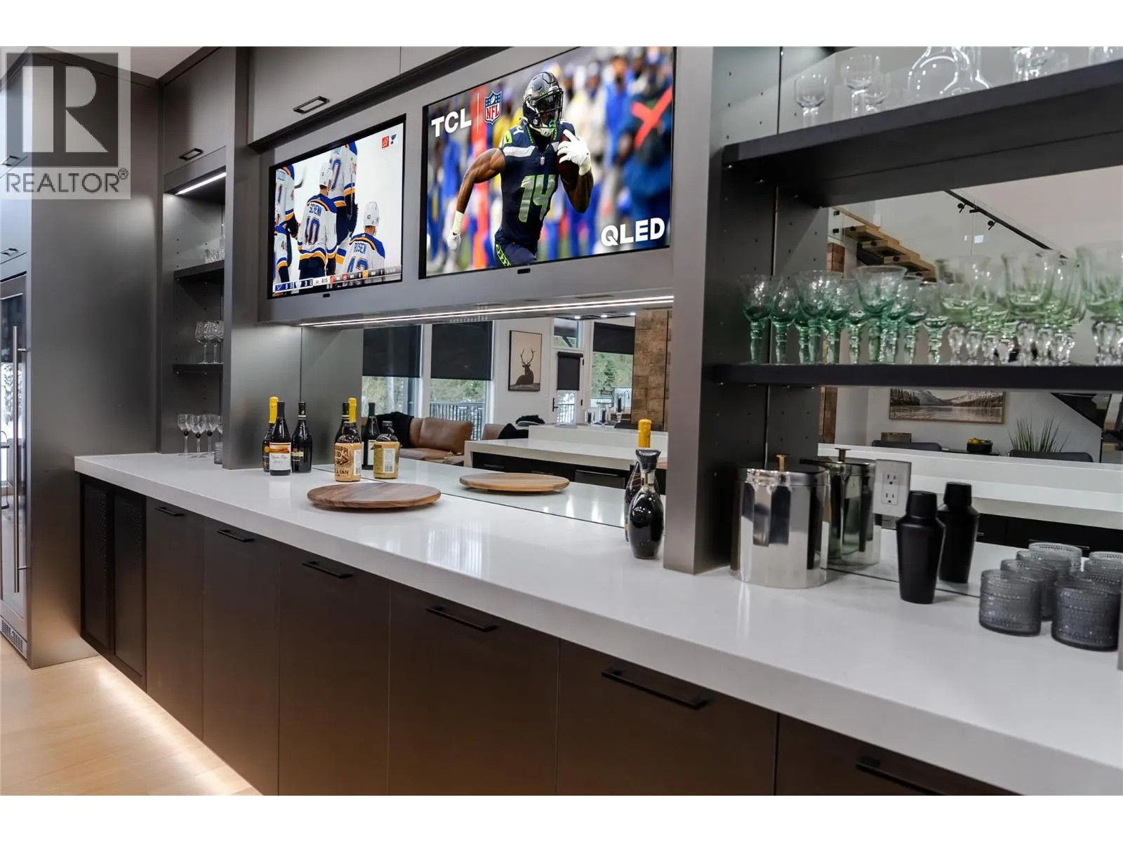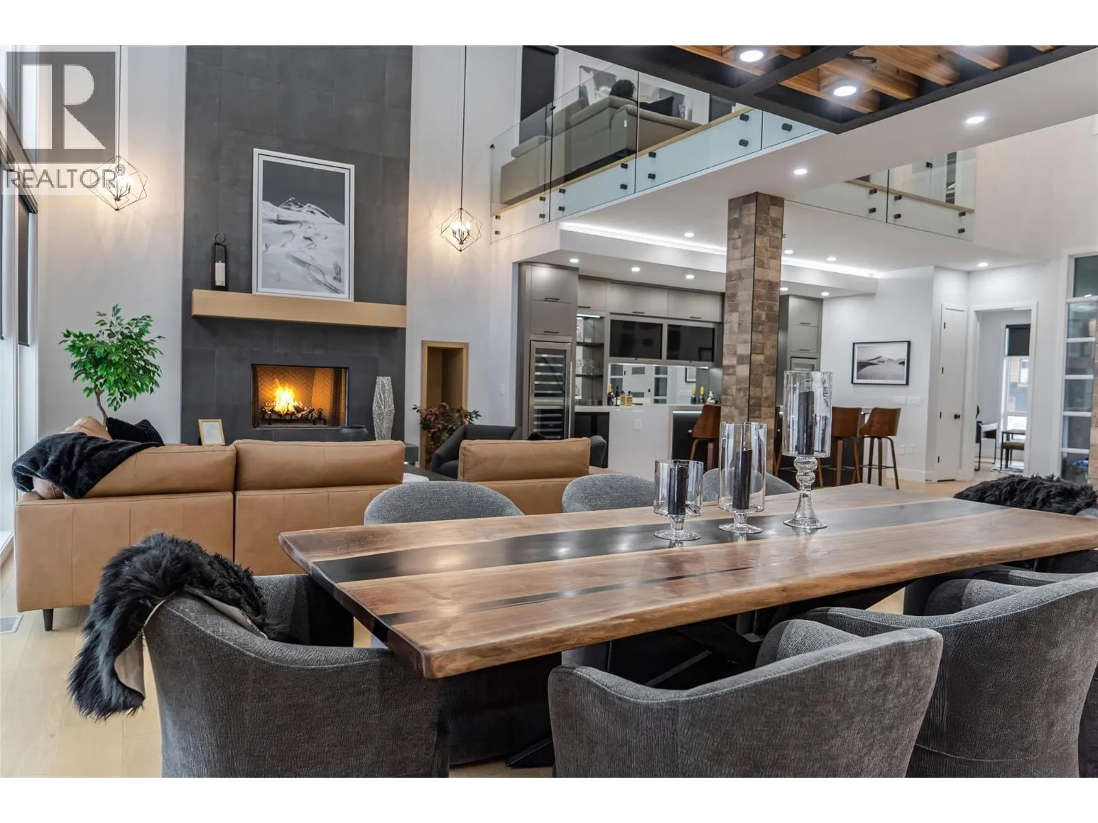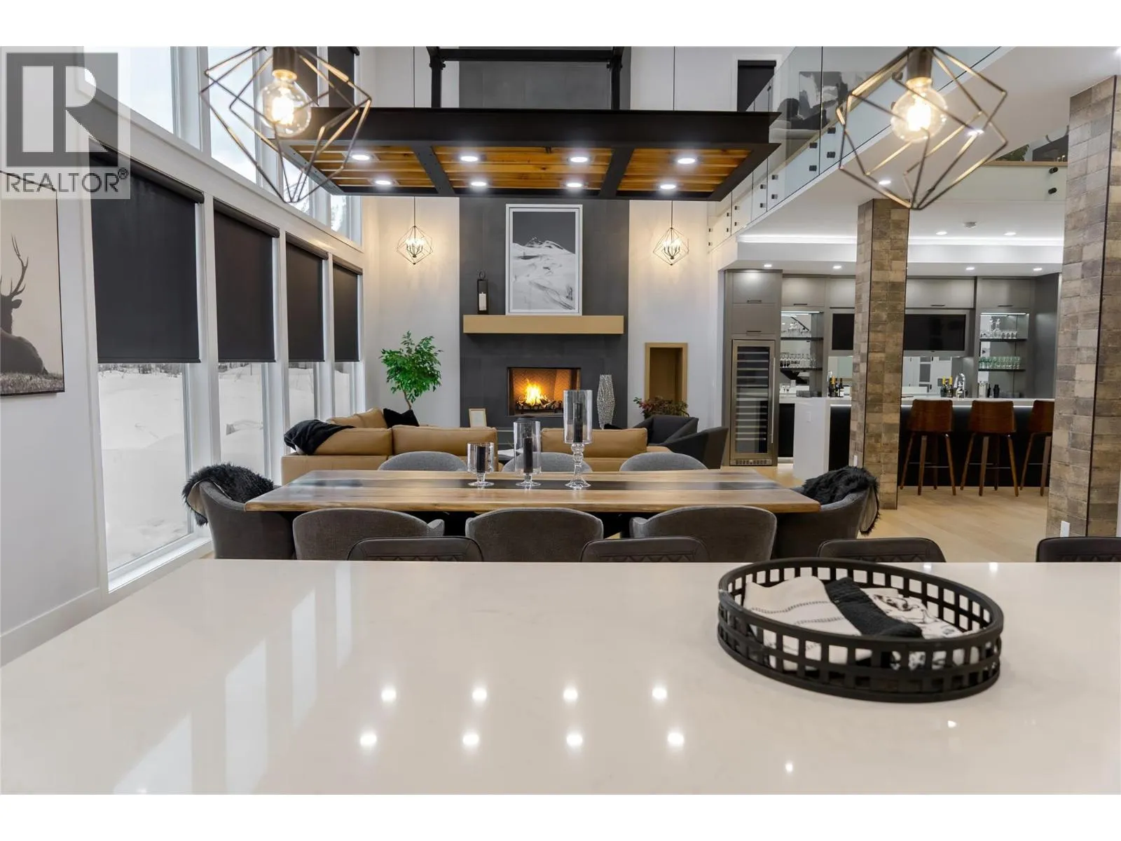 This stunning custom-built home in The Cedars perfectly blends luxury, comfort, and mountain living. Featuring four spacious bedrooms and four bathrooms, including two private ensuites, this residence is designed for both family living and entertaining. The grand gourmet kitchen showcases quartz countertops, stainless steel appliances, custom cabinets and coffee bar with built-in cappuccino machine. The open-concept layout, vaulted and two-story ceilings, and recessed LED lighting throughout create a bright, airy ambiance. The custom-designed dining room table light adds a striking focal point, complementing the homeâs modern elegance. Enjoy cozy evenings by the wood-burning or gas fireplace, or host friends in the sports bar complete with built-in televisions, ice machine, dishwasher and beverage coolers. The crafted glass staircase, floating vanities, solar blinds, and fine finishings add sophistication and serenity at every turn. Step outside to two spacious decks, or into the fully landscaped yard, perfect for outdoor relaxation and to take in the amazing mountain views. The oversized double garage with high ceilings offers the space you need for your gear and much more. The laundry is complete with built-in ski lockers, and a 32 pair boot and glove warmerâideal for adventure enthusiasts. With air conditioning for year-round comfort and adventures right outside your doorstep, this exceptional home is truly move-in ready and offers refined mountain living at its finest.. Call today to schedule your private tour! (id:27476)