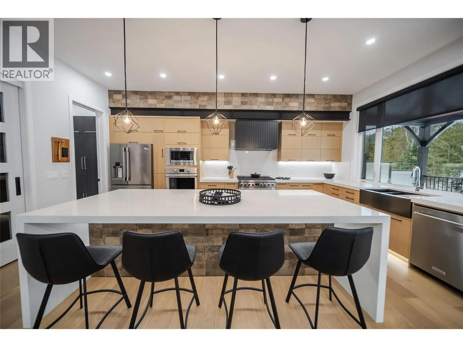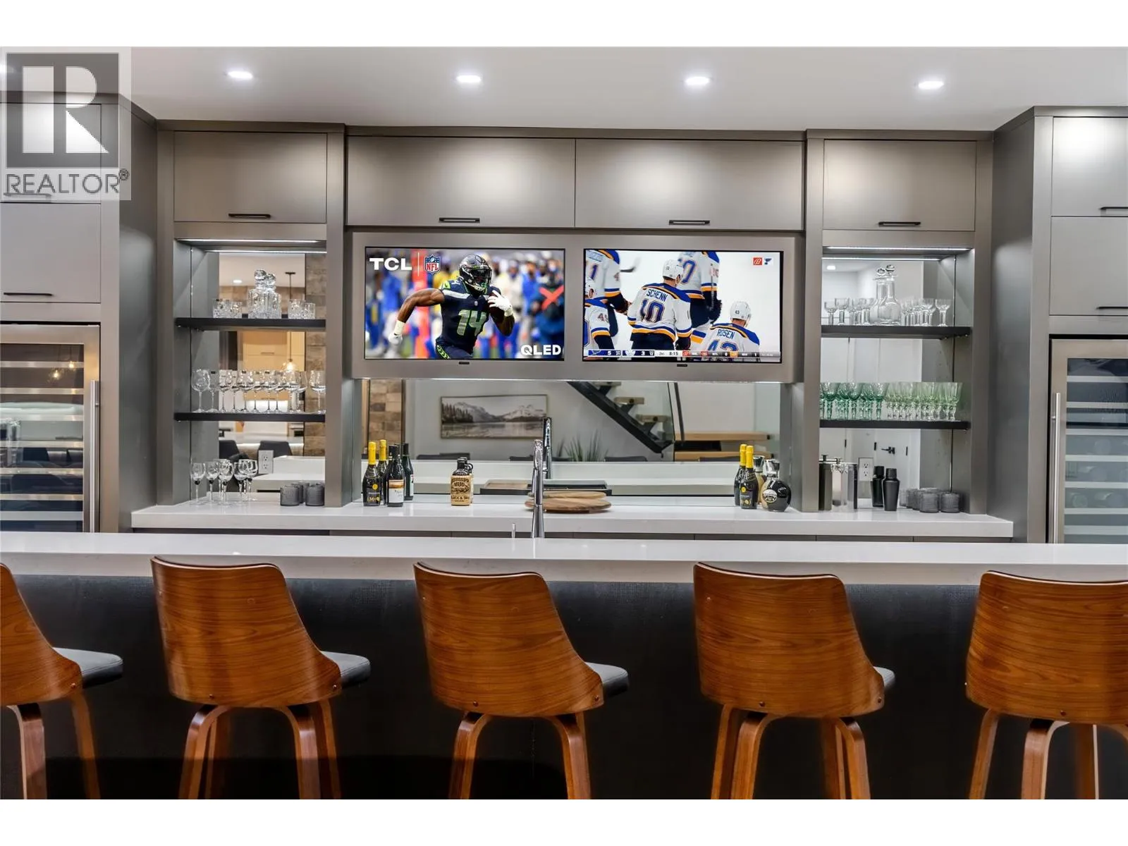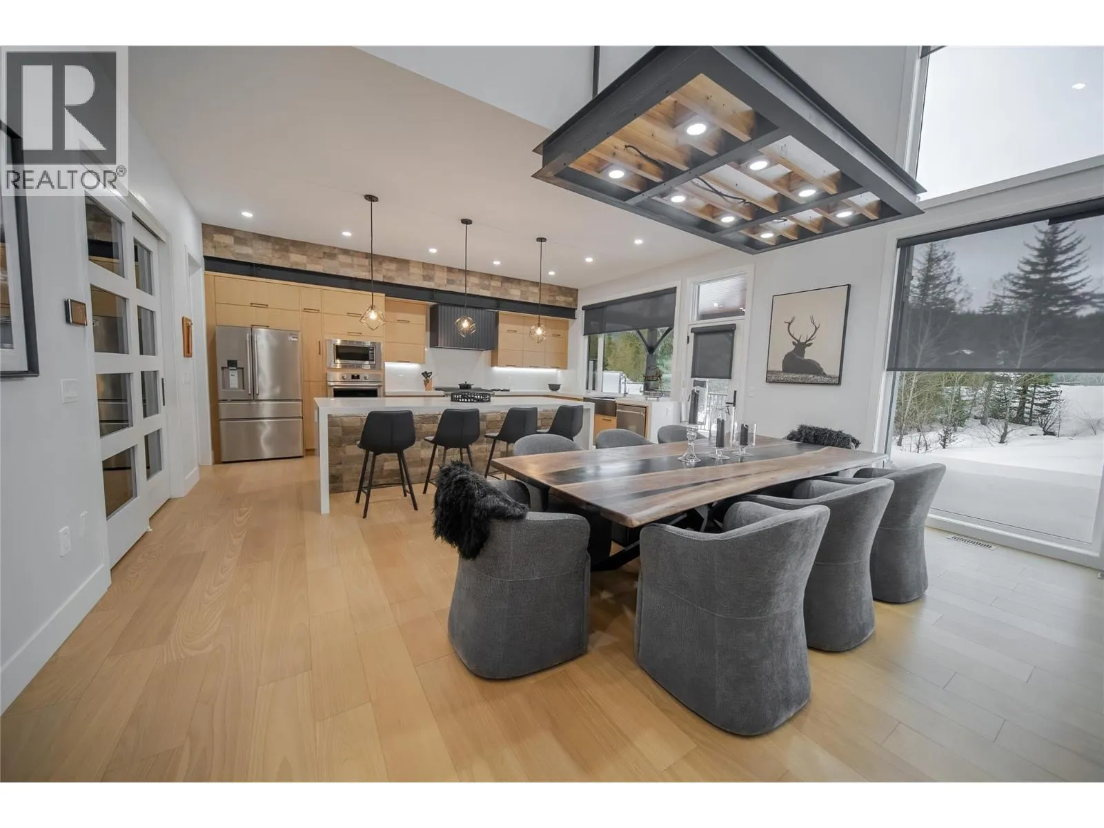 This stunning custom-built home in The Cedars perfectly blends luxury, comfort, and mountain living. Featuring four spacious bedrooms and four bathrooms, including two private ensuites, this residence is designed for both family living and entertaining. The grand gourmet kitchen showcases quartz countertops, stainless steel appliances, custom cabinets and coffee bar with built-in cappuccino machine. The open-concept layout, vaulted and two-story ceilings, and recessed LED lighting throughout create a bright, airy ambiance. The custom-designed dining room table light adds a striking focal point, complementing the homeâs modern elegance. Enjoy cozy evenings by the wood-burning or gas fireplace, or host friends in the sports bar complete with built-in televisions, ice machine, dishwasher and beverage coolers. The crafted glass staircase, floating vanities, solar blinds, and fine finishings add sophistication and serenity at every turn. Step outside to two spacious decks, or into the fully landscaped yard, perfect for outdoor relaxation and to take in the amazing mountain views. The oversized double garage with high ceilings offers the space you need for your gear and much more. The laundry is complete with built-in ski lockers, and a 32 pair boot and glove warmerâideal for adventure enthusiasts. With air conditioning for year-round comfort and adventures right outside your doorstep, this exceptional home is truly move-in ready and offers refined mountain living at its finest.. Call today to schedule your private tour! (id:27476)