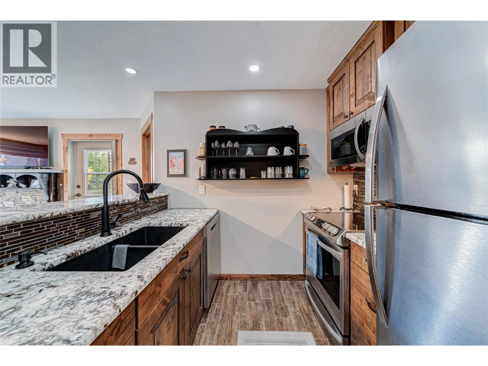 Beautifully updated 2-Bed, 2-Bath condo in Spruce Lodges, Timberline Crescent on the Fernie ski hill. This suite has been tastefully updated with a added features like a coffee bar, granite countertops, modern mountain finishes, built-in -storage, walk in showers just to name a few. With a built in murphy bed you have additional living and bedroom options. The suite includes an additional stand up freezer and in-suite laundry. This suite comes furnished, so ""turn key"" ready for the upcoming ski season. Enjoy stunning mountain view from the large windows or from your private deck. There are 2 storage lockers included and the building shares a covered hot tub, great room, sauna, BBQ, picnic tables and green space. There are no rental restrictions and no GST. This suite is perfect for full-time living, a getaway, or investment property. Contact your agent to view this beautiful mountain retreat today! (id:27476)