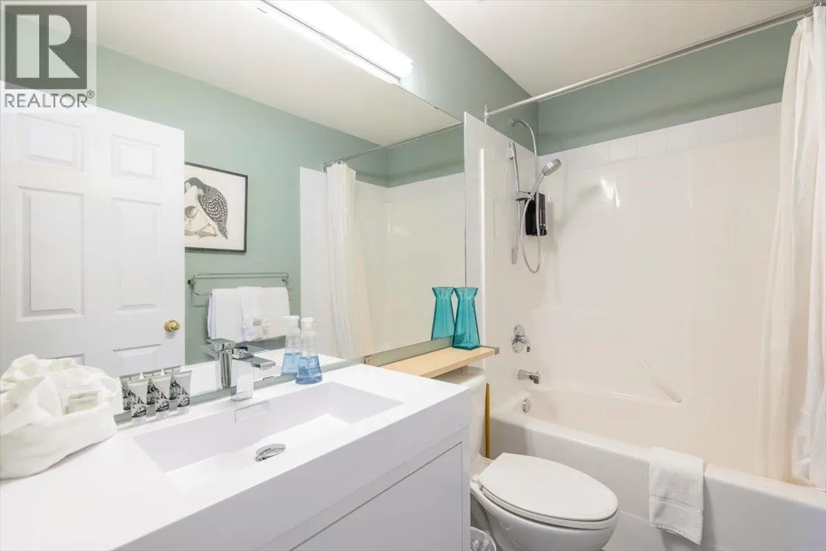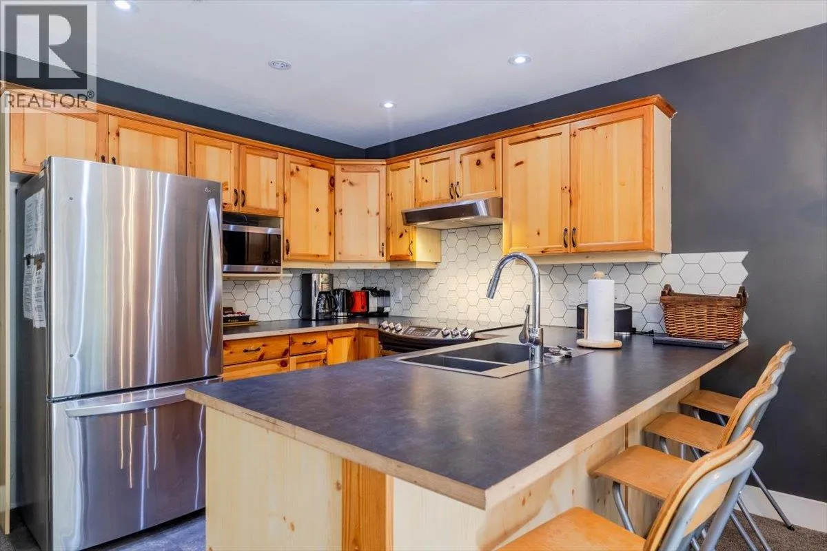 Welcome to Stone Creek at Fernie Alpine Resort ; a beautifully updated 2 bedroom, 2 bathroom retreat backing directly onto peaceful forested greenspace. With 920 sq ft of single-level living, this mountain condo blends comfort, simplicity and design-forward finishes. The kitchen has been tastefully renovated with stainless appliances and modern cabinetry. Both bathrooms have been re-done and the feature fireplace creates a warm anchor point for apres evenings. Full sized in-suite laundry, newer hot water tank, and thoughtful upgrades throughout provide peace of mind. Step out to your private hot tub and soak in the quiet; itâs the ultimate Fernie reset. This property offers maximum flexibility - keep it for your personal mountain getaway, use it seasonally, or leverage excellent rental demand with short-term rentals permitted (Airbnb/VRBO friendly). Condo comes fully furnished - truly turn key, just bring your gear. Stone Creek is located in one of the most sought-after bases at the resort with easy access to lifts, biking, hiking, Nordic and year-round adventure. This is the mountain home youâve been waiting for. (id:27476)