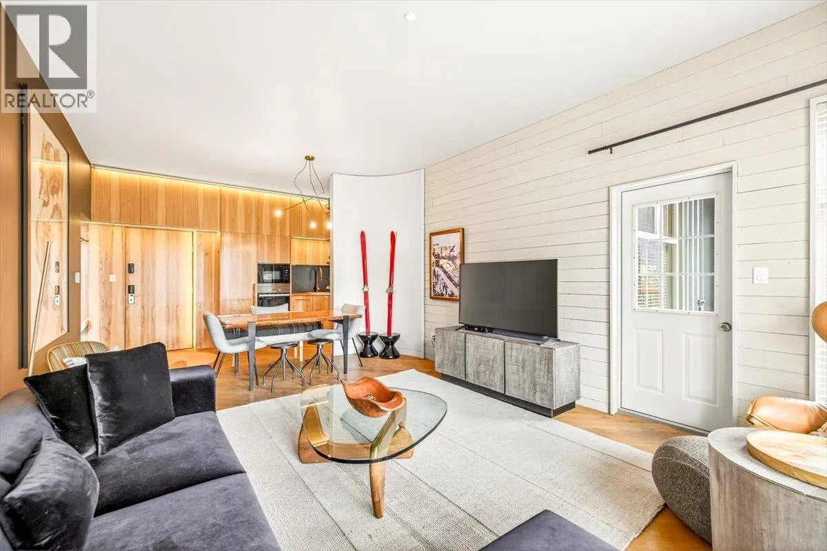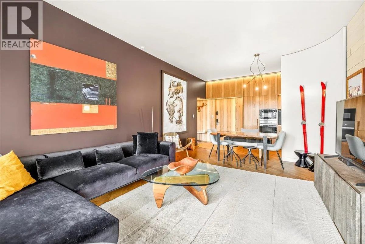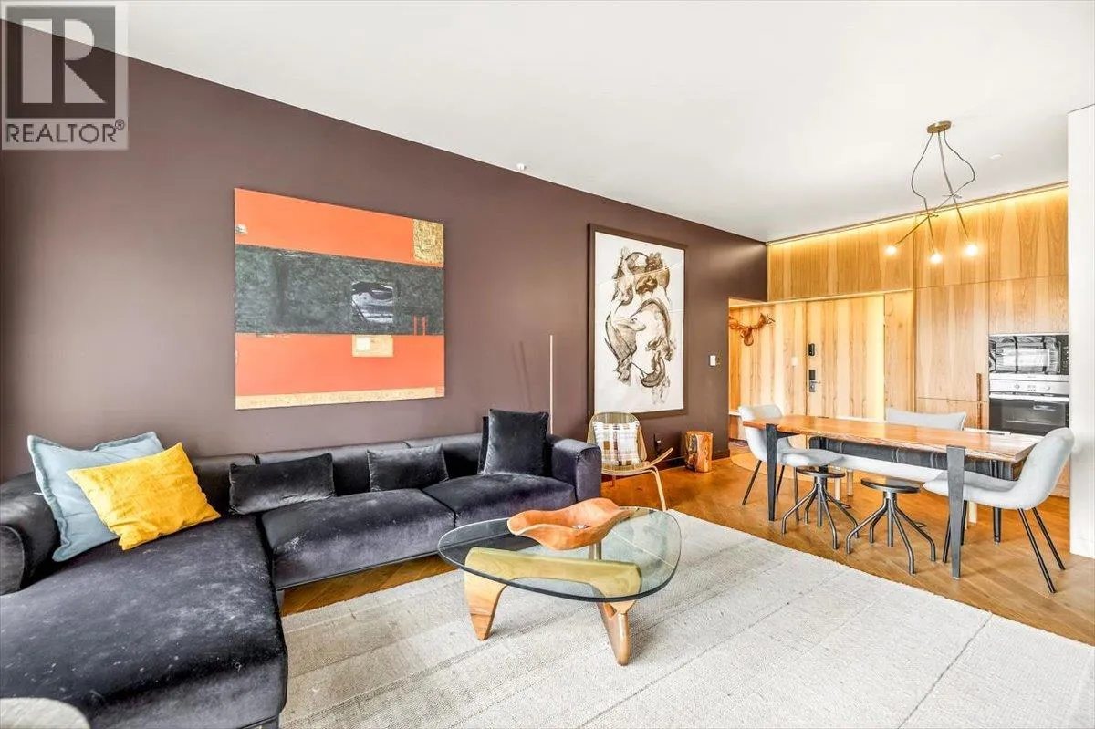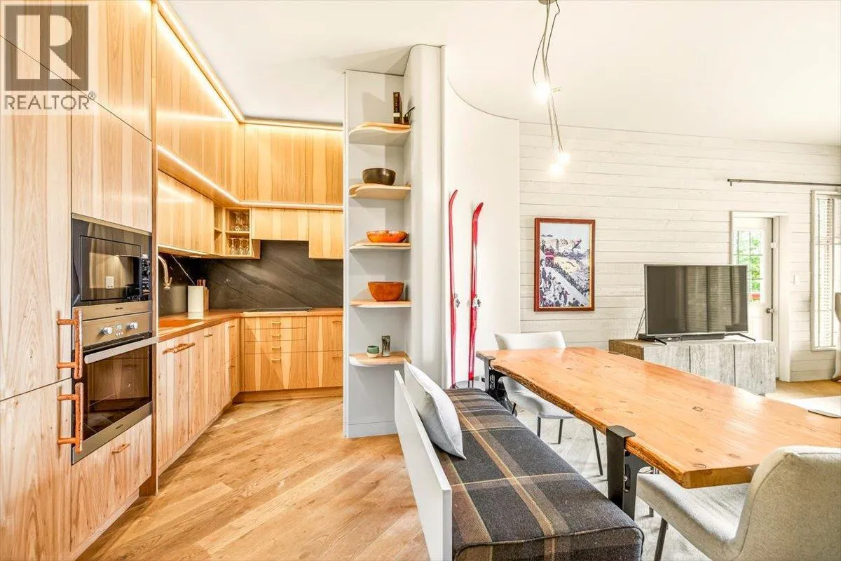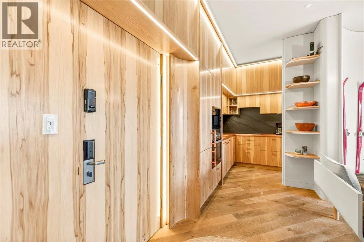 An unparalleled renovated urban-vibe unit within the coveted Snow Creek Lodge at Fernie Alpine Resortârare true ski-in/ski-out location, perfectly positioned overlooking the slopes. This 2-bedroom, 2-bath residence was completely gutted, reconfigured, and rebuilt to the highest standards. The ceiling was slightly lowered to incorporate advanced soundproofing from above, yet still provides a 9.5â ceiling height. Interior highlights include wide-plank oak flooring, custom hickory cabinetry, elegant curved walls and refined, custom design elements throughout. The dream kitchen features hidden Miele appliances, copper countertops and sink. Thoughtful hidden storage through out this unit is a welcome surprise. The primary suite is privately situated with custom built-ins, a cowhide headboard, and a spa-like ensuite boasting heated stone floors, petrified wood sink, Duravit toilet, and HansGrohe fixtures. The second bedroom offers flexible sleeping arrangements, with a cleverly designed nook perfect for children or guests, separated by custom barn doors. The second bath mirrors the same elevated finishes. Sold fully furnished, showcasing curated designer furnishings. Exceptional as a private retreat or investment, with no Airbnb restrictions. Excellent historical rental revenues. Complex amenities include secure entry, heated parkade, outdoor heated pool, hot tubs, BBQ area, and a welcoming indoor lounge with a stunning fireplace. A rare opportunity for the discerning buyer. (id:27476)