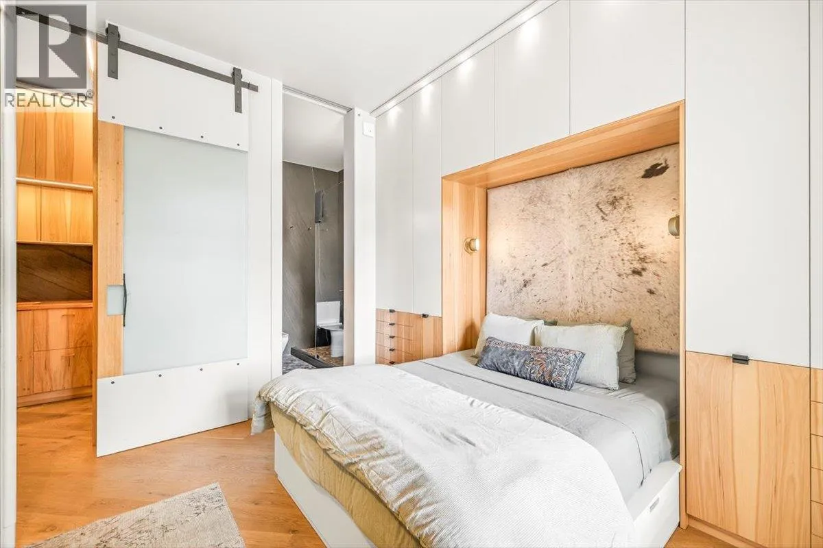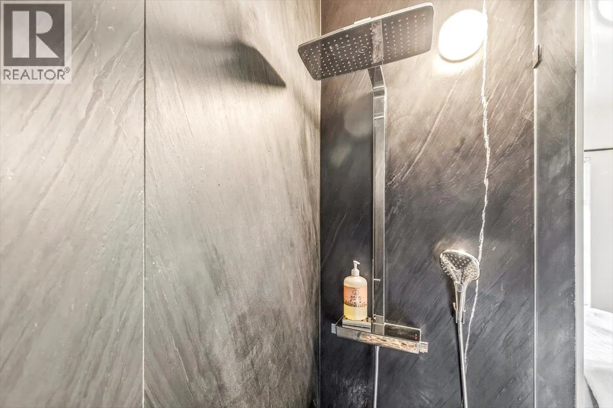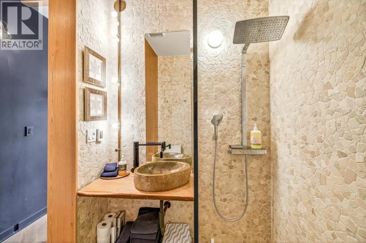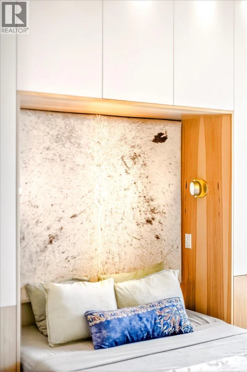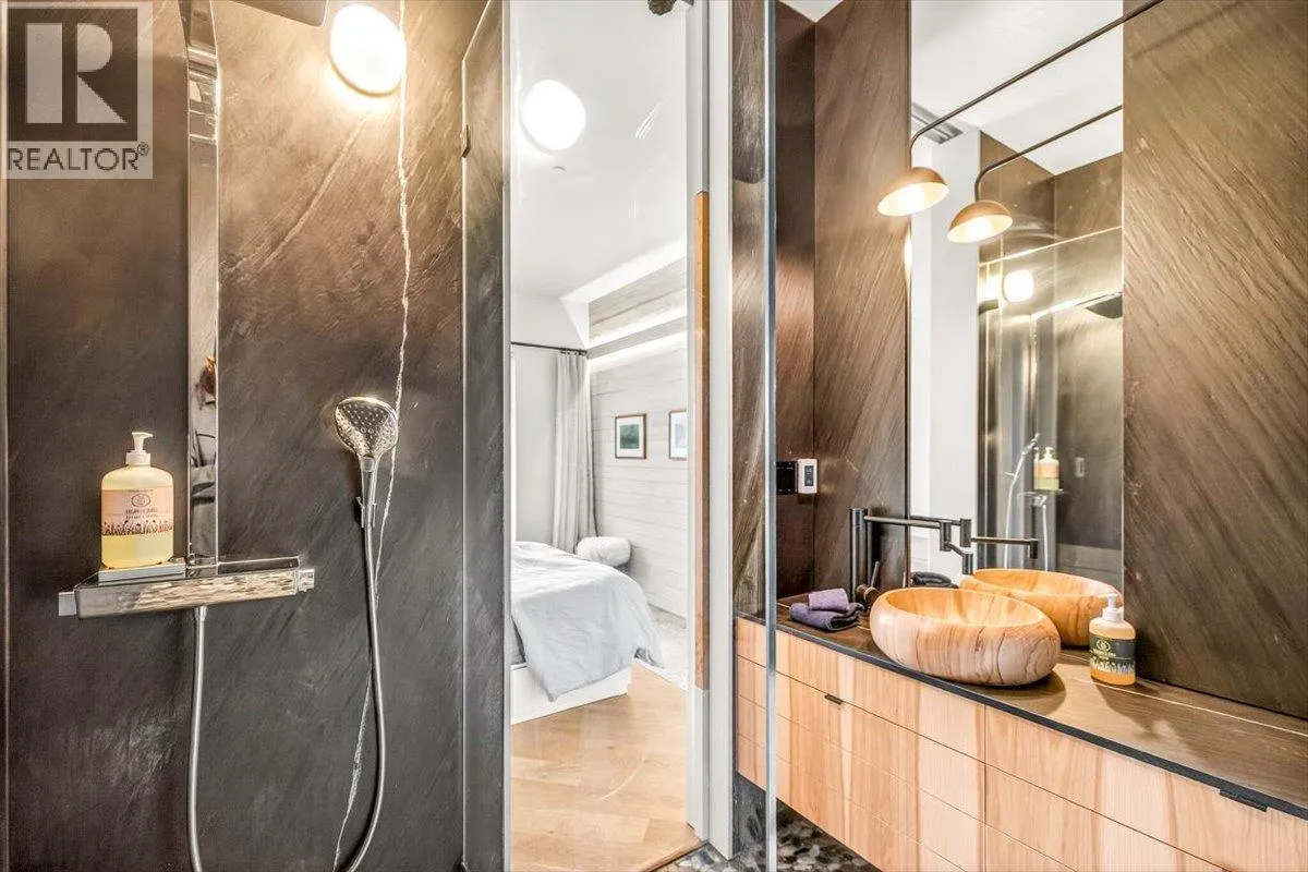 An unparalleled renovated urban-vibe unit within the coveted Snow Creek Lodge at Fernie Alpine Resortârare true ski-in/ski-out location, perfectly positioned overlooking the slopes. This 2-bedroom, 2-bath residence was completely gutted, reconfigured, and rebuilt to the highest standards. The ceiling was slightly lowered to incorporate advanced soundproofing from above, yet still provides a 9.5â ceiling height. Interior highlights include wide-plank oak flooring, custom hickory cabinetry, elegant curved walls and refined, custom design elements throughout. The dream kitchen features hidden Miele appliances, copper countertops and sink. Thoughtful hidden storage through out this unit is a welcome surprise. The primary suite is privately situated with custom built-ins, a cowhide headboard, and a spa-like ensuite boasting heated stone floors, petrified wood sink, Duravit toilet, and HansGrohe fixtures. The second bedroom offers flexible sleeping arrangements, with a cleverly designed nook perfect for children or guests, separated by custom barn doors. The second bath mirrors the same elevated finishes. Sold fully furnished, showcasing curated designer furnishings. Exceptional as a private retreat or investment, with no Airbnb restrictions. Excellent historical rental revenues. Complex amenities include secure entry, heated parkade, outdoor heated pool, hot tubs, BBQ area, and a welcoming indoor lounge with a stunning fireplace. A rare opportunity for the discerning buyer. (id:27476)