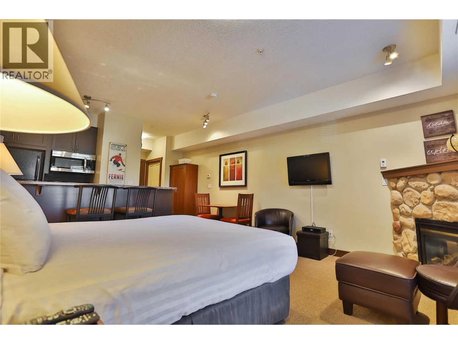 Comfortable, well-appointed studio condo at Silver Rock Condos offering approximately 400 sq ft of efficient living space. The unit features a full kitchen with stove, dishwasher, and refrigerator, a private balcony, and a 4-piece bathroom. Large windows showcase stunning views of Fernie Alpine Resort and the Elk Valley. Residents enjoy on-site amenities including an indoor pool, hot tub, fitness room, and heated underground parking, all just minutes from the ski hill and downtown Fernie. (id:27476)