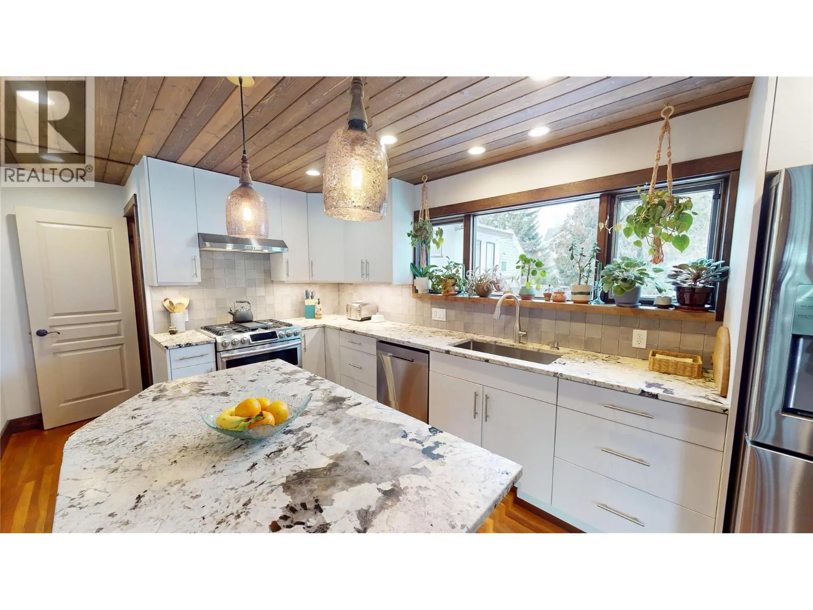 Discover mountain-modern living in this beautifully updated home, offered for the first time on the market & perfectly situated downtown close to amenities, river, trails & Rotary Park. Designed for comfort, style, and flexibility, the home features two bedrooms with the potential to convert to a third bedroom, a lofted area, and 2.5 bathrooms, ideal for full-time living, guests, and a work-from-home lifestyle! Fully refreshed, the home includes a new furnace, air conditioning, and hot water tank, offering peace of mind and energy efficiency. The kitchen showcases custom cabinetry, granite countertops, and an island with bar seating, creating a space for casual dining & entertaining. Vaulted ceilings upstairs, exposed timbers, warm wood trim, and rich solid wood flooring create an inviting mountain aesthetic, while a cozy gas fireplace anchors the living space. Thoughtful soundproofing between floors enhances privacy throughout. Retreat to the homeâs spa bathroom, featuring custom tile shower, a luxurious infrared cedar sauna, and an inviting freestanding soaker tub - your own private wellness escape. Outdoor living shines with two south-facing decks, with triple glazed windows, to enjoy the sun and mountain air year-round. Added convenience of three parking spaces, a rare find in a downtown setting. Blending modern upgrades with timeless mountain character, this move-in-ready property offers exceptional value as a primary residence or mountain retreat! (id:27476)