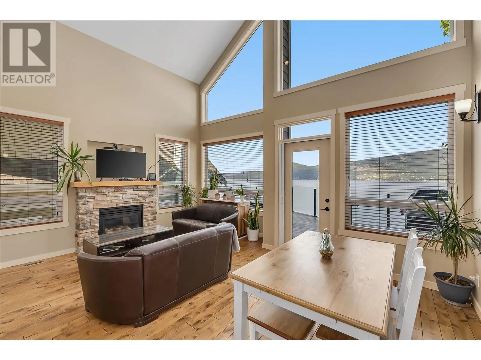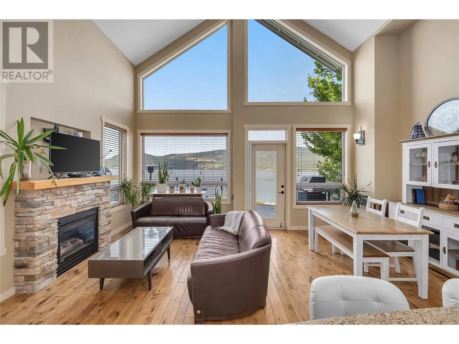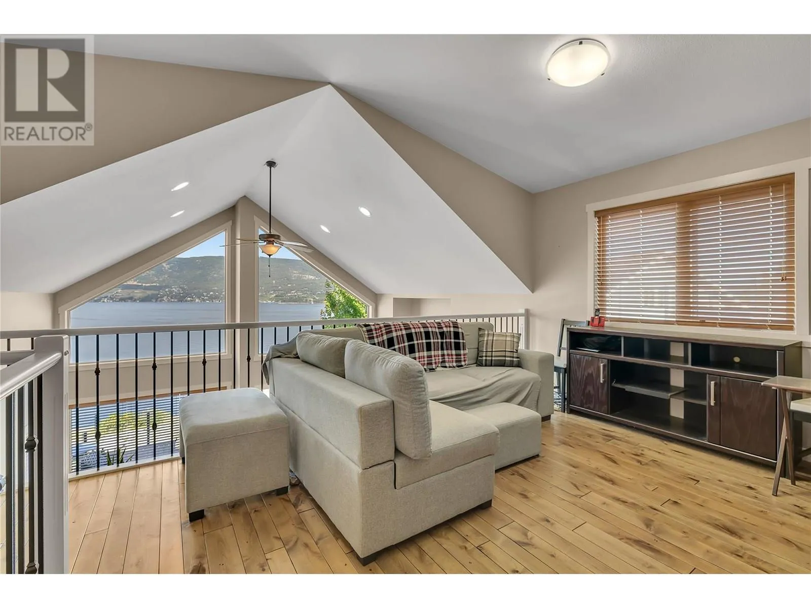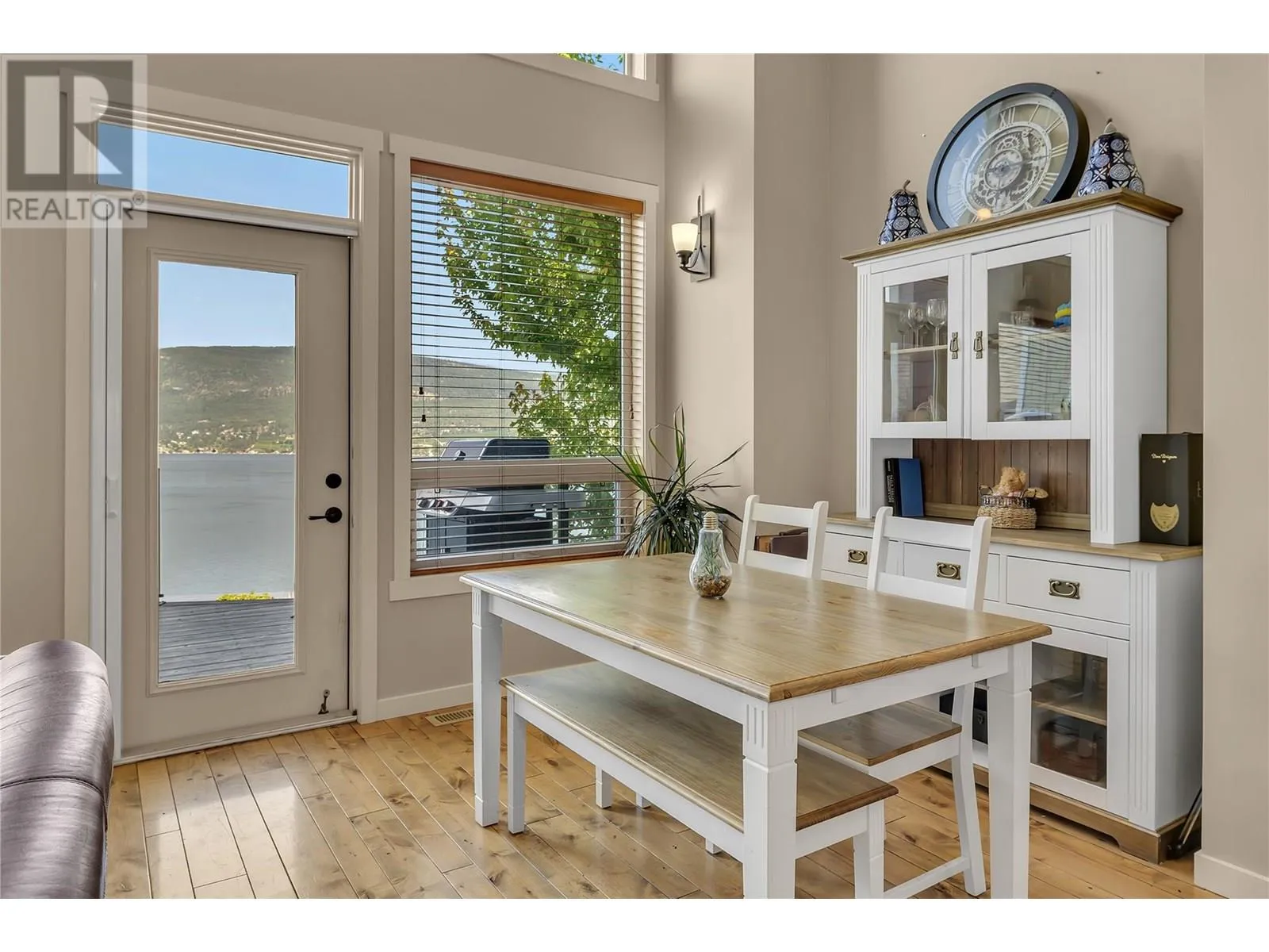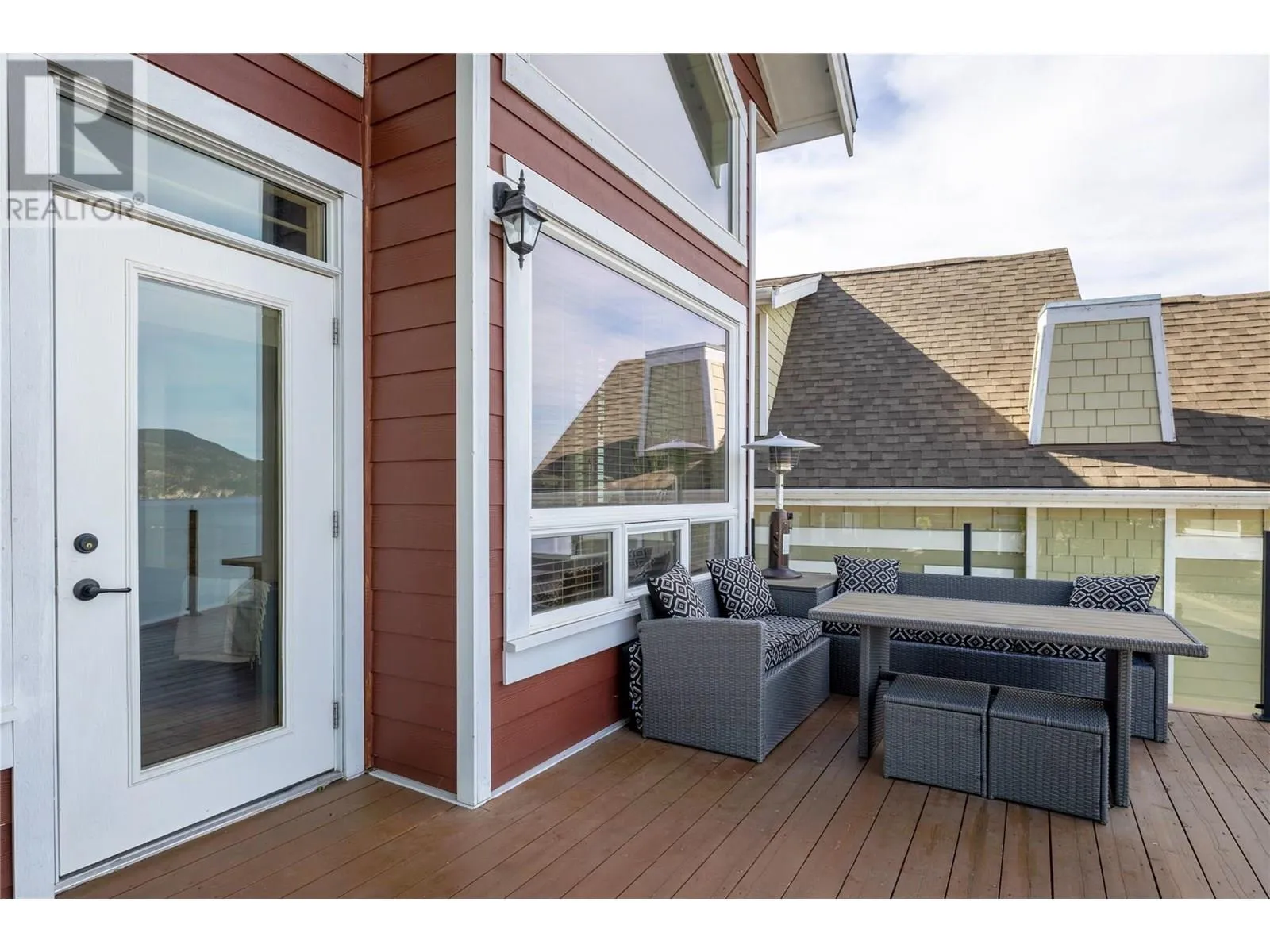 This unobstructed lakeview home boasts an ideal location close to the marina and beach, and a serene garden with a koi pond in the backyard as a private oasis in this lively community. La Casa Lakeside Cottage Resort boasts a colorful community of charming properties and an abundance of amenities. Inside, an open-concept layout with hardwood floor and vaulted ceilings and floor to ceiling windows. A generously sized kitchen with wood cabinetry and large peninsula with breakfast bar overlooks breathtaking Okanagan Lake views. The dining and living areas contain expansive windows and a handsome stone-faced fireplace. Two bedrooms are split between two levels, along with a den/loft area and two well-appointed full bathrooms accompany them. La Casa Lakeside Cottage Resort is a family paradise located on the west side of Okanagan Lake, where itâs easy to escape the cares of the outside world with a variety of activities from the activity park with pool, hot tubs, tennis and volleyball courts, playground, mini-putt course, marina, boat launch, community fire pits, and beach with suntan decks and aqua parks. (id:27476)