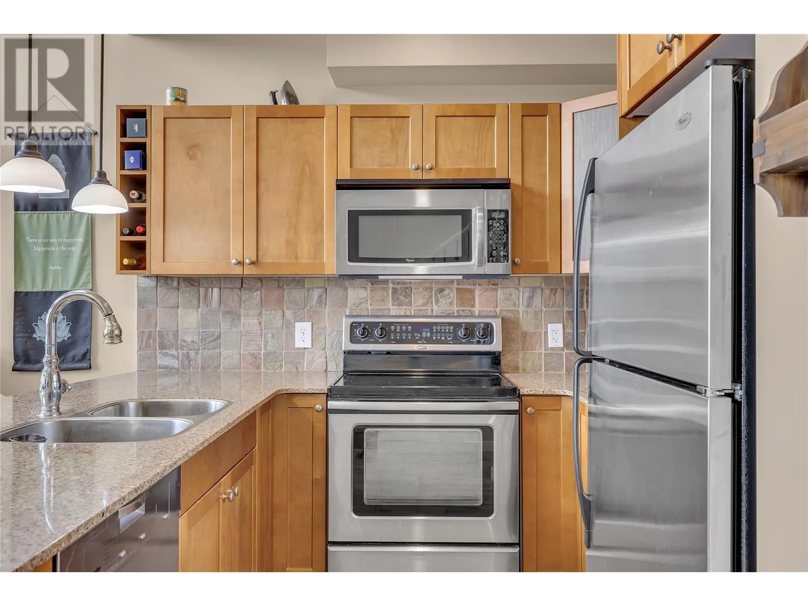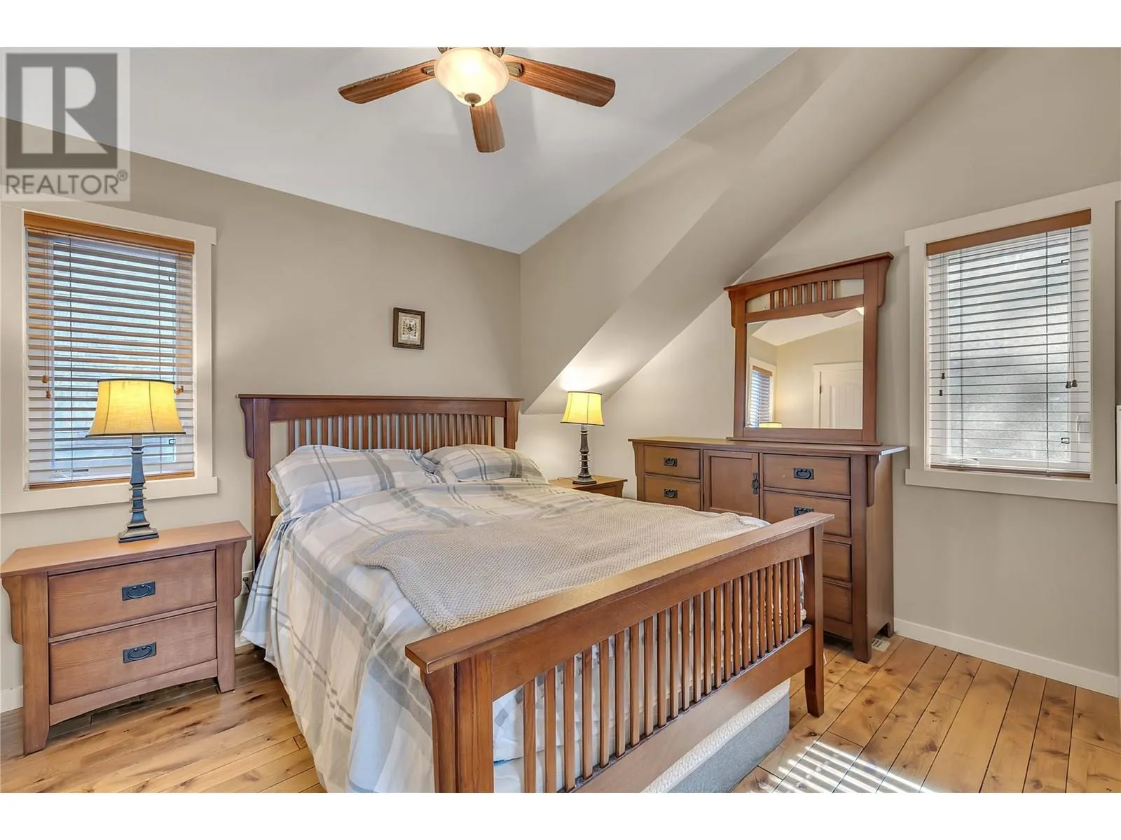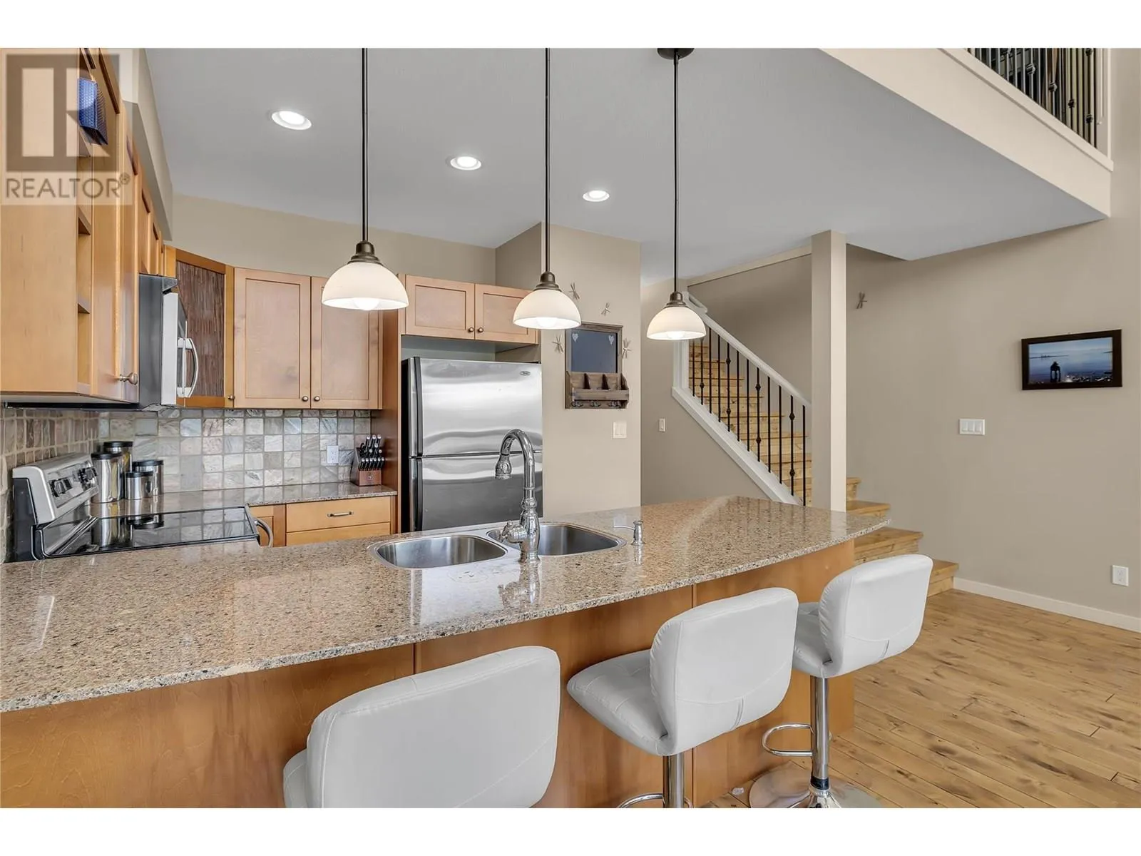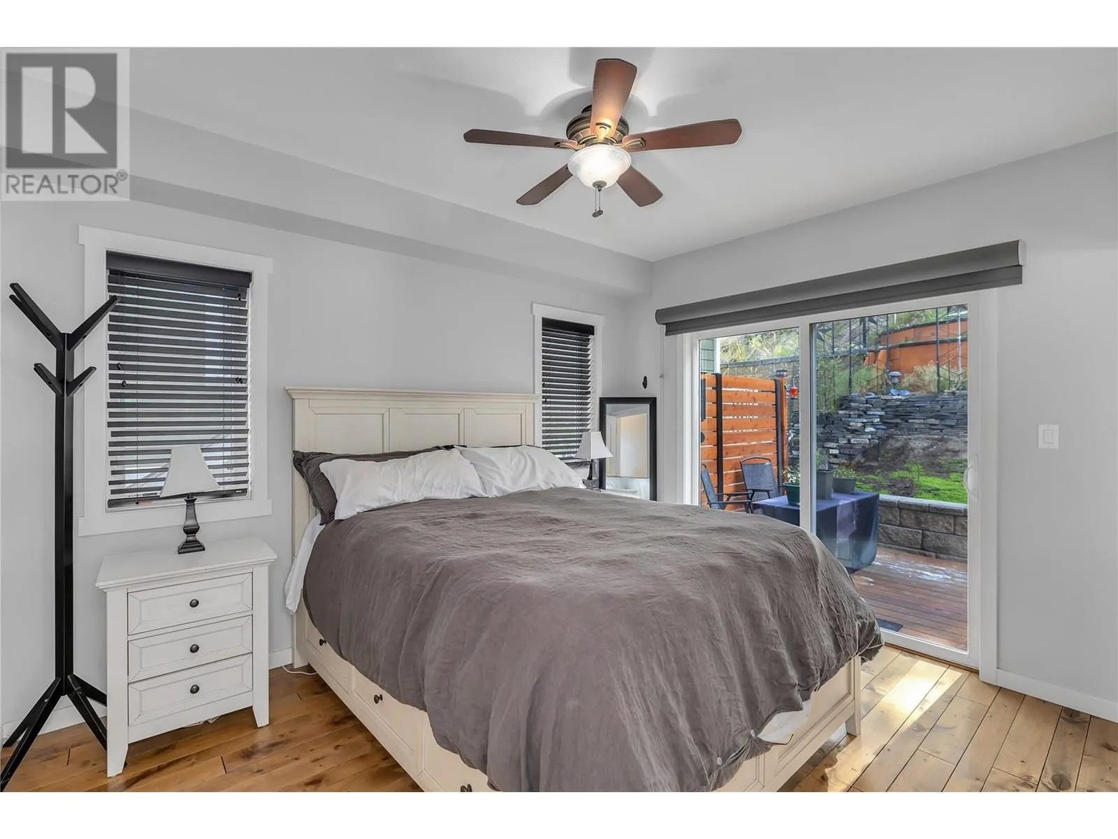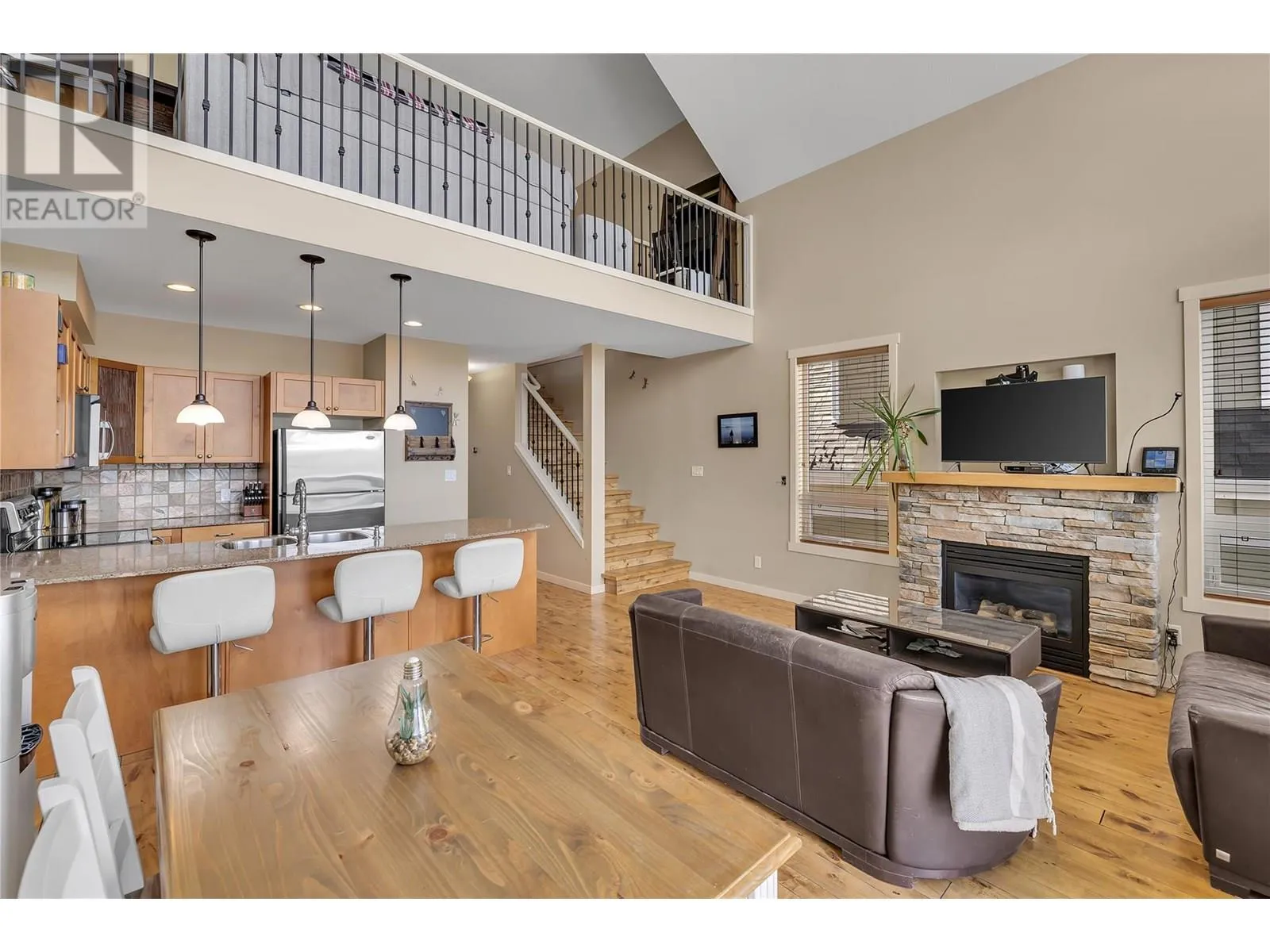 This unobstructed lakeview home boasts an ideal location close to the marina and beach, and a serene garden with a koi pond in the backyard as a private oasis in this lively community. La Casa Lakeside Cottage Resort boasts a colorful community of charming properties and an abundance of amenities. Inside, an open-concept layout with hardwood floor and vaulted ceilings and floor to ceiling windows. A generously sized kitchen with wood cabinetry and large peninsula with breakfast bar overlooks breathtaking Okanagan Lake views. The dining and living areas contain expansive windows and a handsome stone-faced fireplace. Two bedrooms are split between two levels, along with a den/loft area and two well-appointed full bathrooms accompany them. La Casa Lakeside Cottage Resort is a family paradise located on the west side of Okanagan Lake, where itâs easy to escape the cares of the outside world with a variety of activities from the activity park with pool, hot tubs, tennis and volleyball courts, playground, mini-putt course, marina, boat launch, community fire pits, and beach with suntan decks and aqua parks. (id:27476)