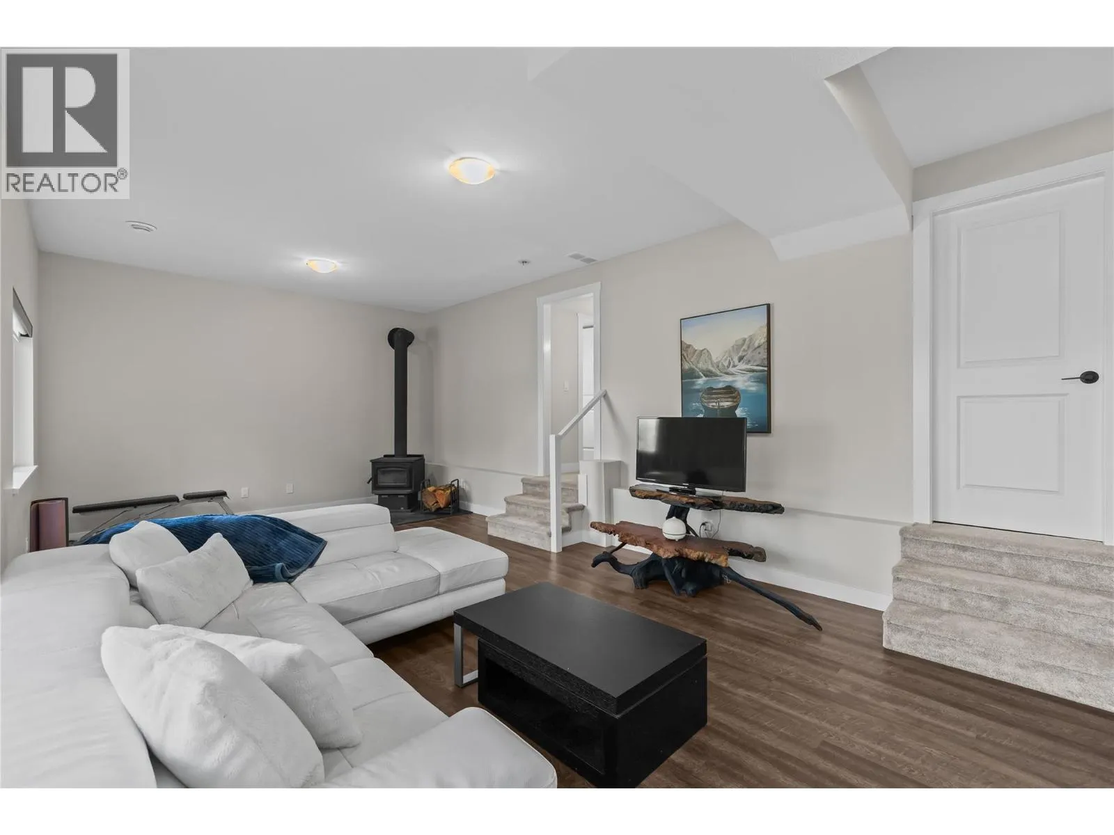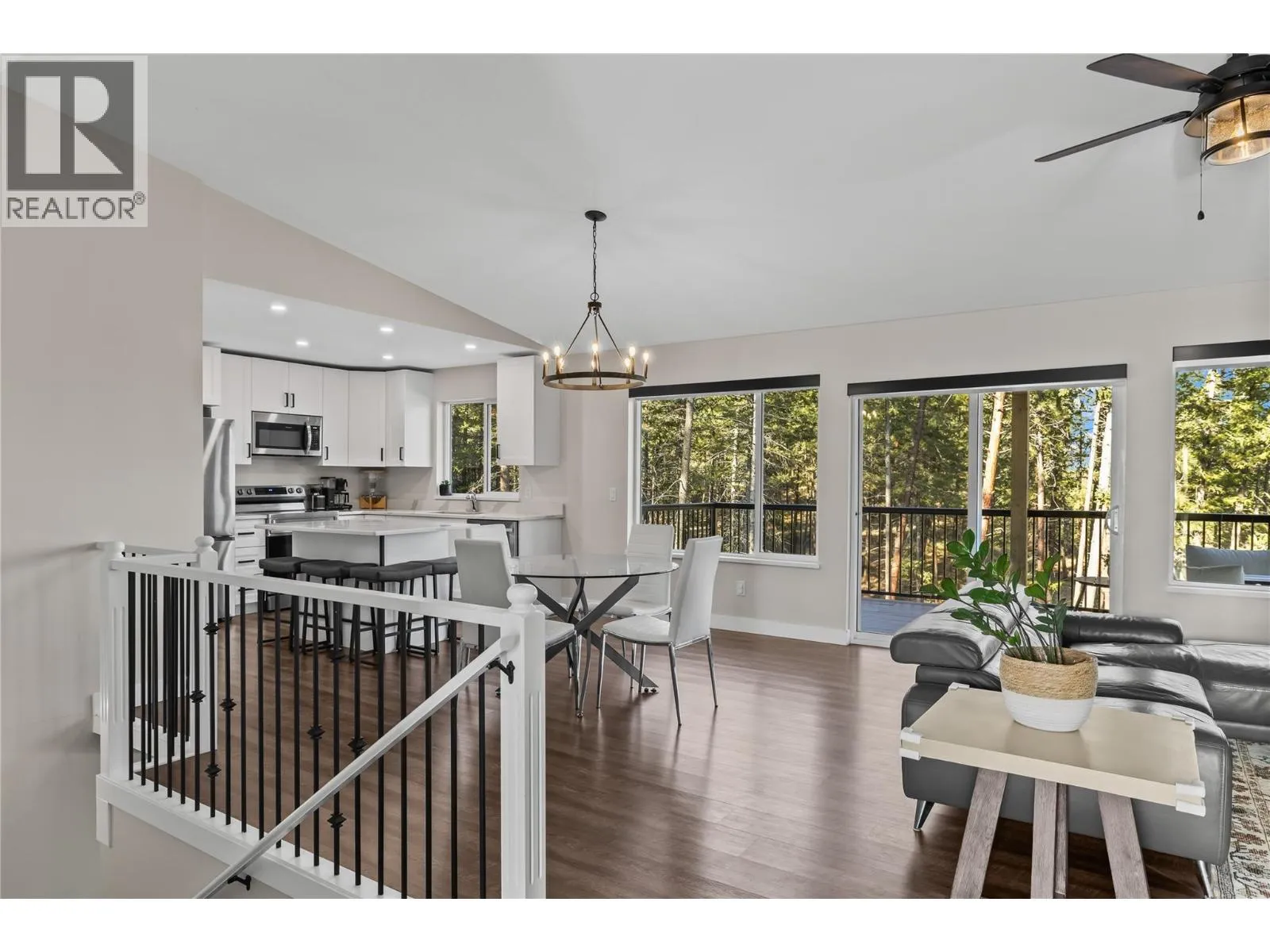 Newer home in the heart of beautiful and peaceful Fintry! The main floor offers an open and inviting layout, highlighted by a contemporary kitchen with white shaker cabinets, quartz countertops, and ample space for entertaining. The living area features soaring vaulted ceilings and expansive windows that fill the home with natural light. The primary suite provides a peaceful retreat complete with a private ensuite and a spacious walk-in closet. Step out onto the balcony to enjoy your morning coffee while taking in peek a boo views of the lake. A second bedroom upstairs and bathroom provide comfortable accommodations for guests or the perfect setup for a home office. The fully finished basement includes two additional bedrooms, a full bathroom, and generous storage space. Additional conveniences include a dedicated laundry area, extra storage, and a double-car garage. Built with exceptional craftsmanship and high-quality finishes, this home is designed for lasting comfort. Located in the welcoming community of Fintry, residents can enjoy an abundance of outdoor activities such as hiking, biking, swimming, and boating. The BRAND NEW WOOD STOVE provides comfortable and cheap heat! (id:27476)