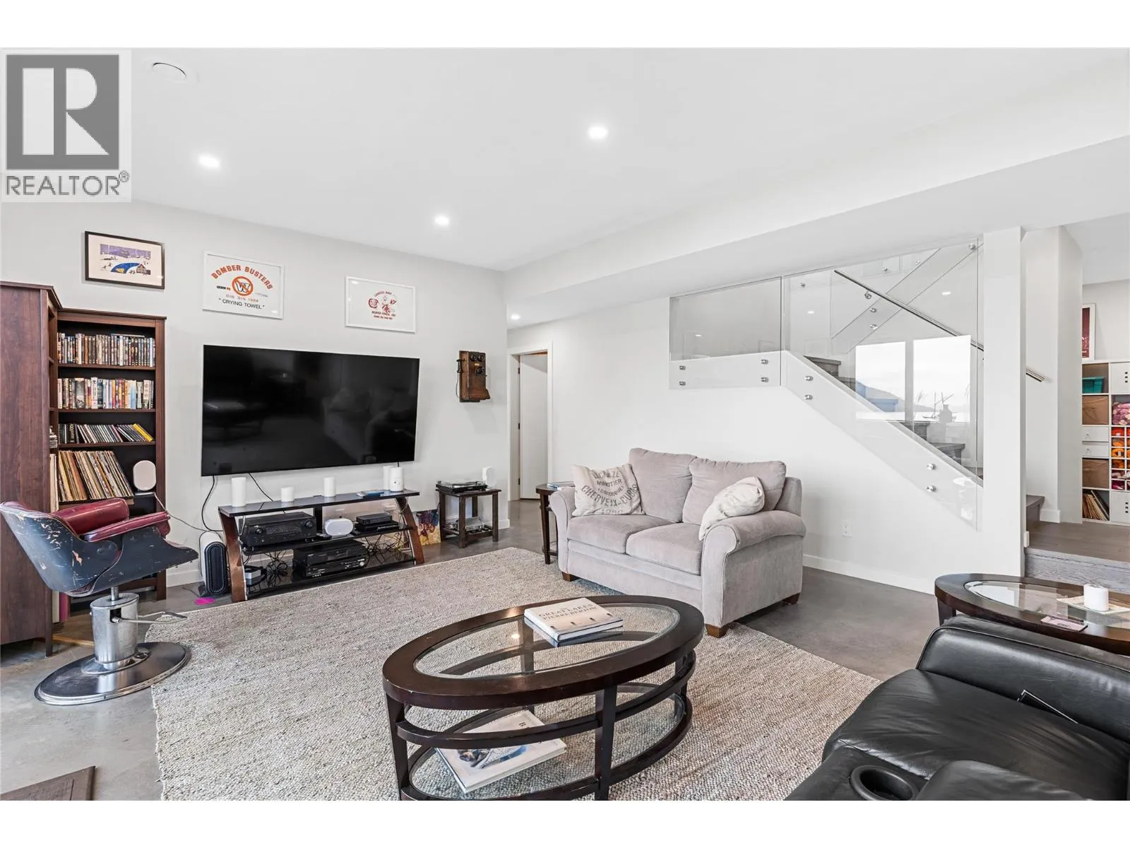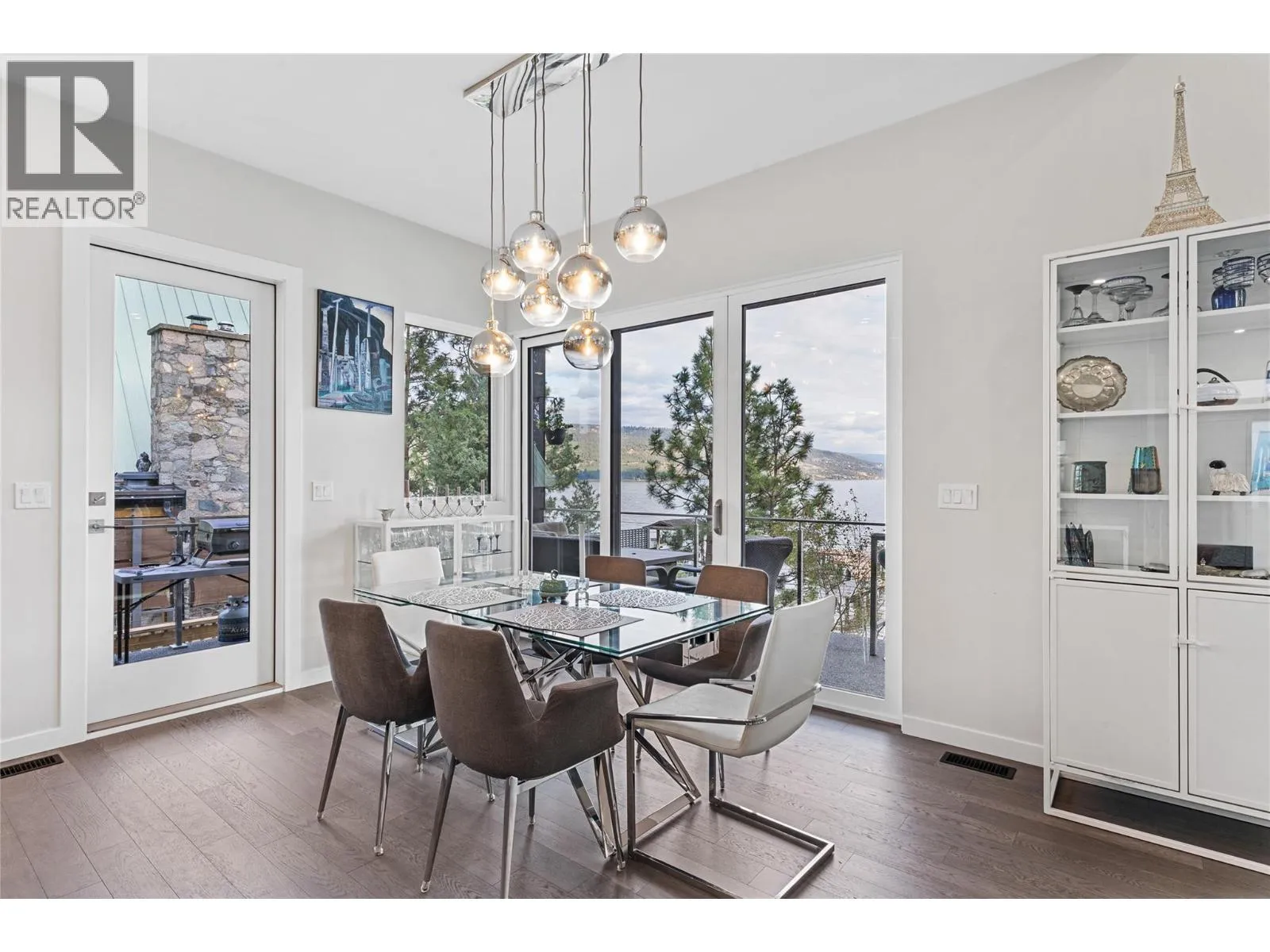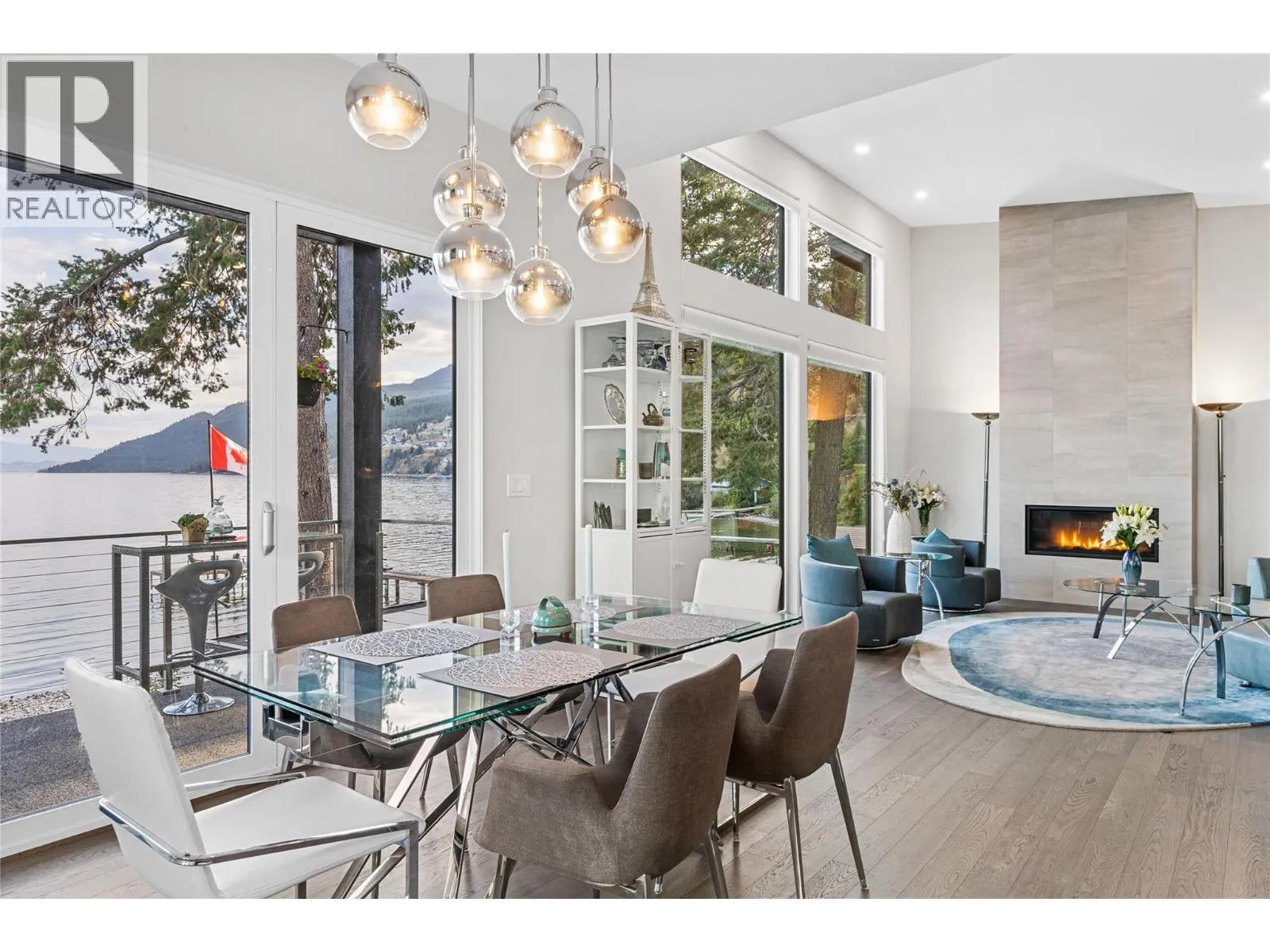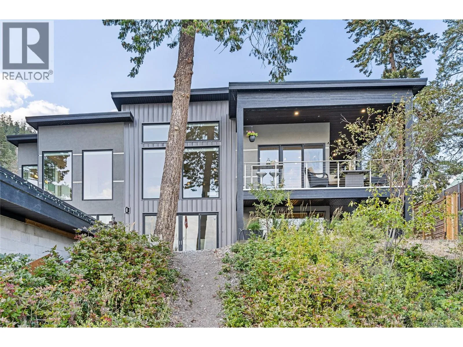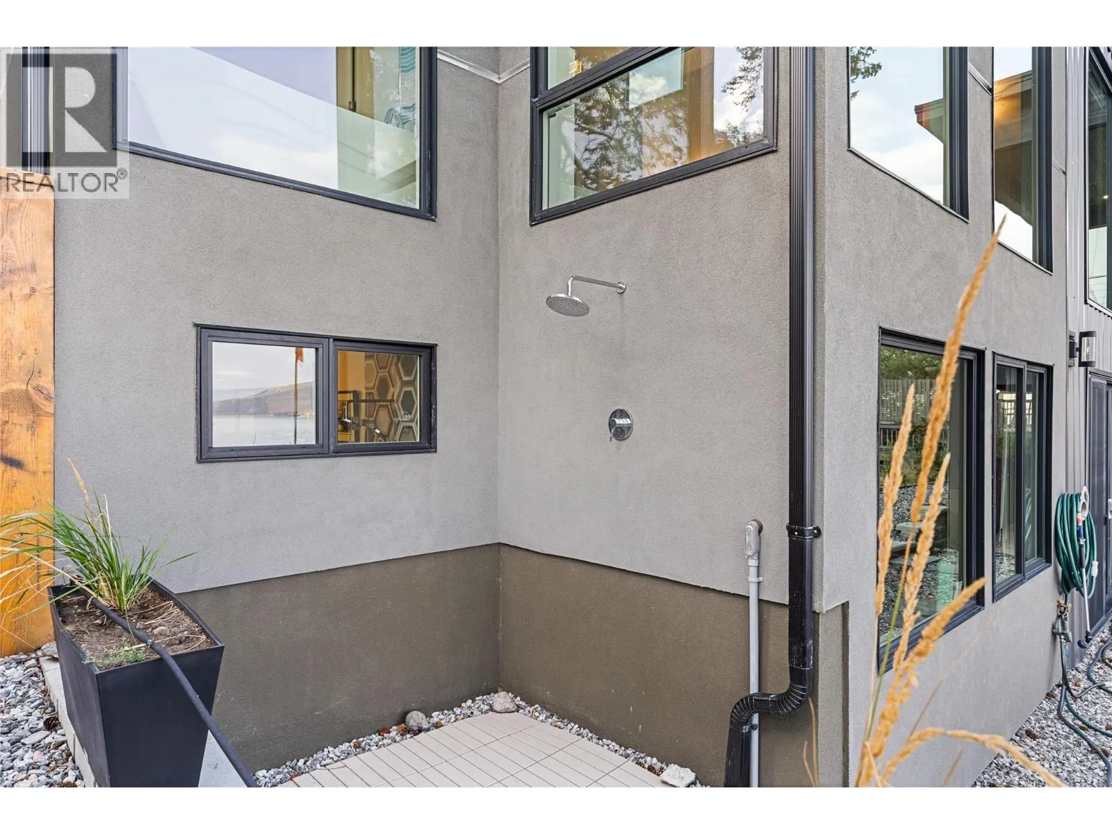 Experience the best of Okanagan lakefront living in this custom-built 4-bedroom, 3-bathroom, 2,755 sq. ft. walkout rancher on a flat lot with prime shoreline & breathtaking panoramic views. Inside, 14â ceilings and expansive windows flood the open concept living space with natural light, while the elegant kitchen seamlessly connects to the dining and living areas, all with stunning lake views. The main-level primary bedroom is a true retreat, featuring a spa-like ensuite with heated floors, a freestanding tub, oversized shower, heated towel bar, walk-in California Closet, and direct access to the laundry room. The lower level offers polished concrete floors, a spacious family room, 3 additional bedrooms, a full bathroom, and a versatile space beneath the suspended slab ready to be transformed into a theatre room or gym. A triple-car garage/workshop provides ample storage and workspace for hobbyists or outdoor gear. Outdoors, enjoy a 140-foot dock with a 6,000 lb solar-powered Paradise boat lift, expansive beach, firepit, covered deck with hot tub, and a heated outdoor shower. The lakeside boathouse, currently used for storage, includes 40-amp service and is ready to be reimagined as a shaded entertaining space or lakeside bar. Modern comforts include fibre optic internet, propane service, and full smart home features for security and convenience. Located outside the speculation tax zone, this home offers the perfect blend of year-round living or a luxury summer getaway. (id:27476)