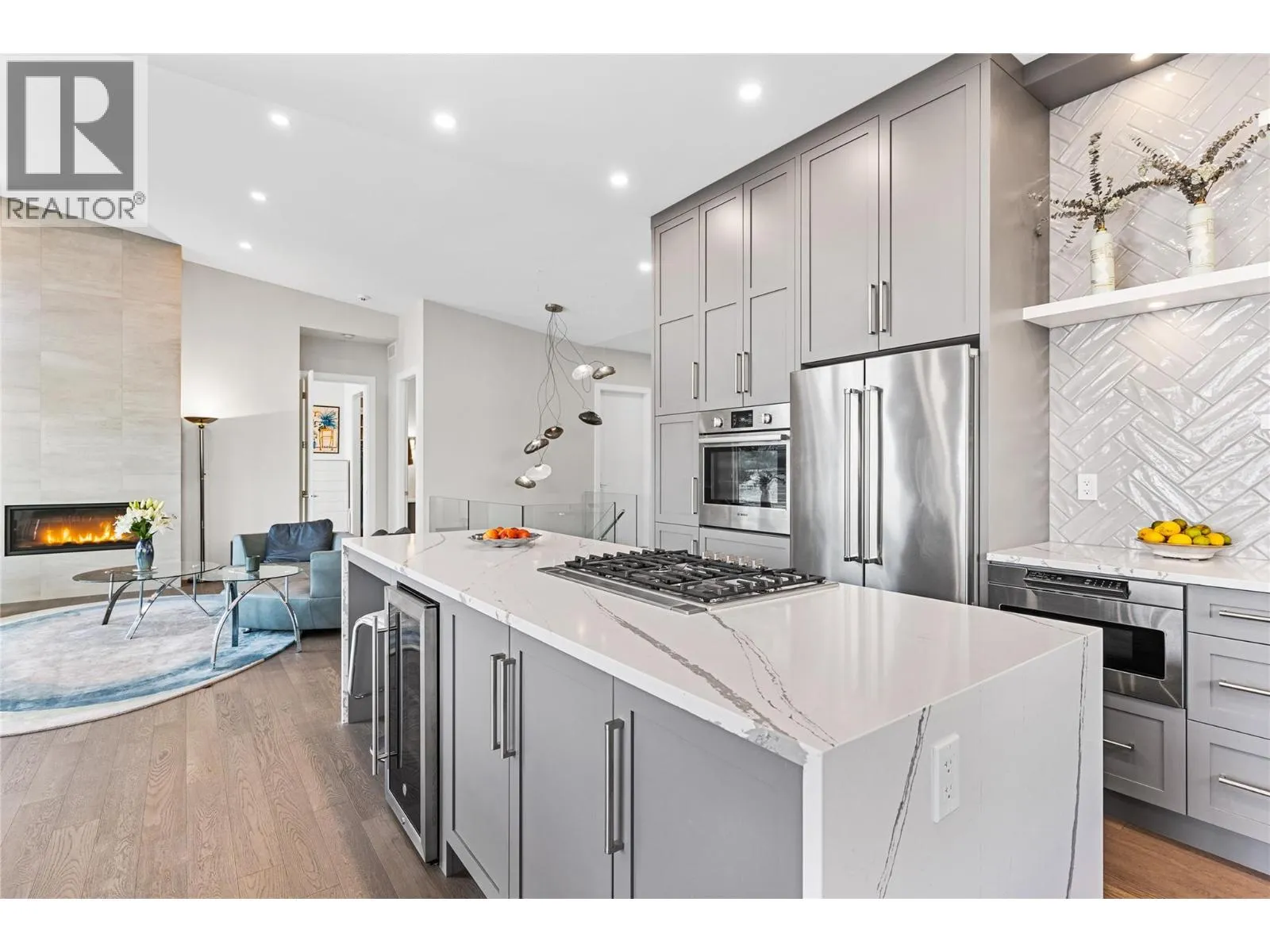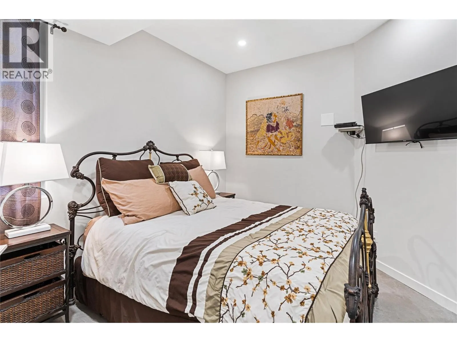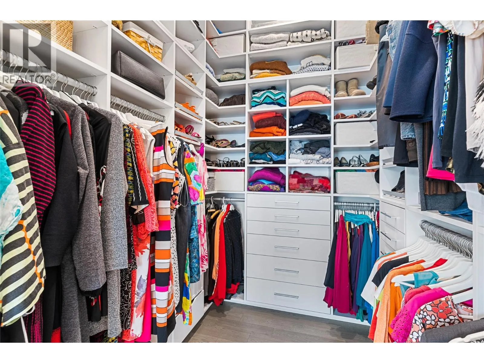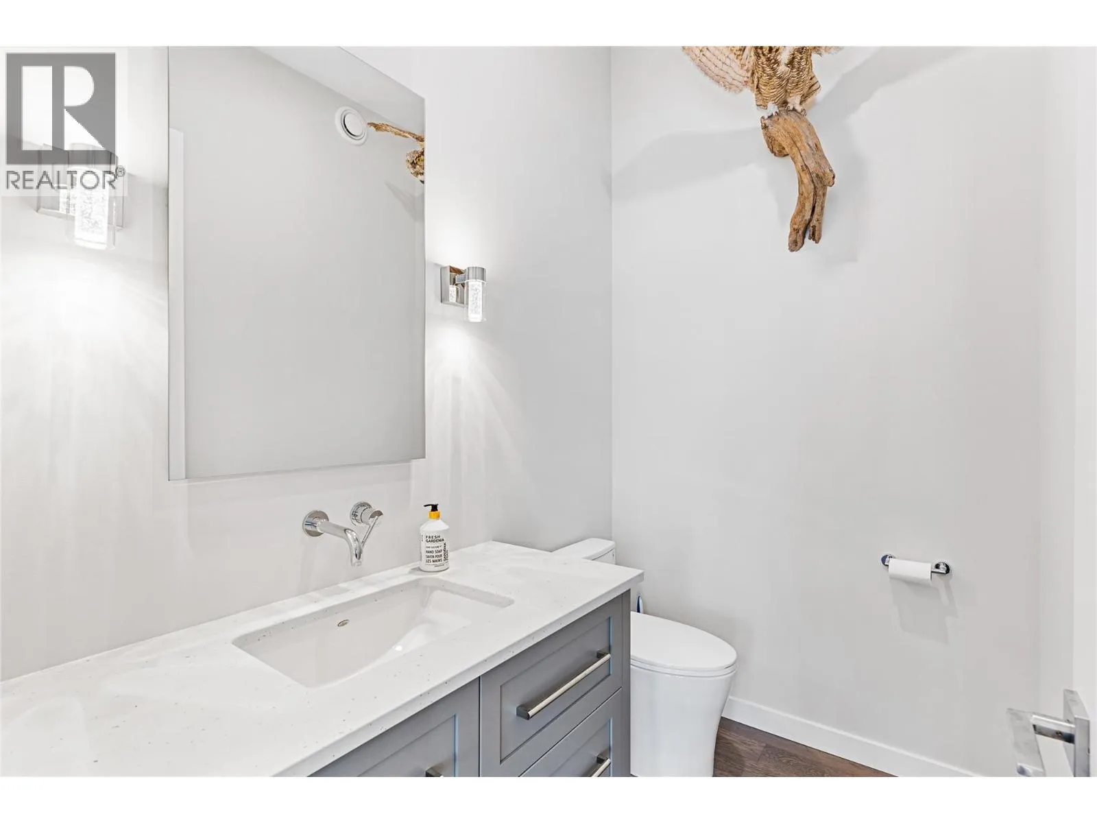 Experience the best of Okanagan lakefront living in this custom-built 4-bedroom, 3-bathroom, 2,755 sq. ft. walkout rancher on a flat lot with prime shoreline & breathtaking panoramic views. Inside, 14â ceilings and expansive windows flood the open concept living space with natural light, while the elegant kitchen seamlessly connects to the dining and living areas, all with stunning lake views. The main-level primary bedroom is a true retreat, featuring a spa-like ensuite with heated floors, a freestanding tub, oversized shower, heated towel bar, walk-in California Closet, and direct access to the laundry room. The lower level offers polished concrete floors, a spacious family room, 3 additional bedrooms, a full bathroom, and a versatile space beneath the suspended slab ready to be transformed into a theatre room or gym. A triple-car garage/workshop provides ample storage and workspace for hobbyists or outdoor gear. Outdoors, enjoy a 140-foot dock with a 6,000 lb solar-powered Paradise boat lift, expansive beach, firepit, covered deck with hot tub, and a heated outdoor shower. The lakeside boathouse, currently used for storage, includes 40-amp service and is ready to be reimagined as a shaded entertaining space or lakeside bar. Modern comforts include fibre optic internet, propane service, and full smart home features for security and convenience. Located outside the speculation tax zone, this home offers the perfect blend of year-round living or a luxury summer getaway. (id:27476)