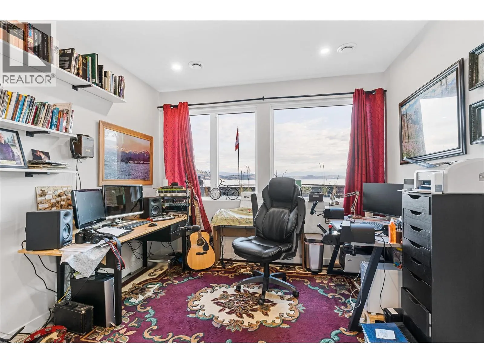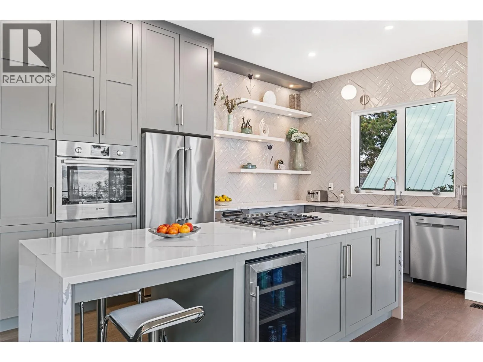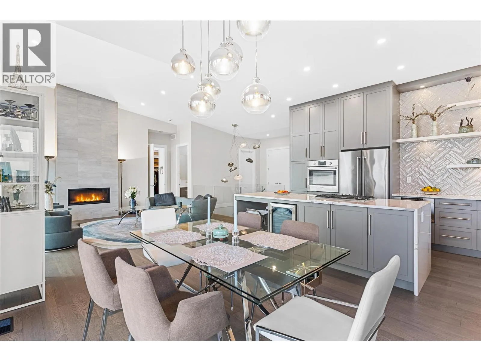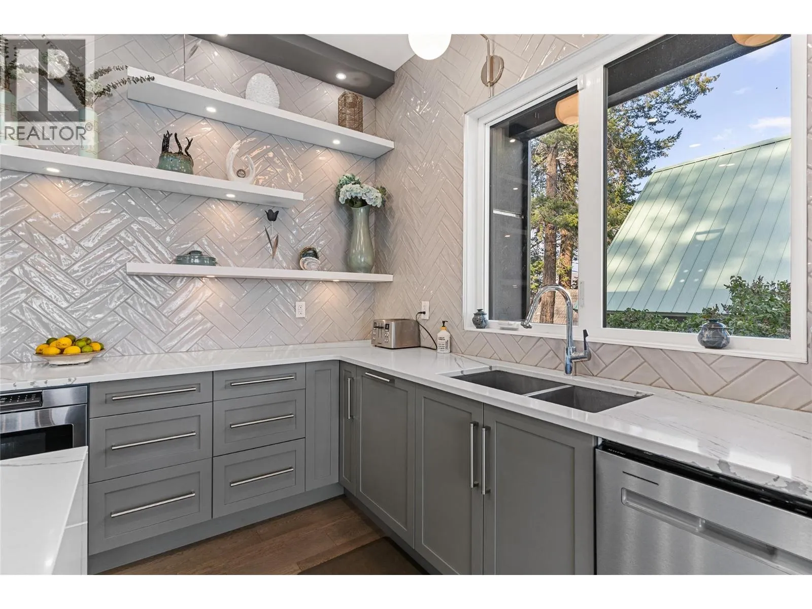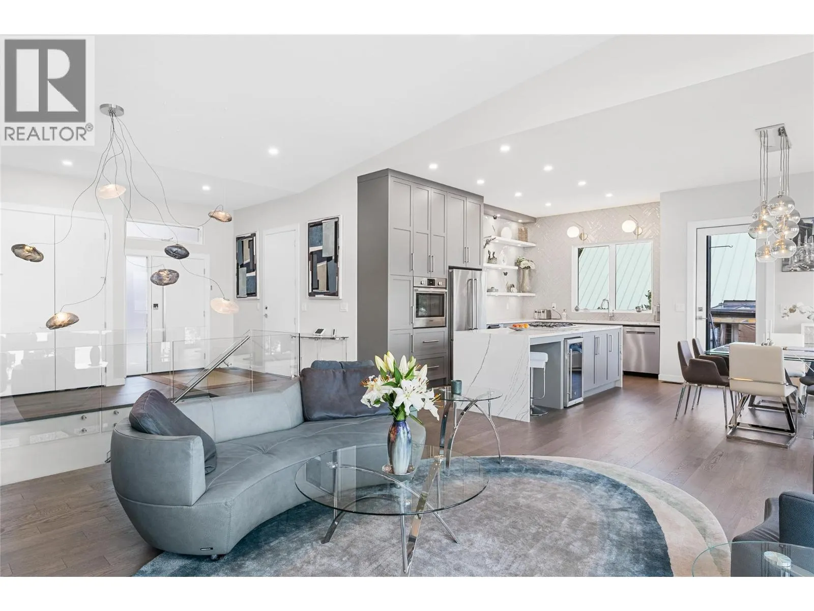 Experience the best of Okanagan lakefront living in this custom-built 4-bedroom, 3-bathroom, 2,755 sq. ft. walkout rancher on a flat lot with prime shoreline & breathtaking panoramic views. Inside, 14â ceilings and expansive windows flood the open concept living space with natural light, while the elegant kitchen seamlessly connects to the dining and living areas, all with stunning lake views. The main-level primary bedroom is a true retreat, featuring a spa-like ensuite with heated floors, a freestanding tub, oversized shower, heated towel bar, walk-in California Closet, and direct access to the laundry room. The lower level offers polished concrete floors, a spacious family room, 3 additional bedrooms, a full bathroom, and a versatile space beneath the suspended slab ready to be transformed into a theatre room or gym. A triple-car garage/workshop provides ample storage and workspace for hobbyists or outdoor gear. Outdoors, enjoy a 140-foot dock with a 6,000 lb solar-powered Paradise boat lift, expansive beach, firepit, covered deck with hot tub, and a heated outdoor shower. The lakeside boathouse, currently used for storage, includes 40-amp service and is ready to be reimagined as a shaded entertaining space or lakeside bar. Modern comforts include fibre optic internet, propane service, and full smart home features for security and convenience. Located outside the speculation tax zone, this home offers the perfect blend of year-round living or a luxury summer getaway. (id:27476)
