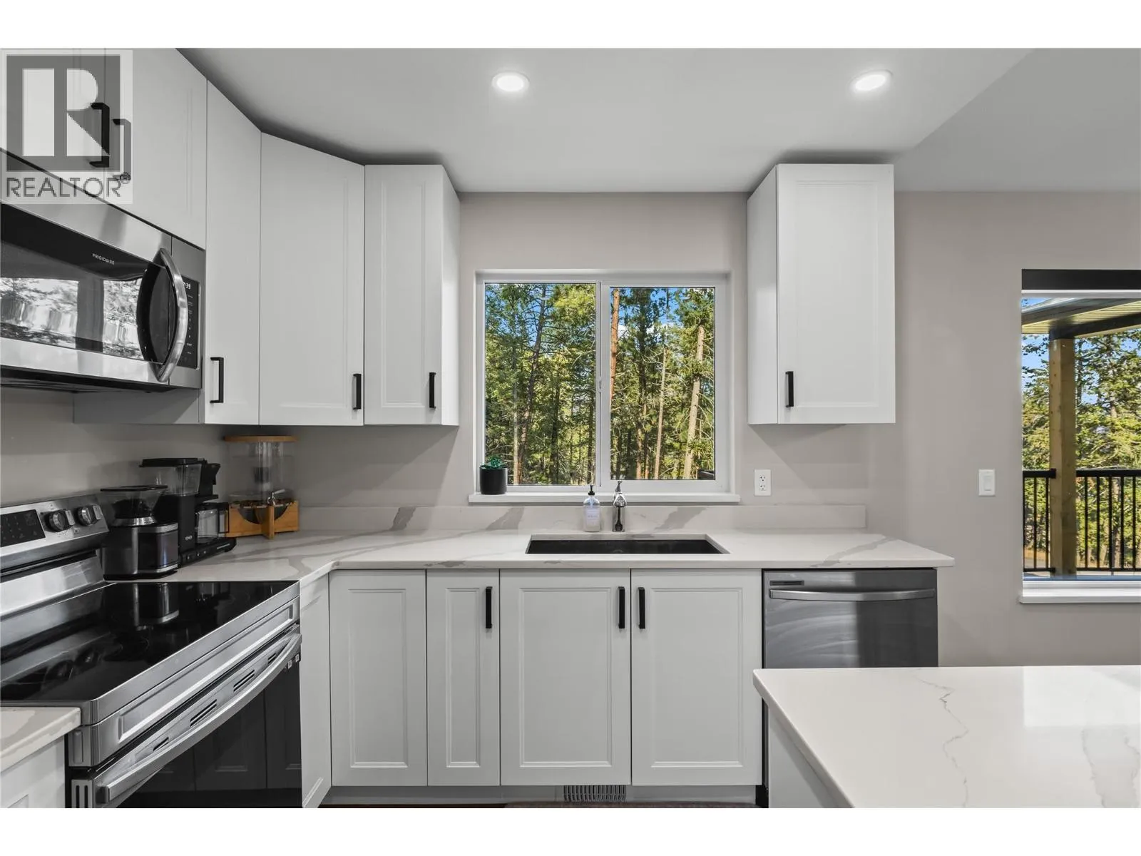 A rare opportunity to own a newly built home in one of the Okanagan's most desirable lakeside communities. The living room has vaulted ceilings and large windows that flood the space with natural light. Upstairs, the primary bedroom includes a private ensuite and walk-in closet. Step out onto the balcony and take in peekaboo lake views with your morning coffee. A second bedroom and full bathroom offer comfortable space for guests or a home office. The finished basement includes two additional bedrooms, a full bathroom, and generous storage â perfect for extended family or future suite potential. A dedicated laundry room and double car garage round out the package. The brand new wood stove keeps the home warm and heating costs low. Quality craftsmanship and finishes throughout â this home is built to last. Fintry is a unique community with endless outdoor recreation right at your doorstep: hiking, biking, swimming, and boating. School allocations for Fintry include Mar Jok Elementary, CNB Middle School, and MBSS High School in West Kelowna â all serviced by school bus with pickup and drop-off in the neighbourhood. (id:27476)