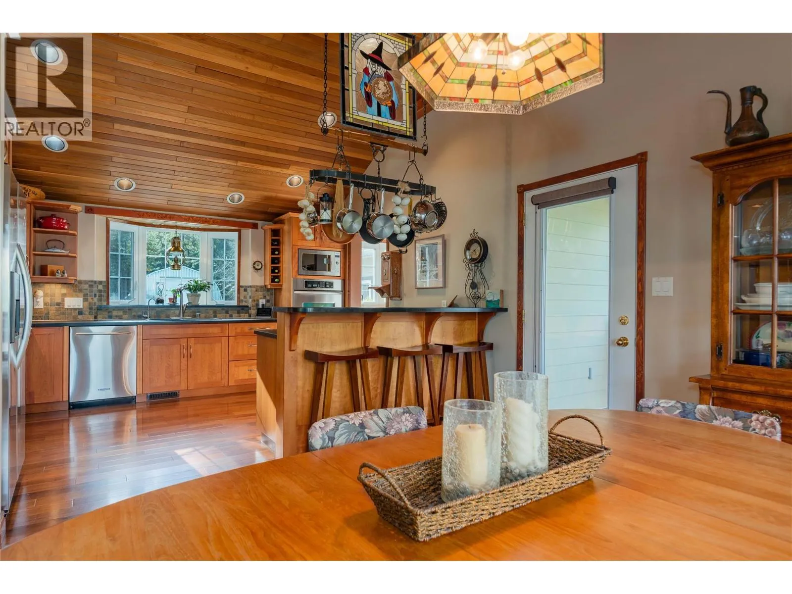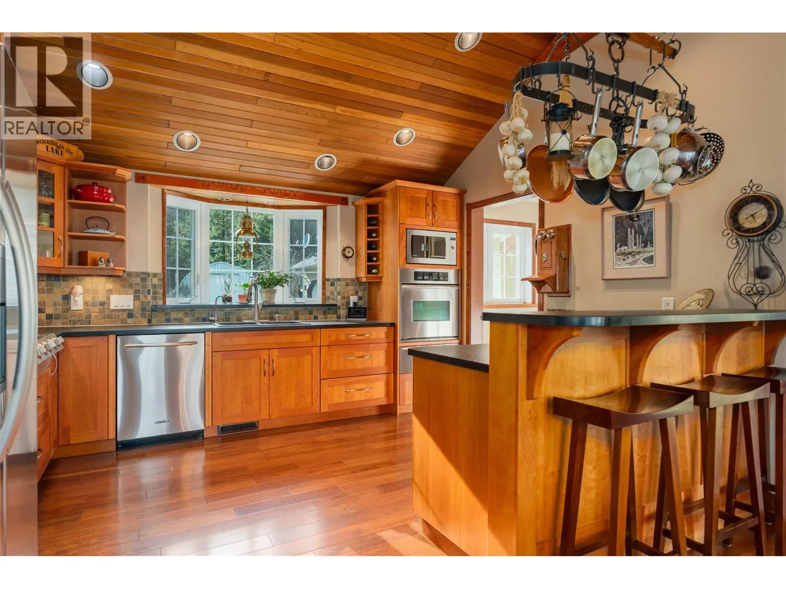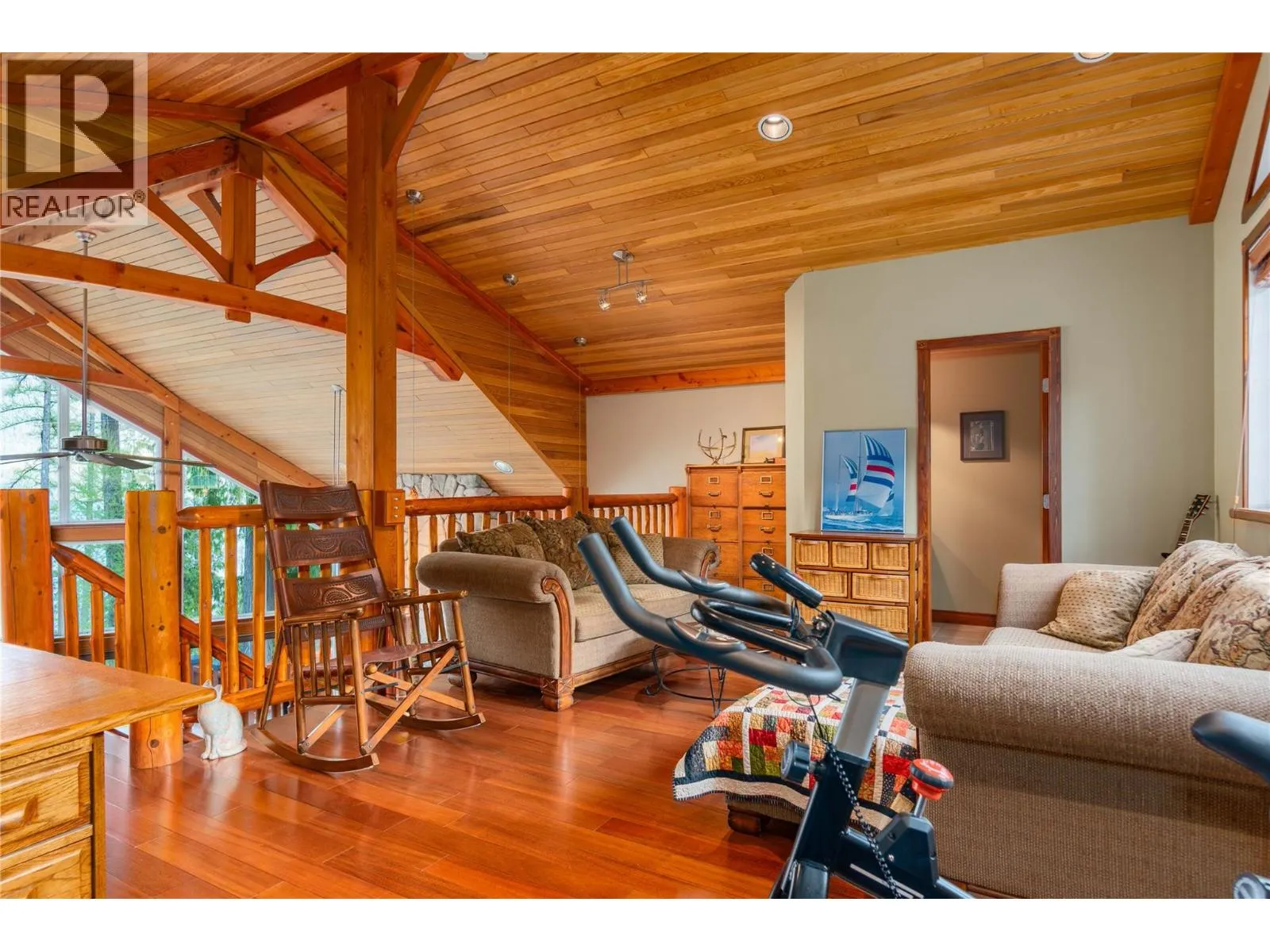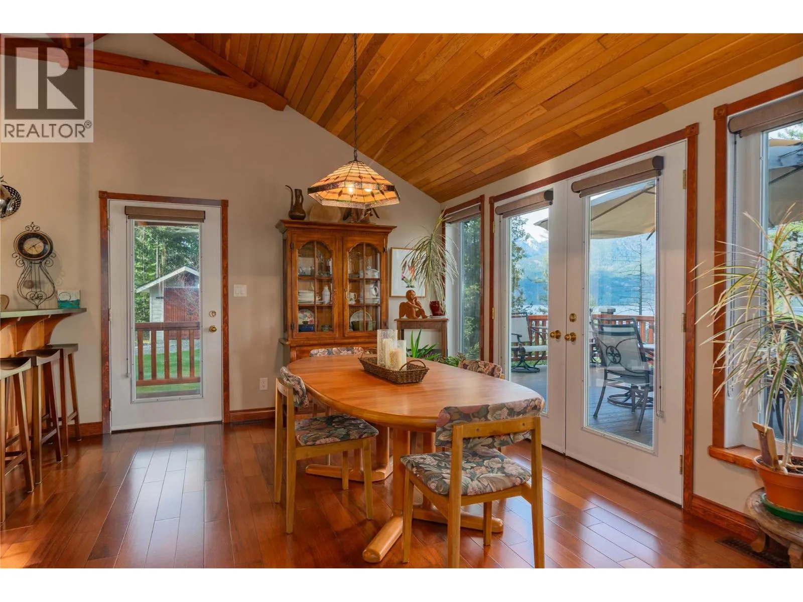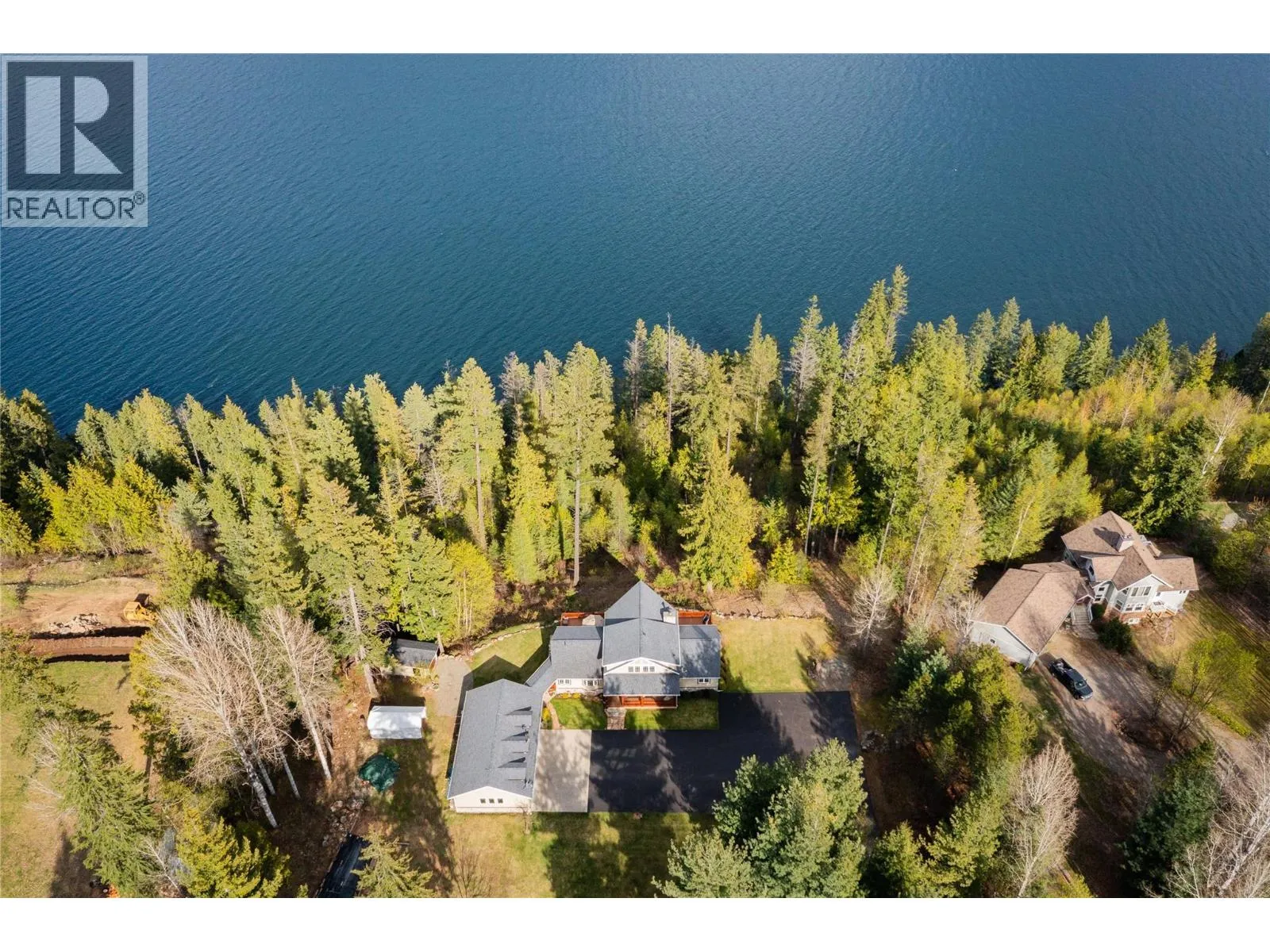 This stunning 6.03-acre waterfront estate offers an exceptional blend of luxury, privacy, and breathtaking views of Kootenay Lake and the Purcell Mountains. Thoughtfully designed to embrace its spectacular setting, the home features floor-to-ceiling windows that flood the interior with natural light and frame panoramic lake and mountain vistas. The main living area is anchored by a dramatic floor-to-ceiling wood-burning fireplace, creating a warm and inviting atmosphere year-round. The kitchen boasts abundant counter space, generous storage, and an eating bar, perfect for entertaining. Off the dining room, French doors open to a wraparound deck, offering stunning outdoor living and entertaining spaces. The main level includes a spacious bedroom, full bathroom, laundry and mudroom, and a luxurious primary suite with full ensuite and direct deck access. The upper level, currently used as an office and family room with a 2-piece bathroom, offers flexibility as a guest suite or additional primary retreat. The lower level provides expansive recreation and games rooms, ample storage, utility space, and an additional bathroom. Completing the property are beautifully landscaped grounds, a triple-car detached garage with workshop, and a large quonset ideal for recreational vehicles, boat or a motorhome. With recent updates including a new heat pump and hot water tank (2024), this exceptional waterfront home must be seen to be truly appreciated. (id:27476)