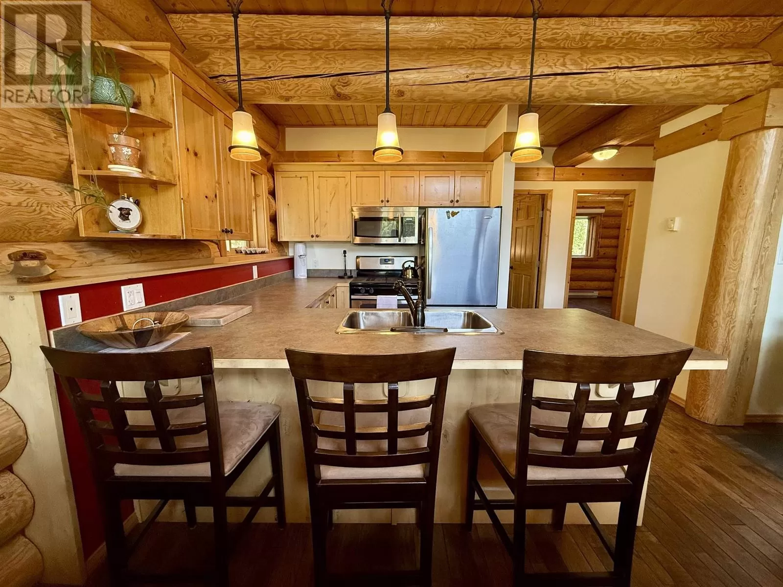 * PREC - Personal Real Estate Corporation. Waterfront log home on 10.75 private acres with RA2 zoning, allowing for a second dwelling. This well-kept 3-bed, 2-bath home offers beautiful views, excellent privacy, and direct access to a quiet stretch of the lake. A full dock system is in place. Ideal for boating, swimming, or simply relaxing by the water. The property includes a detached shop, greenhouse, and garden shed, offering space for storage, hobbies, or small-scale growing. With room to grow, the land allows flexibility for future development or recreation. The home is warm and inviting, with a layout suited for year-round living or weekend escapes. Surrounded by natural beauty and set back from neighbours, this is a great opportunity to enjoy true waterfront living with space, comfort, and the option to expand. A must see! (id:27476)