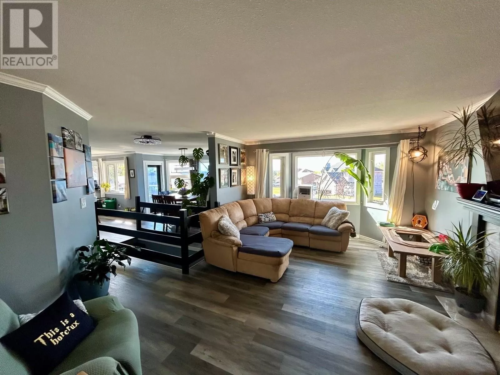 FAMILY FAVE!! Five bedrooms BIG with a panoramic view of the Muskwa Valley and Rocky Mountains! This rare hilltop beauty backs greenbelt and boasts more than 2,500 square foot of pure living as a basement entry home with an open concept kitchen with island, and dining with awesome front deck to enjoy morning coffee! The living room has a gas fireplace and sliding doors to the back deck with steps down to the fully fenced backyard. There are three full bathrooms, family room with yard access and double attached garage with a surprise attached workshop, extra parking and paving brick double driveway. Do NOT miss this rare opportunity! Check out the video! (id:27476)