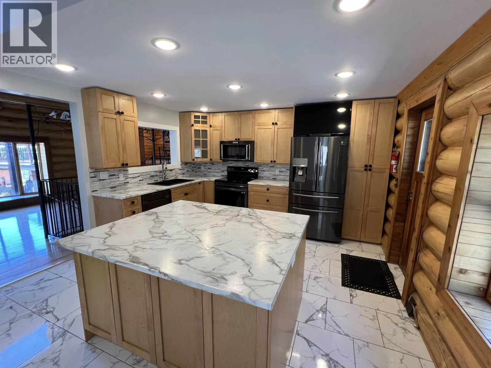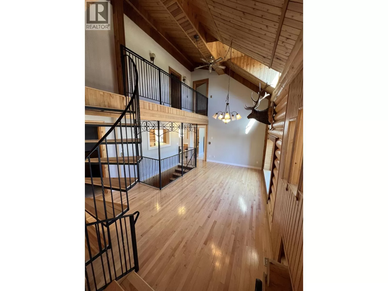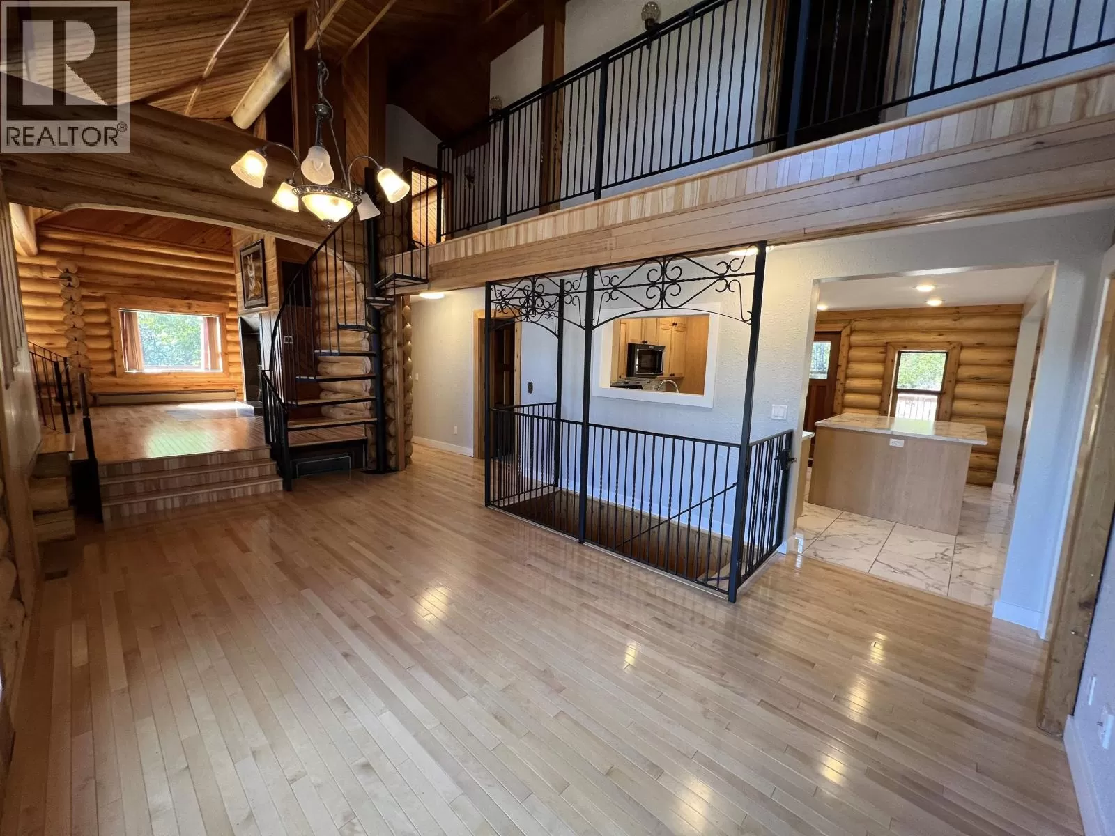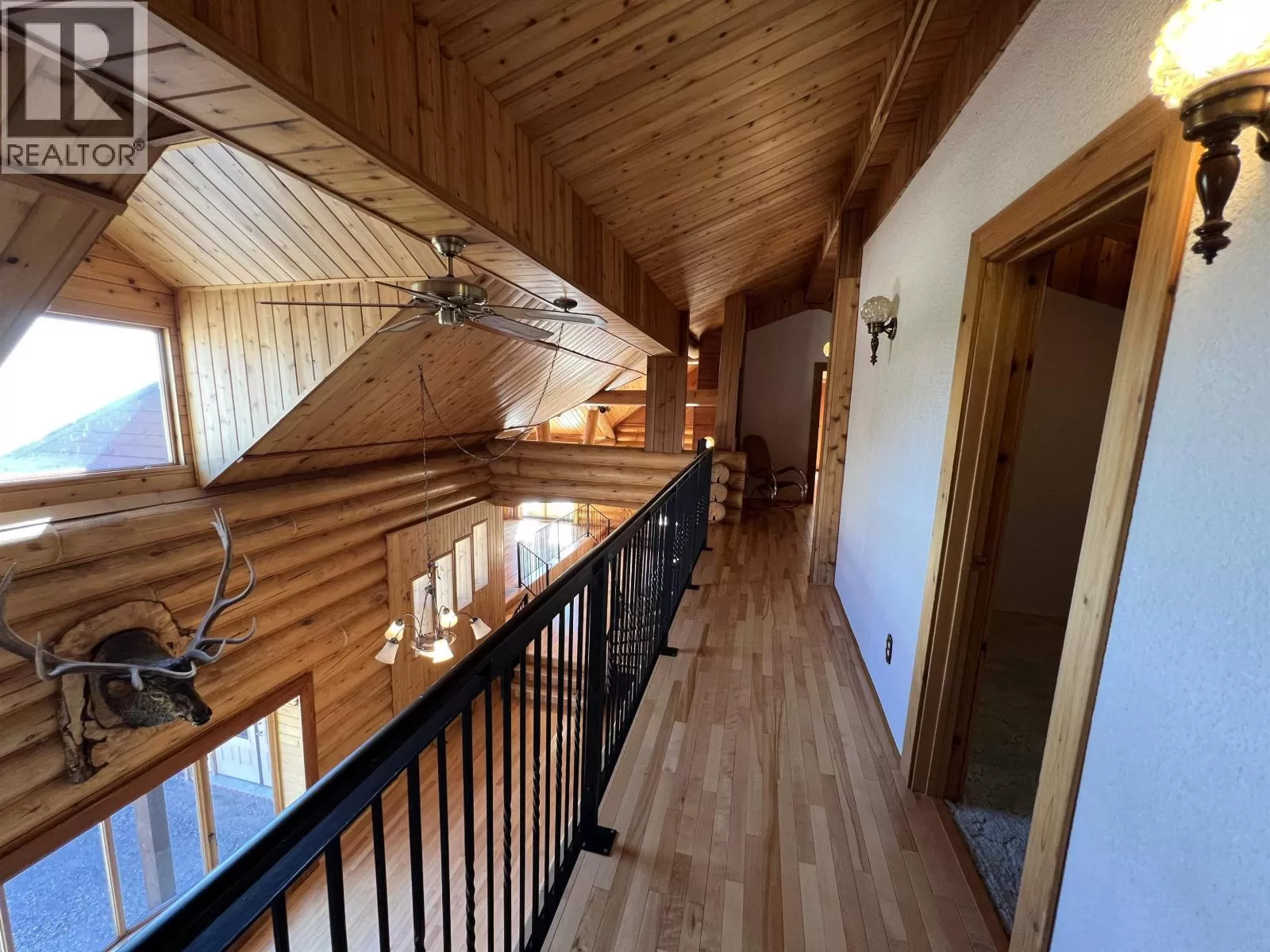 Stunning 5 bedroom, 3.5 bath log home on 8.95 acres with sweeping valley and mountain views. This property blends rustic charm with modern updates, featuring a bright kitchen with large island, updated appliances, and custom cabinetry. Soaring ceilings, exposed beams, hardwood floors, and a cozy fireplace create a warm, inviting atmosphere, while multiple living areas, a loft, and walk-out basement add functionality. The spacious primary suite is a private retreat, with 4 additional bedrooms for family or guests. Outside, enjoy a wraparound deck with panoramic views and a barn for storage, animals, or hobbies. With many updates completed and quick possession available, this acreage is move-in ready! Ideal for recreation, hobby farming, or enjoying peace and privacy just minutes from town. (id:27476)