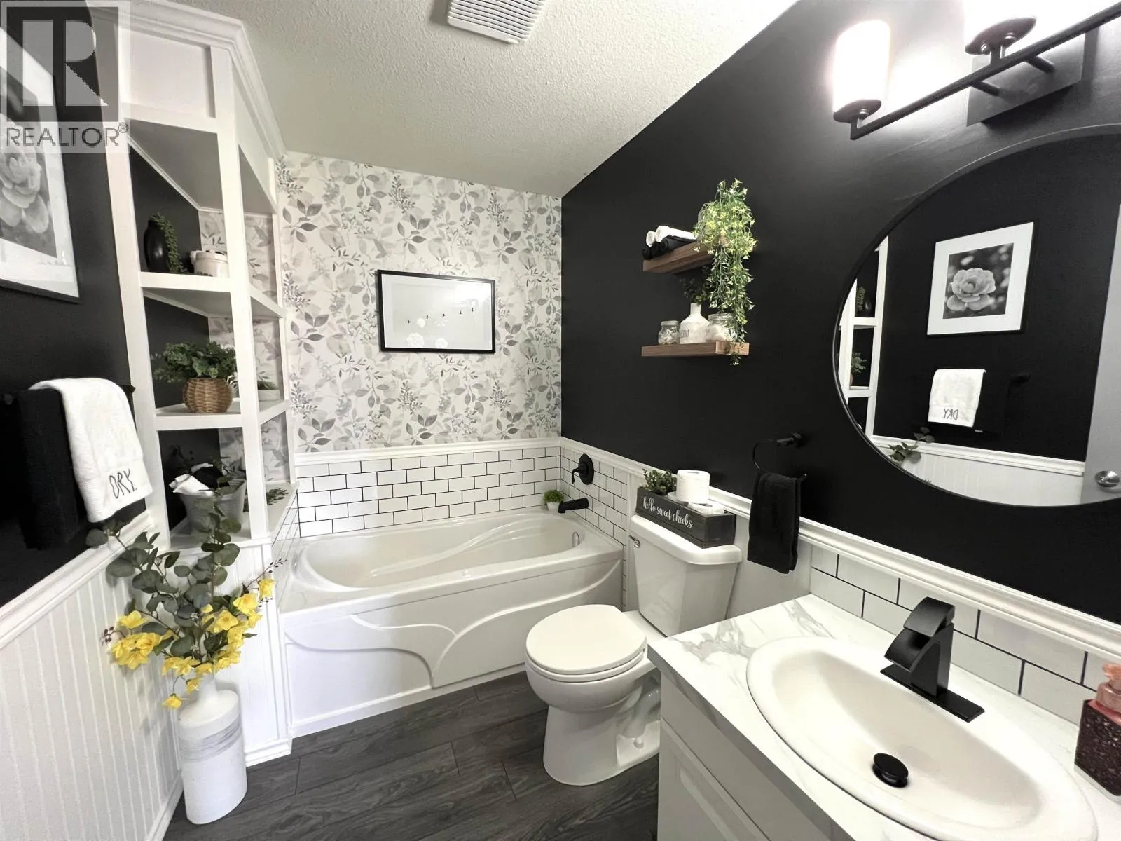 Stylish, spacious and move-in ready! This beautifully refreshed 5-bedroom, 3-bath home offers modern updates and a warm, welcoming feel throughout. Situated on a desirable corner lot with ample parking and located in a super family-oriented neighbourhood close to all levels of schooling, the rec centre, community forest and ski trails - thereâs fun and adventure right outside your door! Fall in love when you walk in...fresh paint, flooring, lighting and tasteful accents give the home a bright, modern vibe, while the layout offers plenty of space for growing families. Enjoy a double garage w/ H&C water, two sheds, covered deck and lower patio. Updated shingles, furnace and hot water tank mean all the big work is done. A perfect blend of comfort, style and location. This one is a must-see!!! (id:27476)