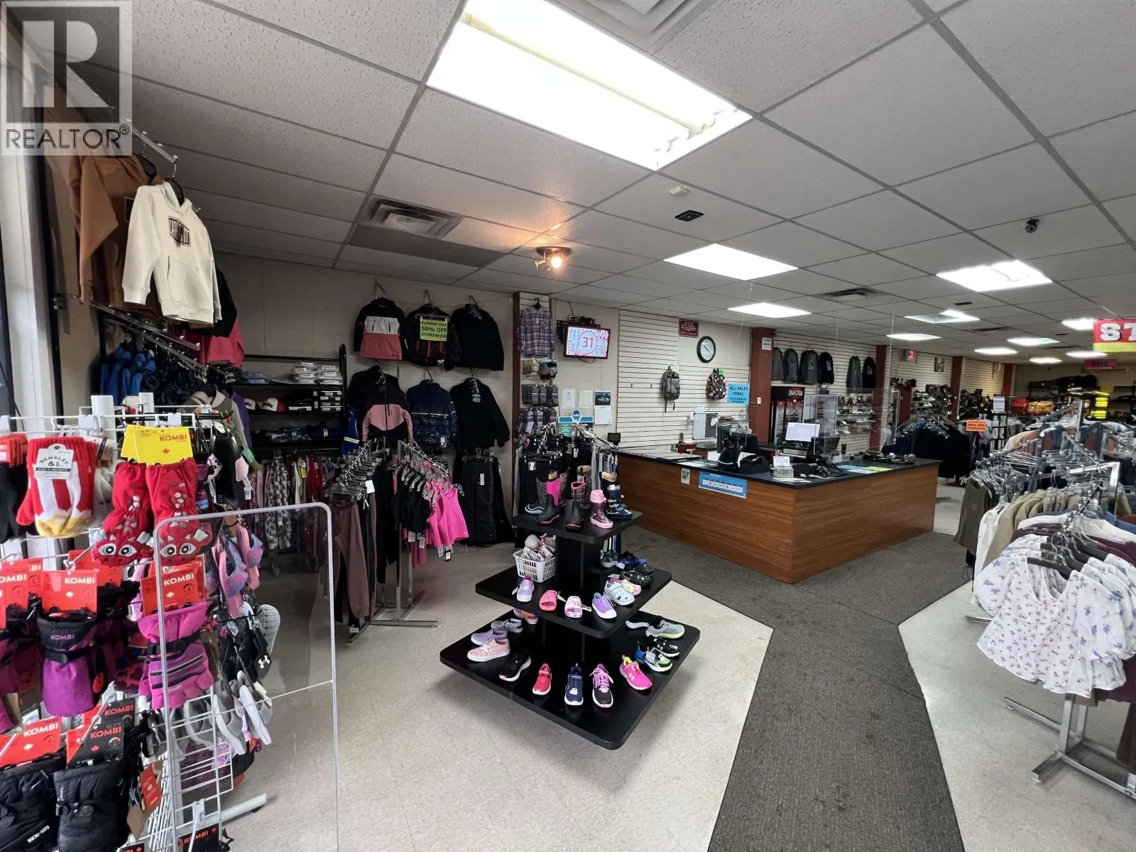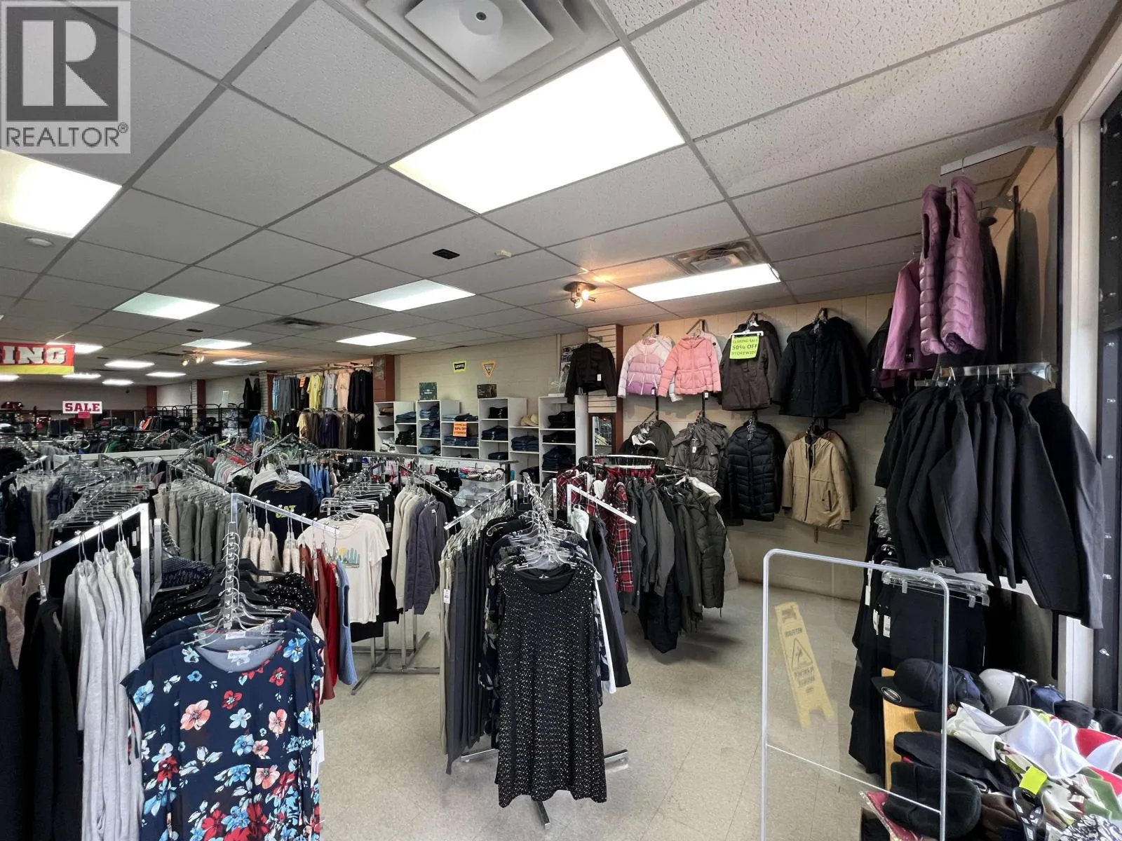 Position your business in a high-visibility location on 50th Avenue North, a primary frontage road to the Alaska Highway. This solidly constructed and well-maintained 1974 zero-clearance building, attached to the Morris Building, offers exceptional exposure and long-term versatility. A longstanding home to Style Rite Fashions for decades, this well-established commercial space presents an excellent opportunity for investors or future owner-users. The functional layout features a generous showroom or retail area, warehouse and storage space, office, staff break area, bathroom, and rear loading doors for seamless freight access. Ample on-site parking supports both staff and customer convenience. Updates to the HVAC system and roof add to the overall value. Zoned CC (Core Commercial), this property allows for a wide range of permitted uses. Competitively priced to capture strong interest. (id:27476)