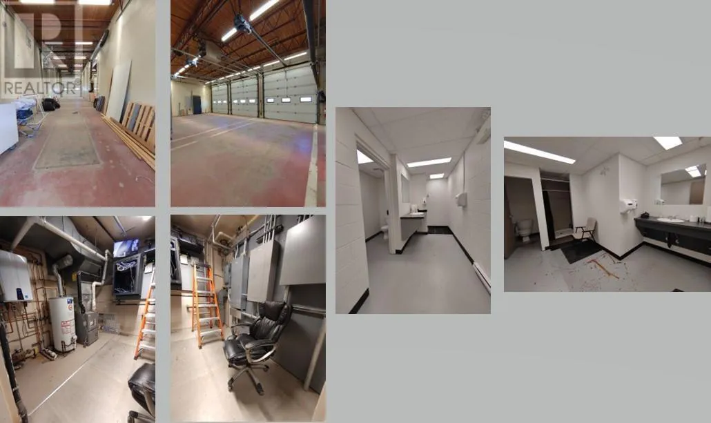 Fort St John BC - For Lease 7620 sf commercial building on high profile location within city. Building consists of 3780sf 2 story office and 3840sf warehouse/shop. The building was originally designed and built as the city's firehall in 1968 with additional end bay in early 1990s. It was decommissioned and repurposed by the current owner with renovations including; updated electrical, HVAC, security, flooring, window treatments, demand hot water, kitchen and offices (used for staffing). Warehouse has single bay at the end with open 3 bays adjacent 2 story office center. Great street visibility. Access from front 100 Ave and rear laneway. City zoning General Commercial allowing a wide variety of uses to accommodate this active area of Fort St John. Move your business or office into this high profile unique location. (id:27476)