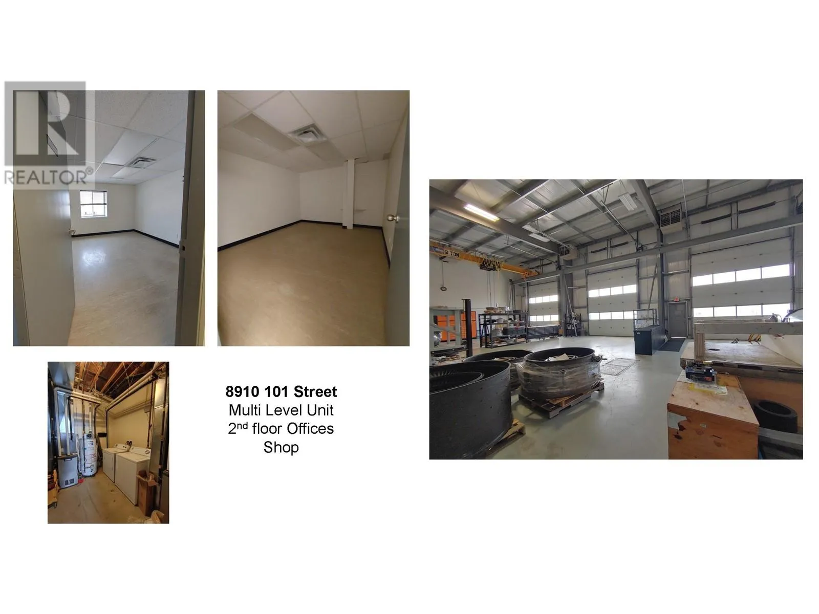 Fort St John BC - For Sale - Over 15,000sf Building on 1.34 acre lot just off the Alaska Highway. Currently designed for 3 unit multi-tenant complex. Front Unit - 2 story commercial and corporate offices plus shop. Middle unit - One bay with main floor office and additional mezzanine office. Back Unit - 3 bay shop with 6T crane and reception and offices. Rear fenced yard, ample parking, well maintained building. (id:27476)