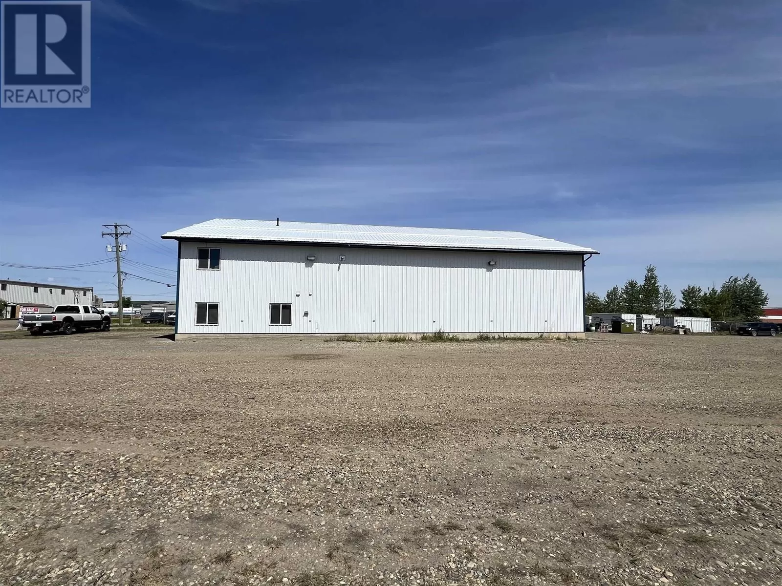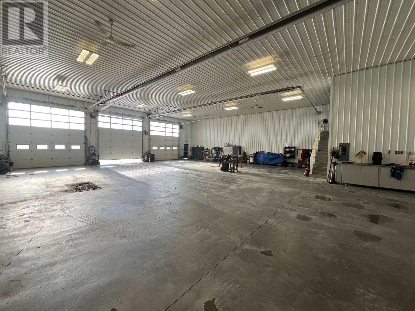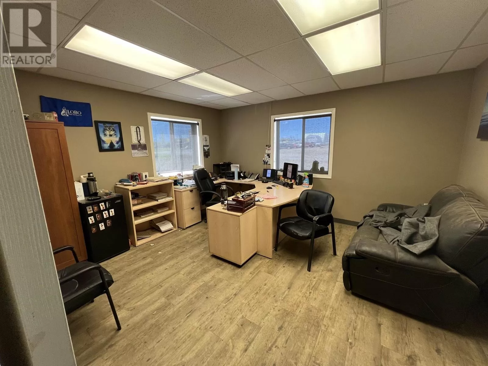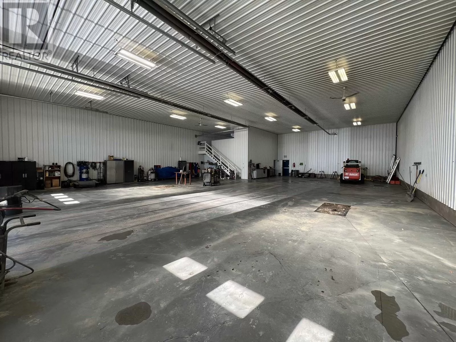 Excellent well-maintained 60'x80' shop with 3- 14'x 15'6 overhead doors. Concrete grade beam foundation and wood structure. Great location close to Alaska Highway. M1 zoning for all your heavy-duty needs. On the main floor you will find two offices and washroom, above there is a bathroom and open area suitable for a coffee room or renovate to a great office. The shop offers 3 bays with 200 amp main electrical panel and 3 phz connection available, LED lighting, fiber optic internet. Oil separator sumps in floor. Includes power washer, air compressor, welder and desk. The property is fenced on three sides, and the lot is well graveled and compacted. This is fantastic location and property to start or expand your trucking business. (id:27476)