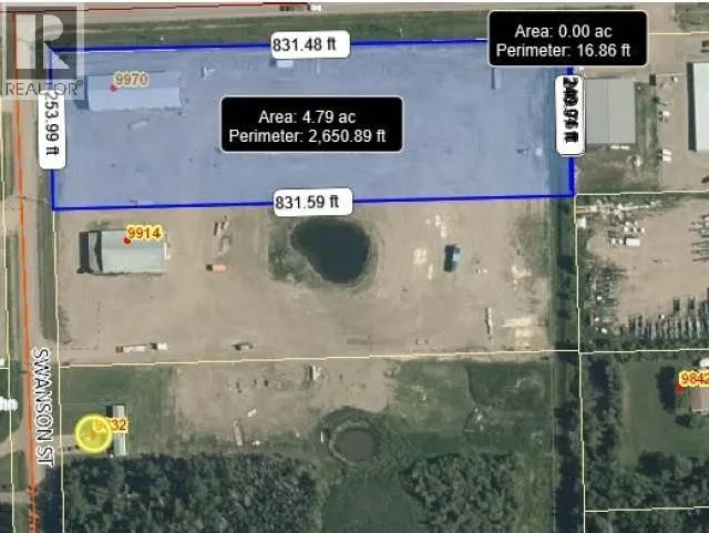 Shop for lease with with 4.80 acres graveled and fenced with great visibility for your business along 100 ave from airport! Light Industrial Zoning, 50x140 (7,000sq. ft.) plus there is a 1,000 sq. ft. mezzanine. 3 - 16x16 doors, a 12x16 and a 20x16 door. There is 3 phase power to the shop that also feeds the yard and 2 power sheds with light standards. Owner may also renovate or build to suit. Additional 5 acres also available for lease or sale next door. See listing C8061755 for sale * PREC - Personal Real Estate Corporation (id:27476)