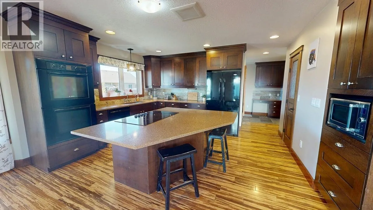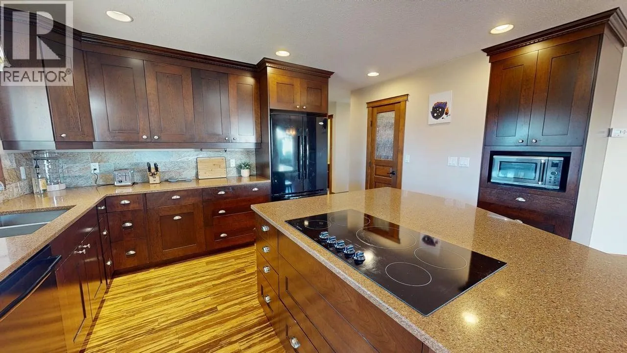 Whispering Winds Gem! Steps to Hospital, Schools & Trails! This stunning home boasts 5 bedrooms, 4 bathrooms, open-concept main living area with large living room, dining room and chefs kitchen with a large island. Primary bedroom has a large picture window, walk-through closet and gorgeous ensuite with a jetted tub and stand alone shower with spa showerheads. The Third bedroom has a secret passage way to the large family rooms any kid would love. Home comes with a double car garage, large paved parking, RV parking, huge fully fenced back yard, covered deck, patio & hot tub. Unique features include in-floor heat in garage and basement, under ground sprinkler system, central vac and individual room temperature controls. Recent updates include new stove cooktop and hot water on demand! (id:27476)