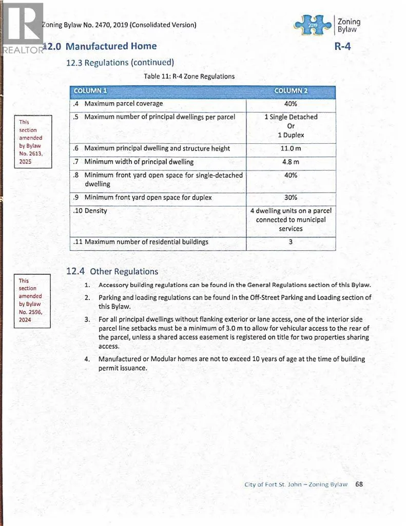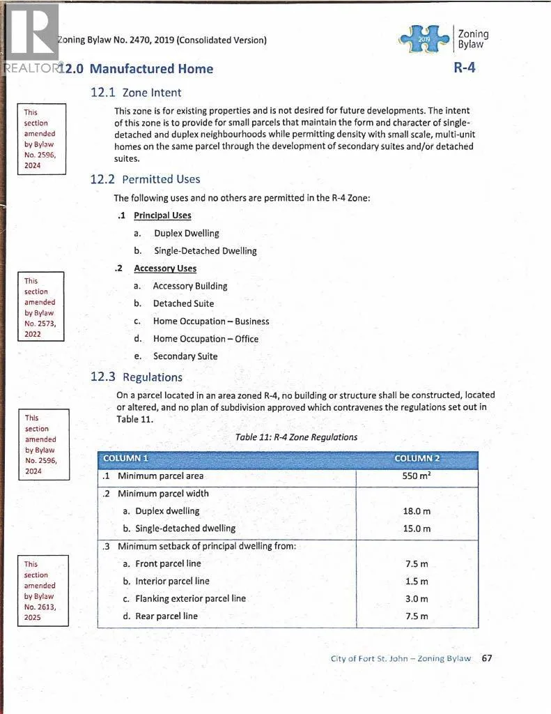 Building lot available in SouthEast Fort St. John. This lot is unique because it has back alley access and dual services already installed and brought in. Zoning is R-4 (id:27476)