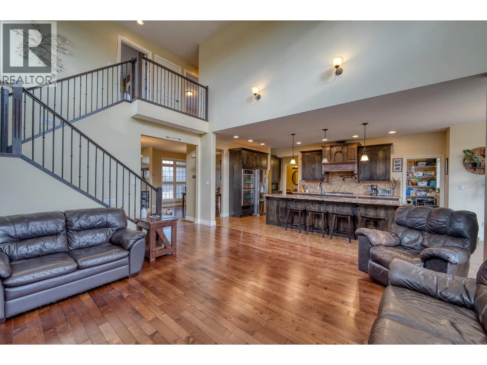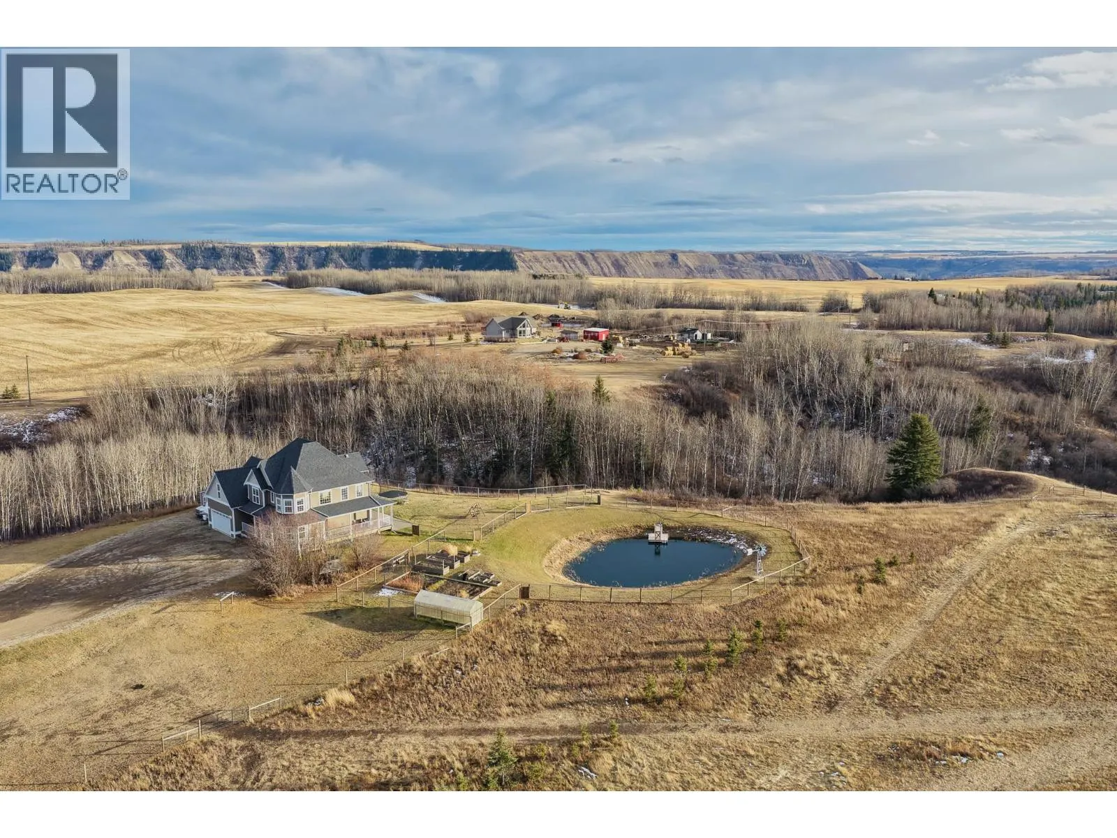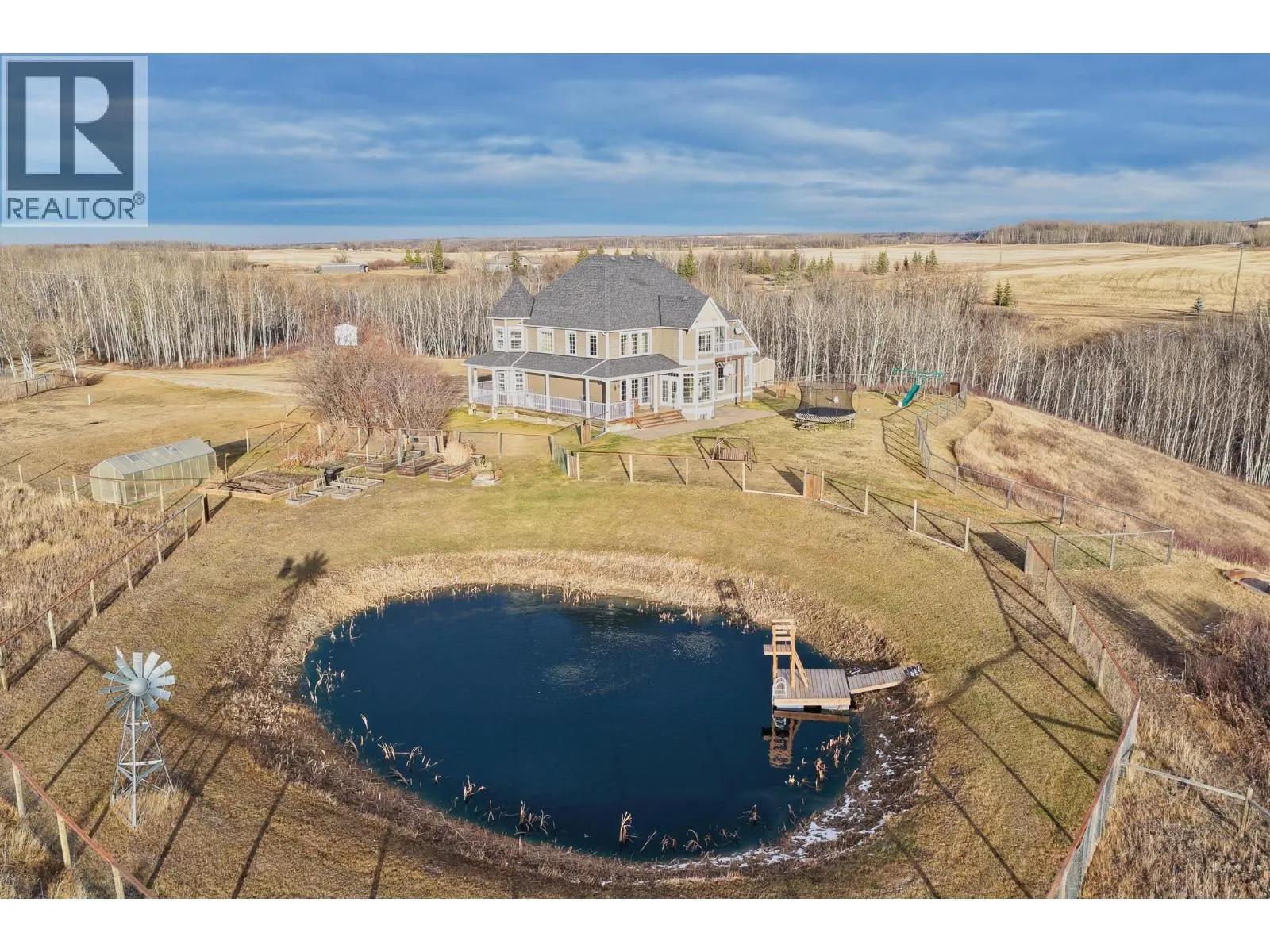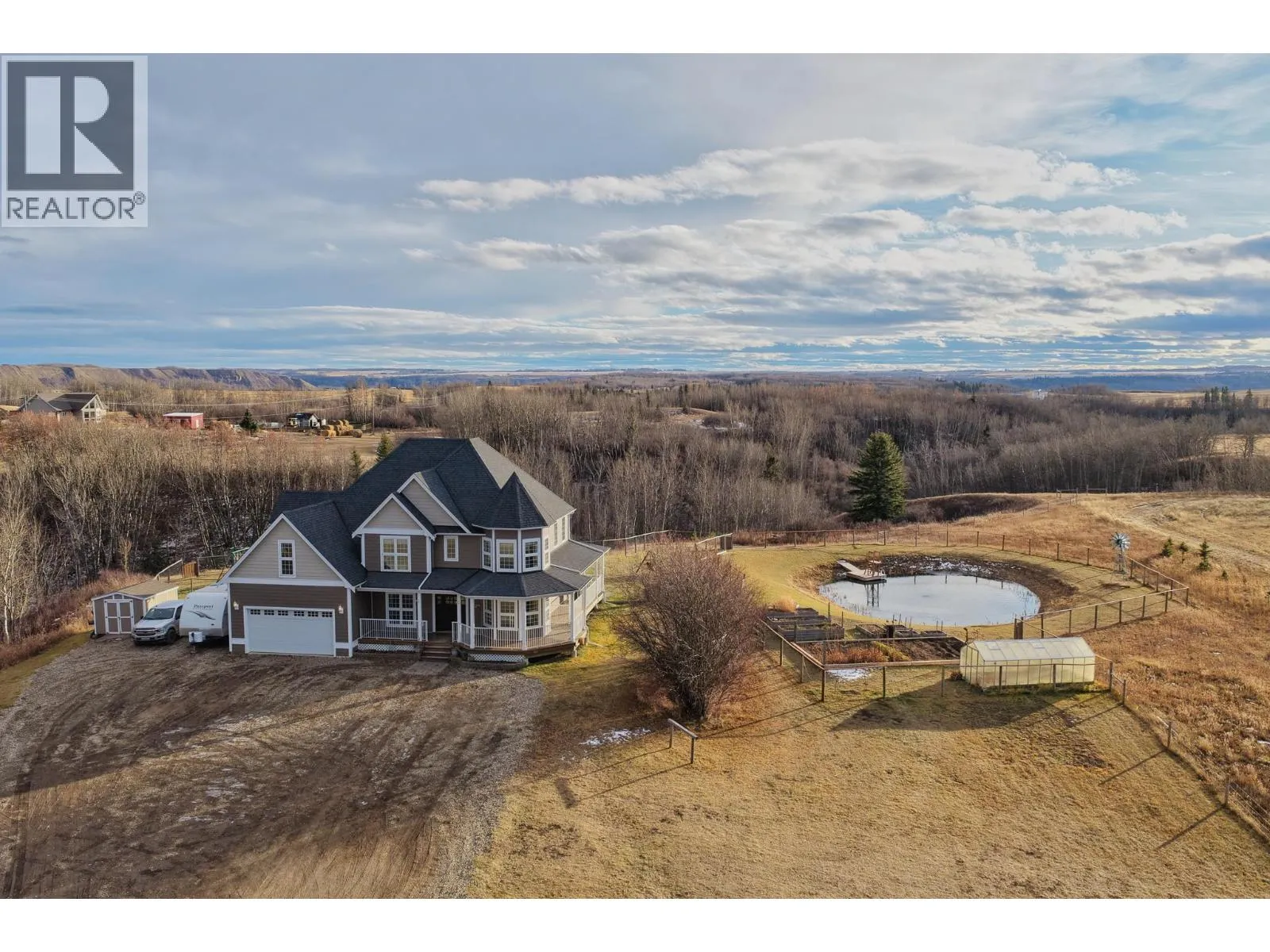 * PREC - Personal Real Estate Corporation. This stunning executive home sits on 9 private acres, just 7 minutes from town, and boasts over 4,314 sq. ft. of luxurious living with 5 bedrooms, 4 bathrooms, den, family room AND rec room; perfect for a large or multigenerational family. The bright, open layout features soaring vaulted ceilings and a cozy fireplace, while the country-style kitchen wows with a copper range hood, breakfast nook, and spacious pantry. The master suite is truly extraordinary, offering a spa-inspired ensuite, private balcony, and breathtaking views. Step outside to a massive wrap-around deck, fenced yard, thriving garden, and a freshwater pond stocked with fish. Surrounded by nature with scenic hiking trails nearby, this property is the ultimate peaceful retreat without sacrificing convenience. (id:27476)