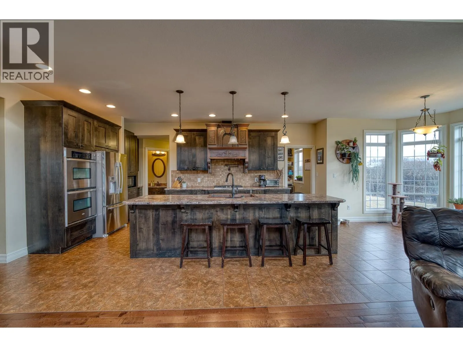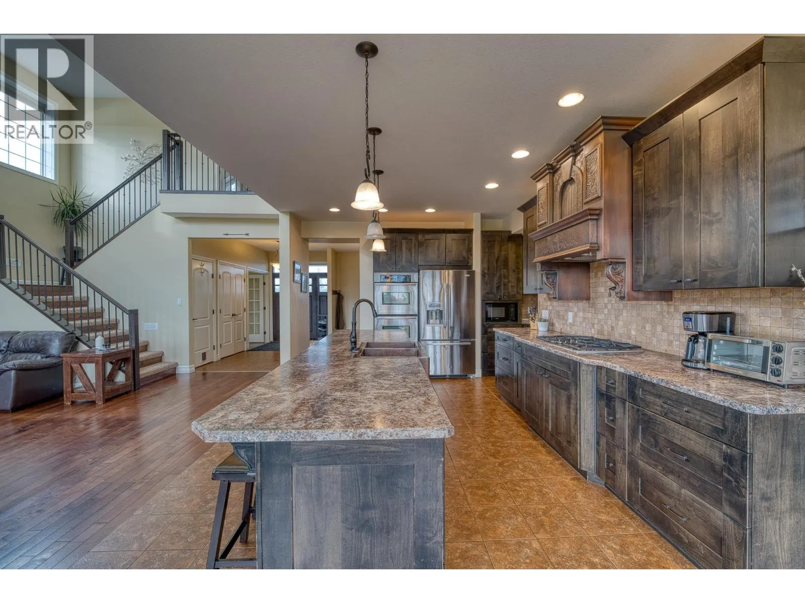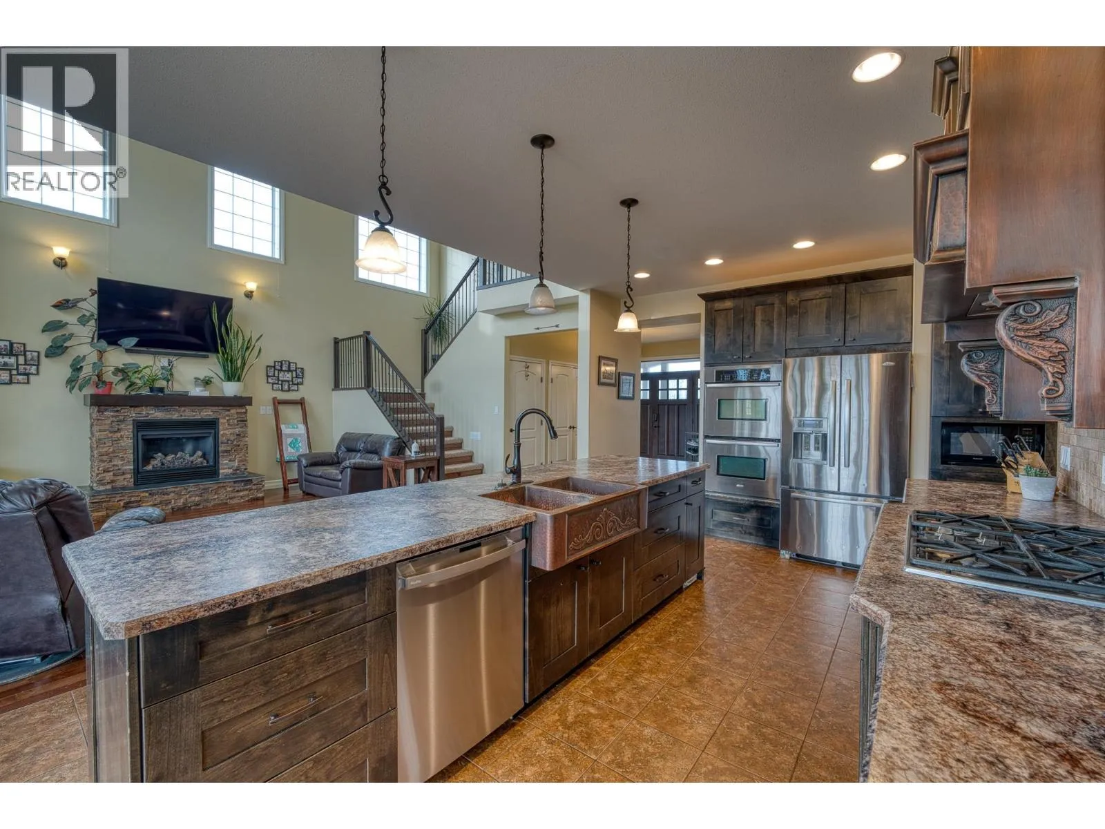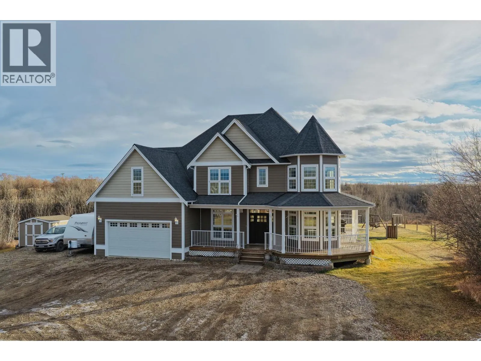* PREC - Personal Real Estate Corporation. This stunning executive home sits on 9 private acres, just 7 minutes from town, and boasts over 4,314 sq. ft. of luxurious living with 5 bedrooms, 4 bathrooms, den, family room AND rec room; perfect for a large or multigenerational family. The bright, open layout features soaring vaulted ceilings and a cozy fireplace, while the country-style kitchen wows with a copper range hood, breakfast nook, and spacious pantry. The master suite is truly extraordinary, offering a spa-inspired ensuite, private balcony, and breathtaking views. Step outside to a massive wrap-around deck, fenced yard, thriving garden, and a freshwater pond stocked with fish. Surrounded by nature with scenic hiking trails nearby, this property is the ultimate peaceful retreat without sacrificing convenience. (id:27476)
