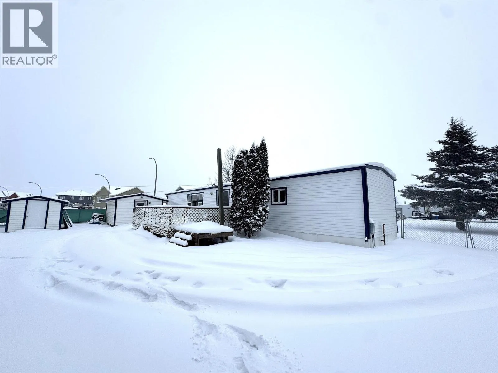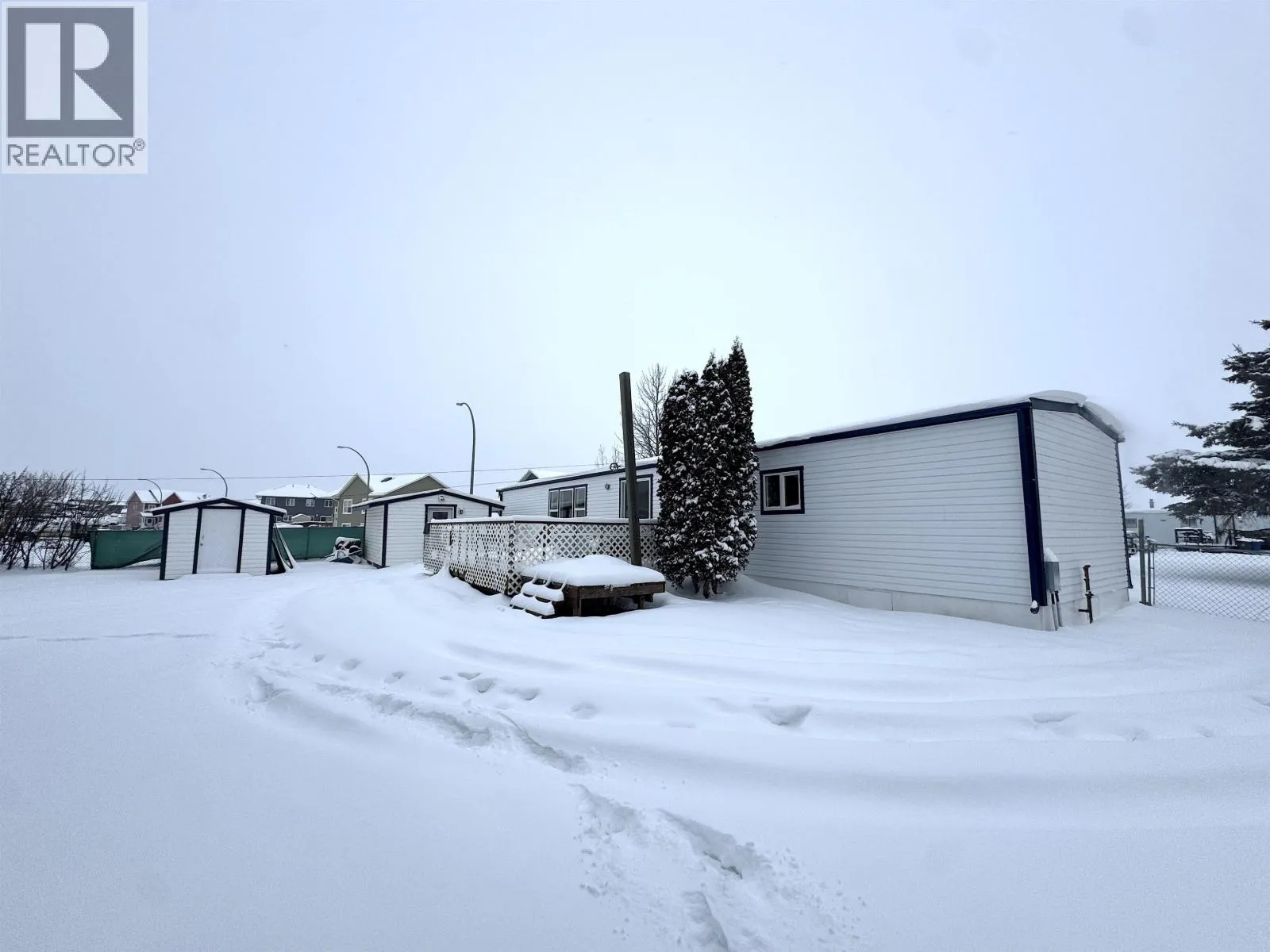 Tired of fixer-uppers in Fort St. John and would rather just have something move-in ready? This 3-bed, 2-bath manufactured home with a large boot room offers exceptional value with extensive improvements completed in 2024â2025. Set on a rare massive lot, it features a double driveway, fenced yard, heated plywood-finished shed for projects & a hot tub (sold as-is). Youâll find new vinyl siding, metal roof, updated windows & doors, modern lighting, insulated walls, ¾" plywood subfloor, upgraded bath fans, custom shelving & a refreshed kitchen with 2025 fridge & stove. A rebuilt front porch adds practical storage, while the primary bedroom includes its own 3 piece bathroom. Bright, functional & close to the Alaska Highway, right at the entrance of Peace Country MHP, this home is a smart choice for first-time buyers or downsizers wanting a property where all the big work is already done. (id:27476)
