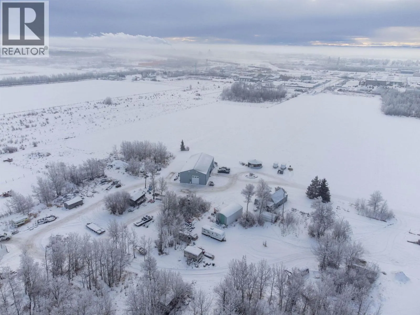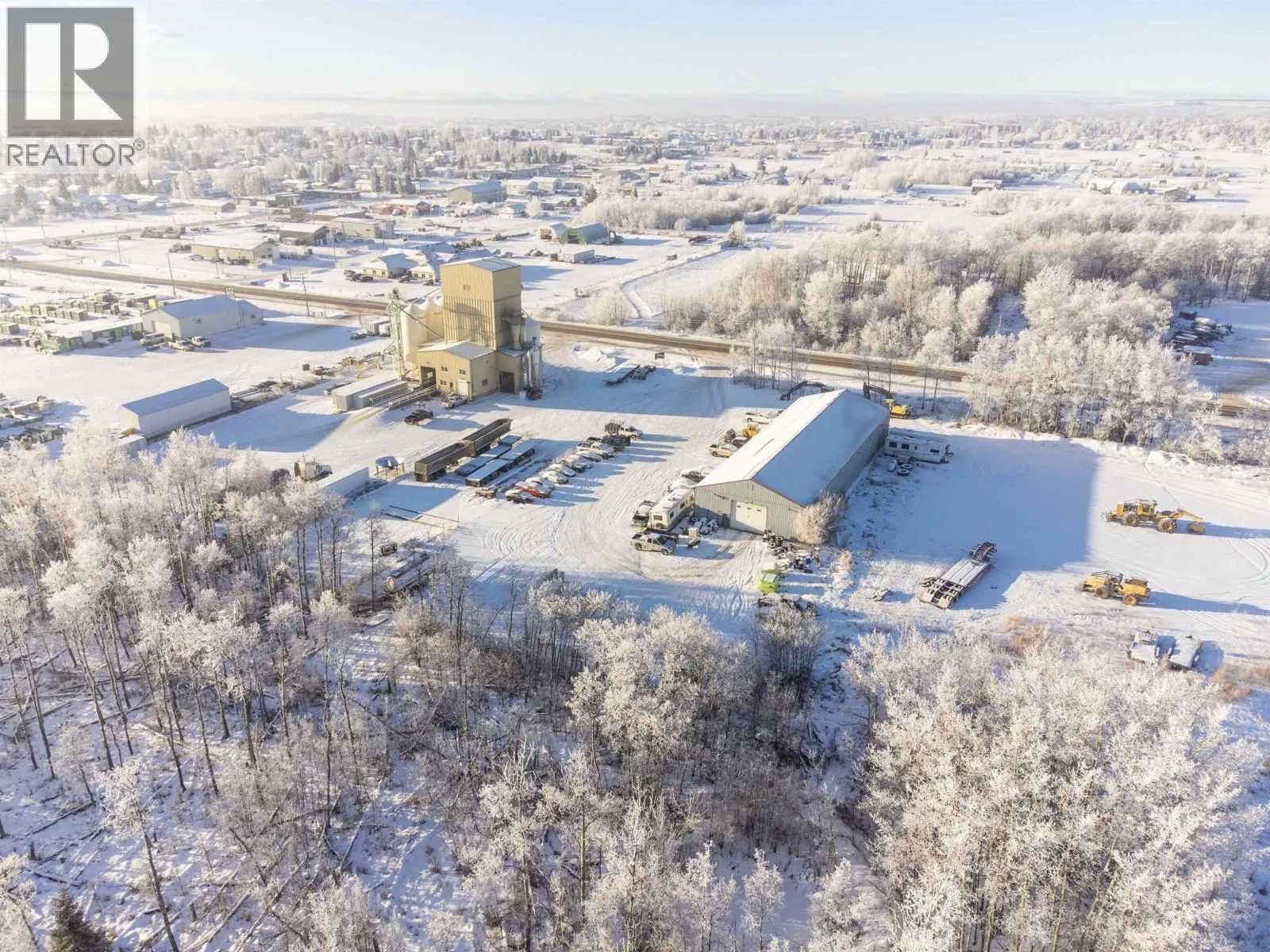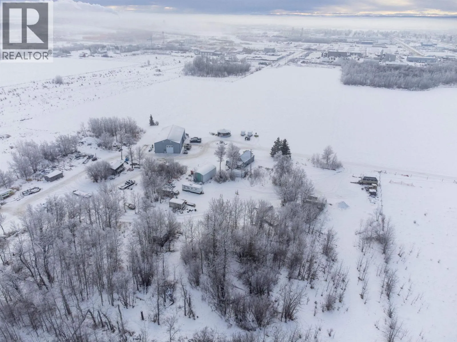 Exceptional 54.6-acre agricultural and commercial income-producing property in Fort St. John, zoned A-1 and located within the ALR. The land is predominantly cleared and level, offering excellent functionality and future potential. The main home site is improved with a substantial 3,200 sq. ft. shop featuring integrated living quarters. The shop offers 16' ceilings, in-floor heat, 200-amp service, two oversized overhead doors, and a mezzanine for storage. The attached residence provides approximately 2,072 sq. ft. of living space over two levels, making it ideal for owner-operators or on-site management. Additional improvements include an older residential cabin, perfect for staff housing or supplemental use, along with numerous older outbuildings. A second commercial shop and yard are located at the southwest comer of the property, featuring a 7,600 sq. ft. four-bay shop with concrete floors, multiple overhead doors, individual power panels & washroom facilities. Also on Residential - see MLS# R3075253. (id:27476)