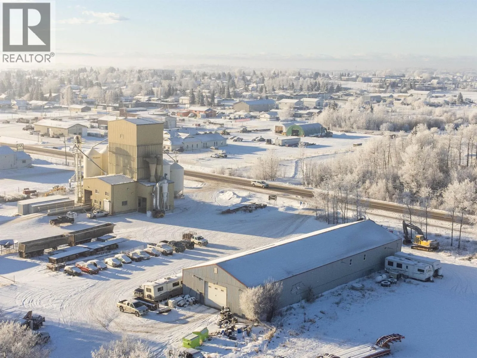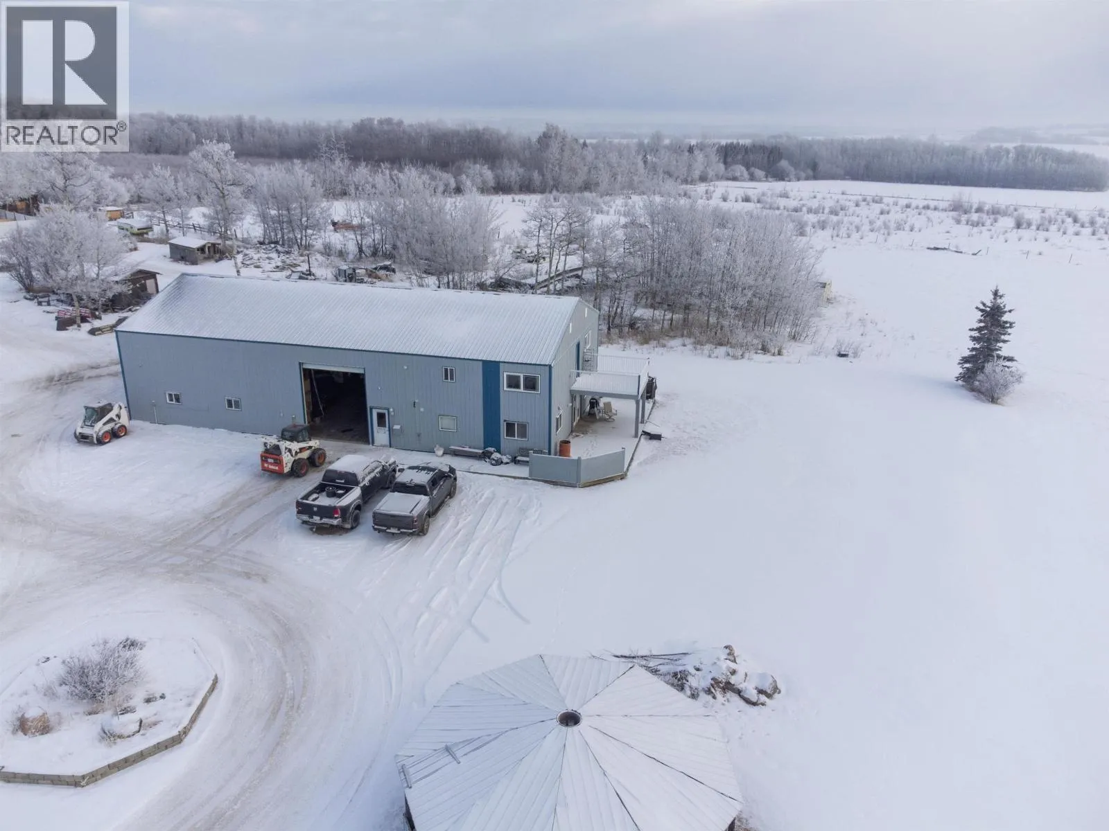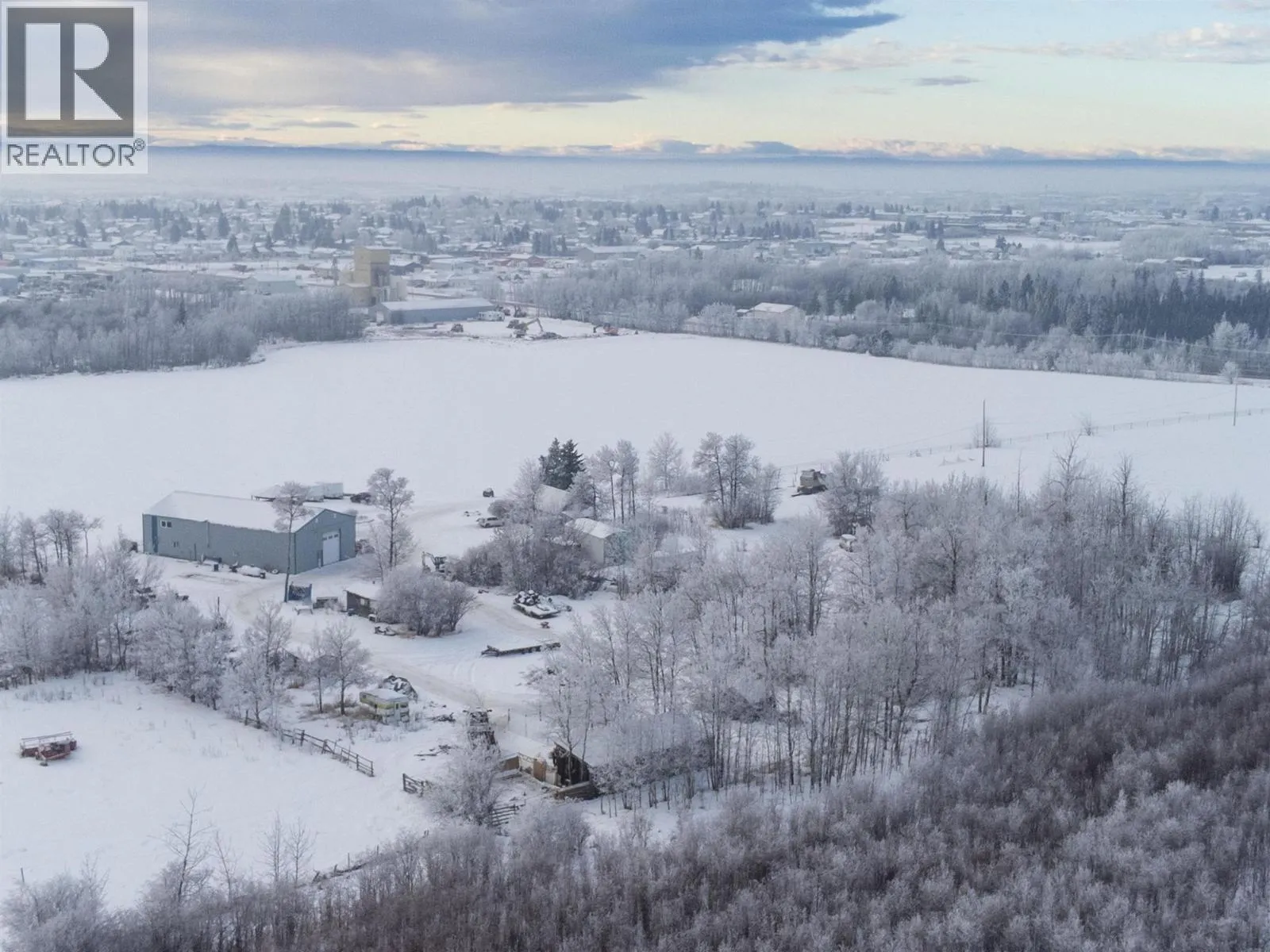 Exceptional 54.6-acre agricultural and commercial income-producing property in Fort St. John, zoned A-1 and located within the ALR. The land is predominantly cleared and level, offering excellent functionality and future potential. The main home site is improved with a substantial 3,200 sq. ft. shop featuring integrated living quarters. The shop offers 16' ceilings, in-floor heat, 200-amp service, two oversized overhead doors, and a mezzanine for storage. The attached residence provides approximately 2,072 sq. ft. of living space over two levels, making it ideal for owner-operators or on-site management. Additional improvements include an older residential cabin, perfect for staff housing or supplemental use, along with numerous older outbuildings. A second commercial shop and yard are located at the southwest comer of the property, featuring a 7,600 sq. ft. four-bay shop with concrete floors, multiple overhead doors, individual power panels & washroom facilities. Also on Residential - see MLS# R3075253. (id:27476)