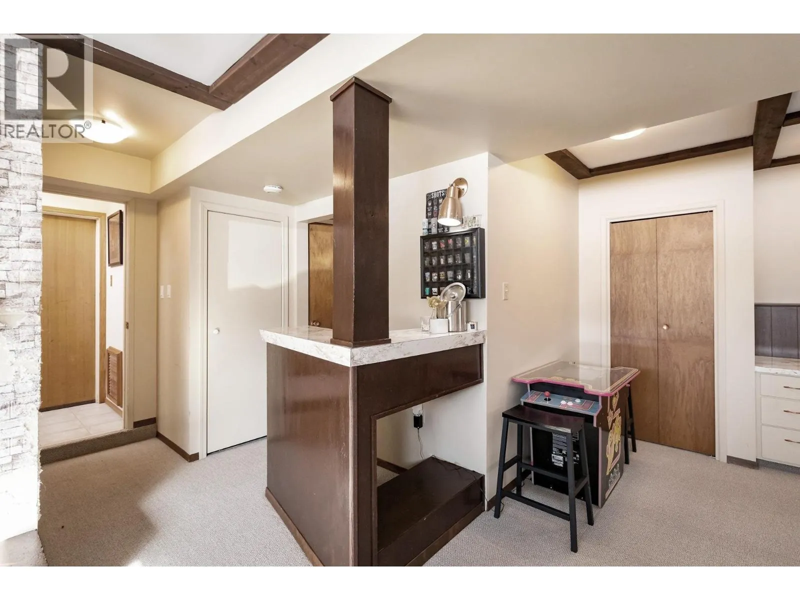 Enjoy the location as much as the home! Tucked away in a quiet area w/ no through roads, this property offers a great floor plan with 4 bedrooms on the main level, including a primary bedroom with 3-piece ensuite and a full main bathroom. The bright living room with west-facing windows fills the space with natural light & features a cozy wood fireplace, plus convenient main floor laundry. The lower level offers excellent natural light thanks to the shallow basement design & includes a spacious family room w/ second fireplace, study area, & wet bar -- perfect for relaxing or entertaining. Step outside to the huge deck overlooking the fully fenced backyard, ideal for kids & pets. Complete with a attached garage & large driveway for ample parking. A great mix of character, updates & location! (id:27476)