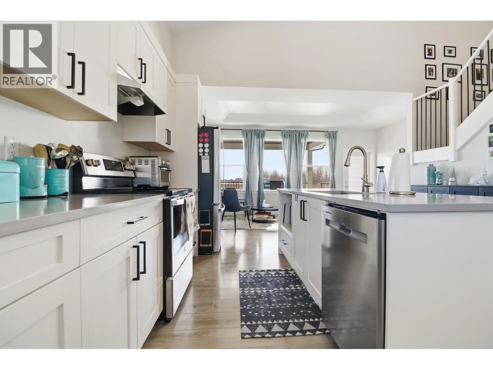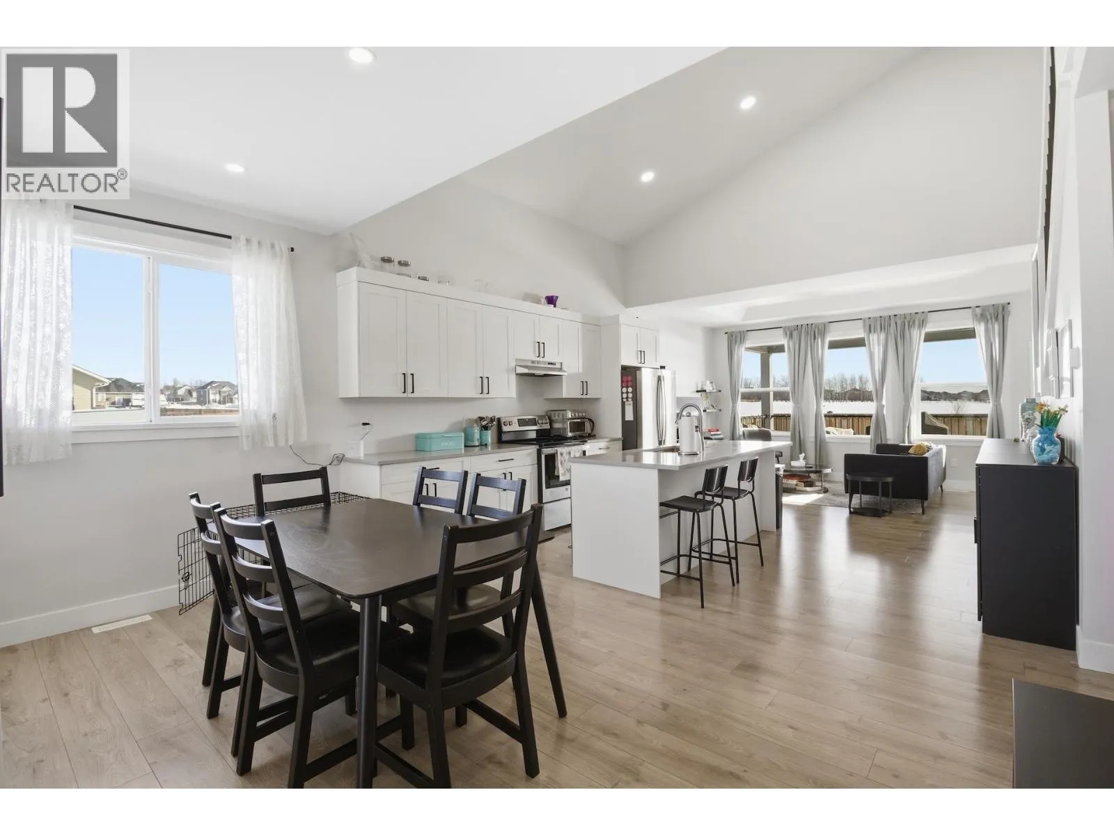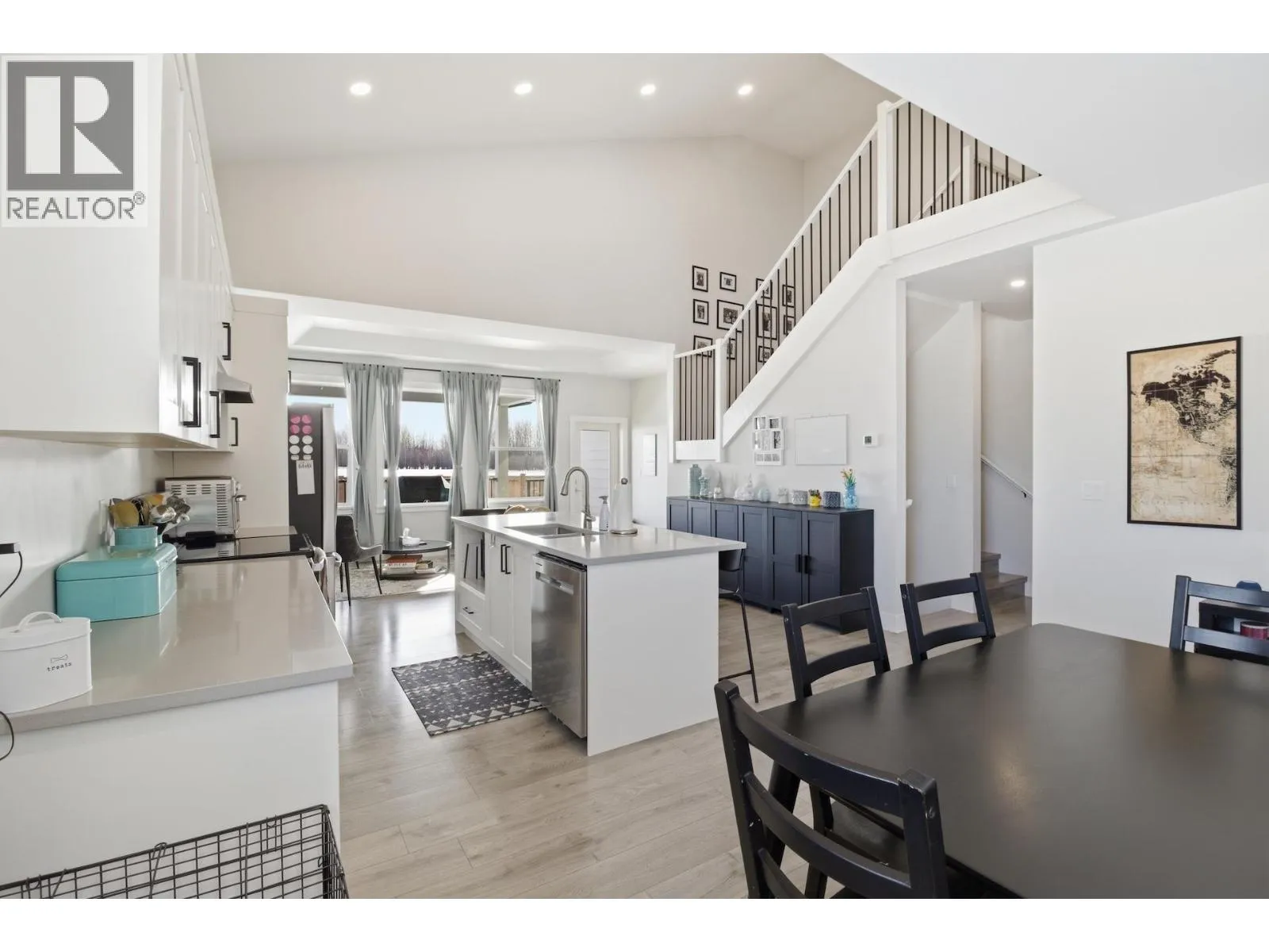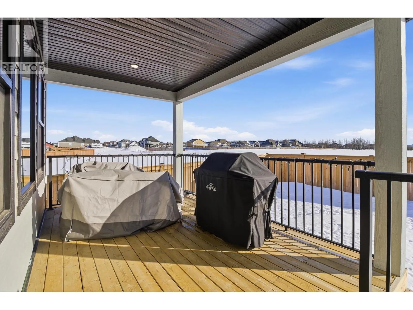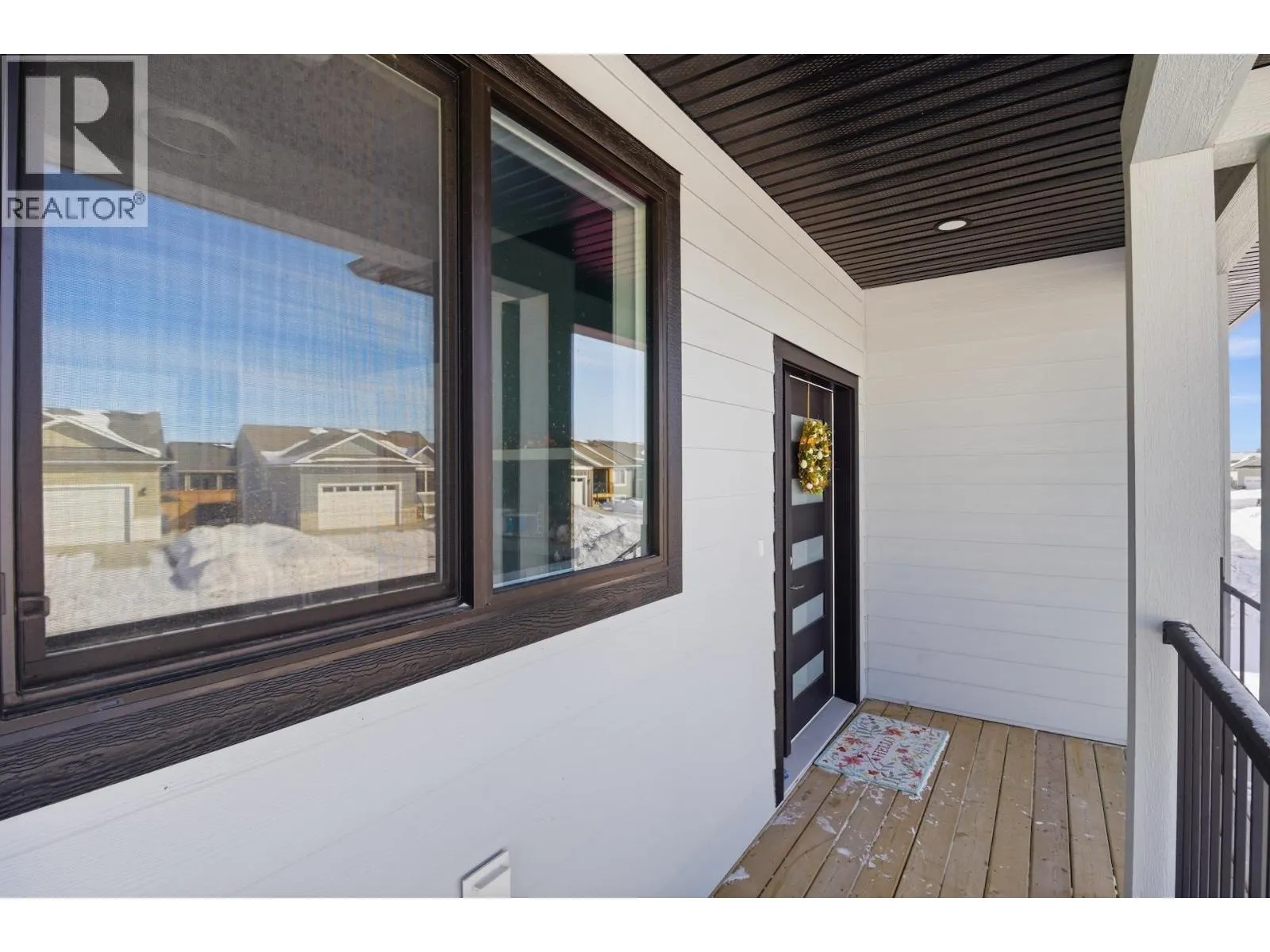 5-bed, 3-bath two-storey with finished basement in Westridge Estates, Fort St. John. Built in 2020, this 4-year-old home is designed around the kitchen, featuring vaulted ceilings, oversized windows, quartz countertops, & central AC that makes the main floor feel bright & functional year-round. The main floor living & dining areas are intimate in scale, best suited to everyday low-maintenance living; the primary entertaining & flex space is the large rec room in the finished basement, which provides room for a media room, home gym, or play area. The private primary suite sits on the top floor, separated from the remaining 4 bedrooms & dedicated den, ideal for working from home. Step out to the south-facing covered deck overlooking a fully fenced backyard with open views, a standout feature in Westridge Estates. The oversized heated garage fits a full-size truck with room to spare. Located close to scenic walking paths and within the CM Finch school catchment. (id:27476)