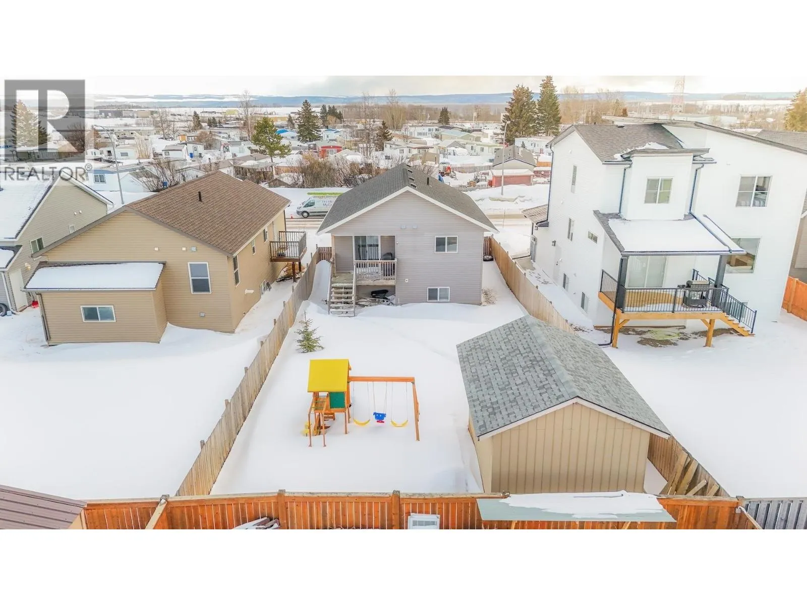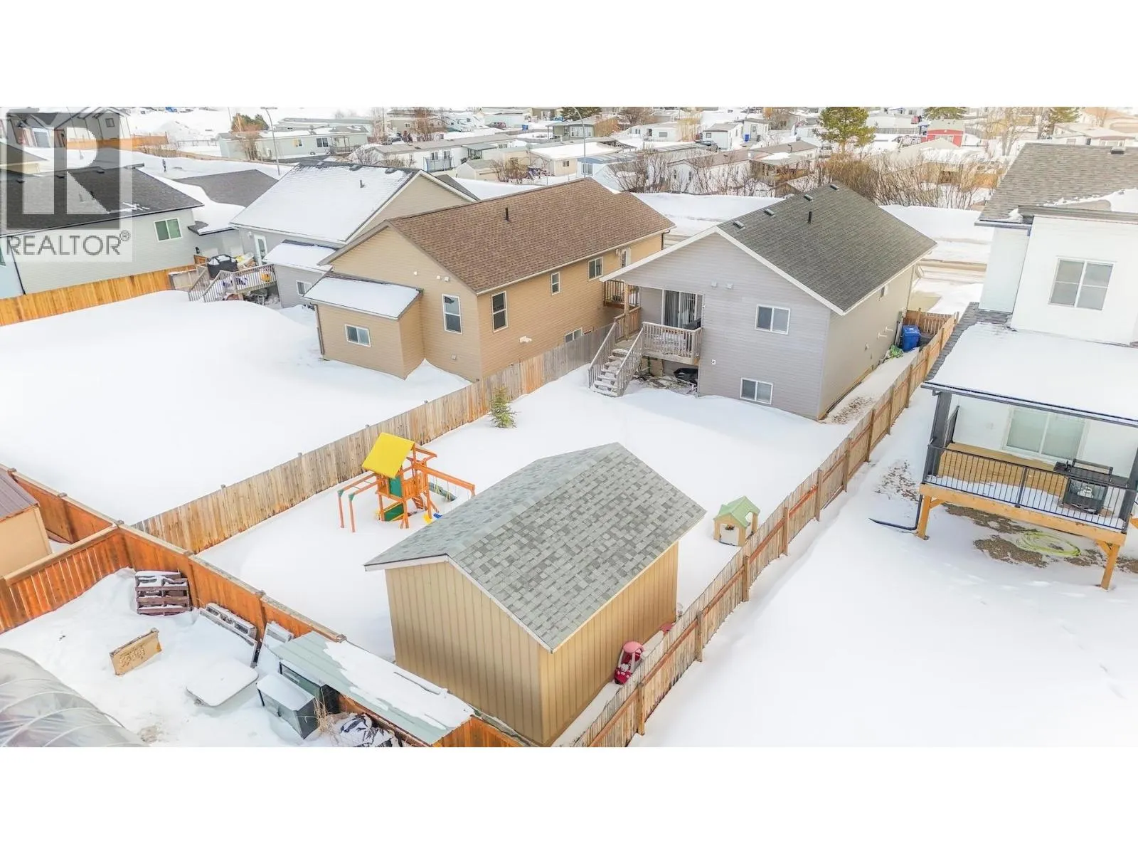 Looking for a Fort St. John home that delivers both modern style & everyday function? This 4 bedroom, 2 bathroom split entry in Energy Park offers a layout designed to support how people actually live. A large foyer creates a welcoming first impression, leading into a bright main floor featuring a wraparound kitchen with stainless steel appliances, generous prep space & seamless flow into the dining & living areas, ideal for both daily routines & entertaining. Step outside to a sundeck overlooking a fully fenced yard, while a concrete driveway & 12 x 16 shed add practical value. The home is thoughtfully laid out with two bedrooms up & two down, giving flexibility for families, guests or workspace needs. The lower level includes a spacious family room, full bathroom, laundry area & on demand hot water for added efficiency. Located within walking distance to Duncan Cran School, parks & amenities, this home offers a confident blend of comfort, layout & location in Fort St. John. (id:27476)