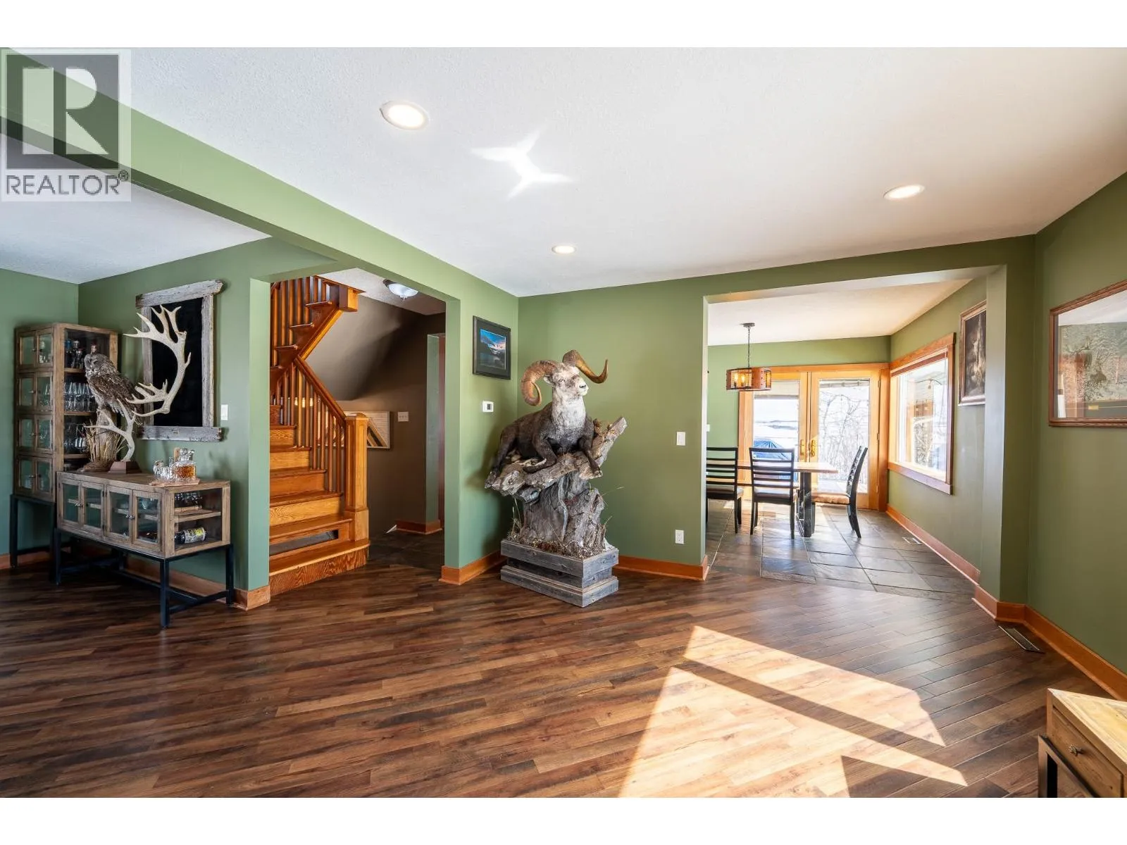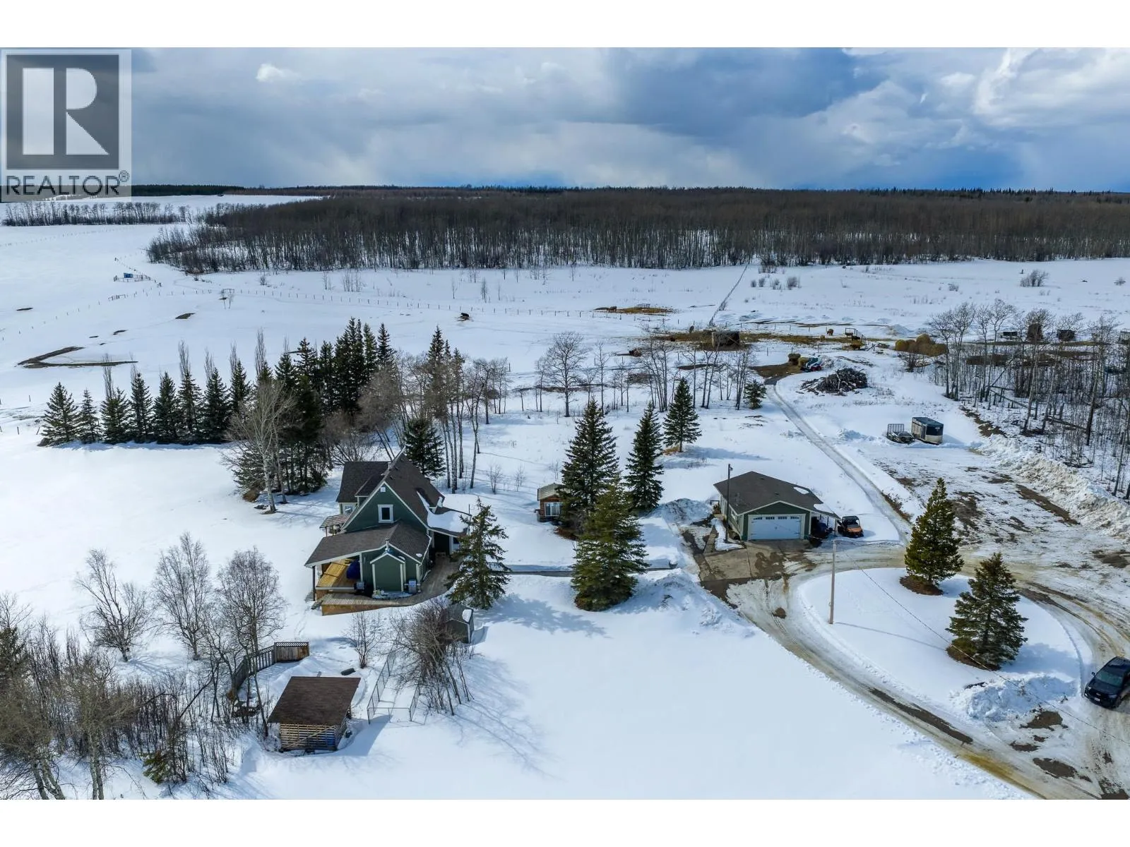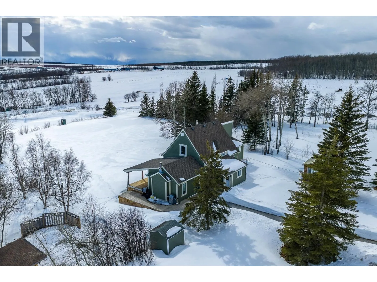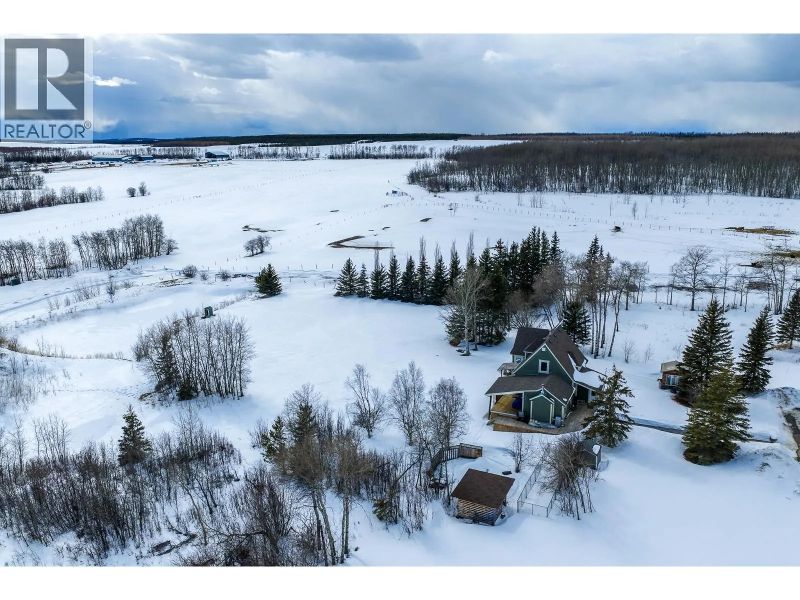 Panoramic country views stretch across this private 10-acre property, where rolling hills & wide open skies set the tone for everyday living mins from town. A bright, open layout w/vaulted ceilings is anchored by a full-wall rock fireplace, while the sunken living room adds warmth & character. The chefâs kitchen is ideal for entertaining & boasts SS appliances & granite counters. The home offers 3 beds, including a spacious primary w/5pc ensuite & direct access to the wraparound deck, the perfect place to unwind. The land is within the ALR, is fenced for horses w/2 pastures & a dugout, plus a dedicated dog run to keep your furry friends safe. Enjoy the mature trees, garden, a fire pit area, an oversized 22x28 detached garage, & a levelled & cleared area for your future shop! (id:27476)
