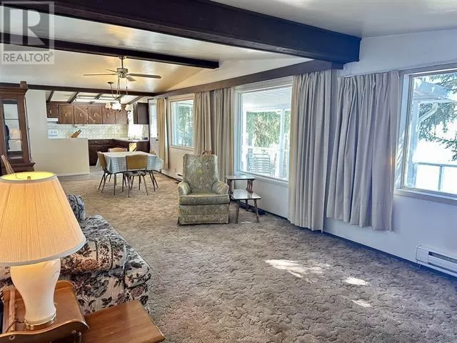 Waterfront home on one of Fraser Lake's nicest beaches that offers spectacular sunrises and calm waters on the east facing beach. This home could be used for a year-round home, or it could make a wonderful vacation property! There is plenty of covered storage space for all your toys and vehicles in the 22' X 24' detached double garage that also has more extra storage in the attached 9' X 24' wood shed and 7' X 16' lean-to. Other great features include a covered front deck to enjoy the lake views, and several mature trees and shrubs. A new metal roof was professionally done in June 2023, and a new water pump was installed August 2023. Peterson Beach campsite and Ormond Creek Canyon hiking trail are nearby. Located less than 2 hours from Prince George and 45 mins from Vanderhoof. (id:27476)